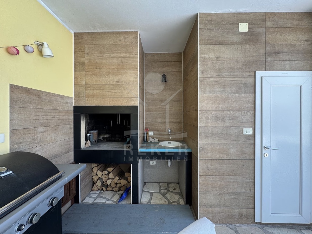 Zur Ausstattung zählen vier Klimaanlagen, Wi-Fi, ein Holzofen und ein Außen-WC auf der Terrasse. Die Villa ist vollständig möbliert und sofort beziehbar. Sie eignet sich hervorragend als Ferienhaus mit Vermietungspotenzial oder als komfortabler Zweitwohnsitz in Istrien.