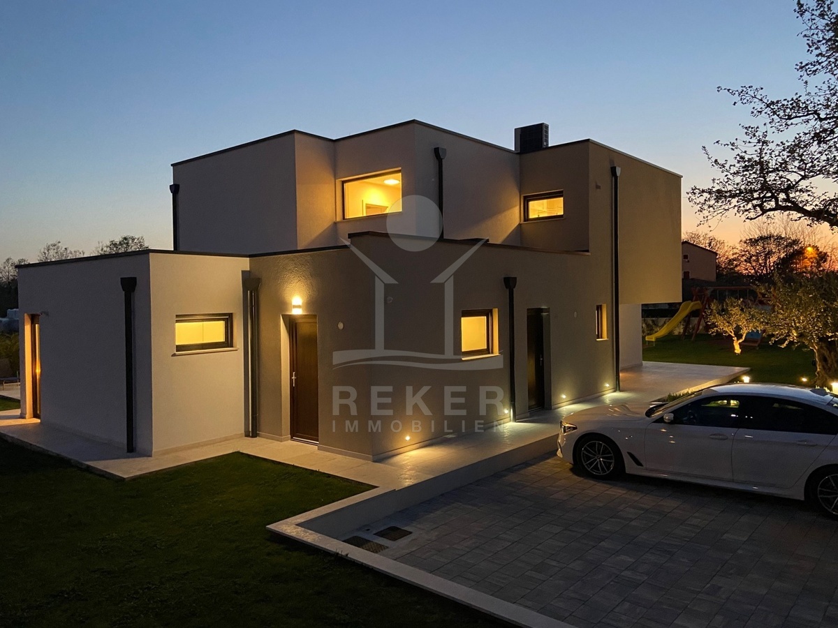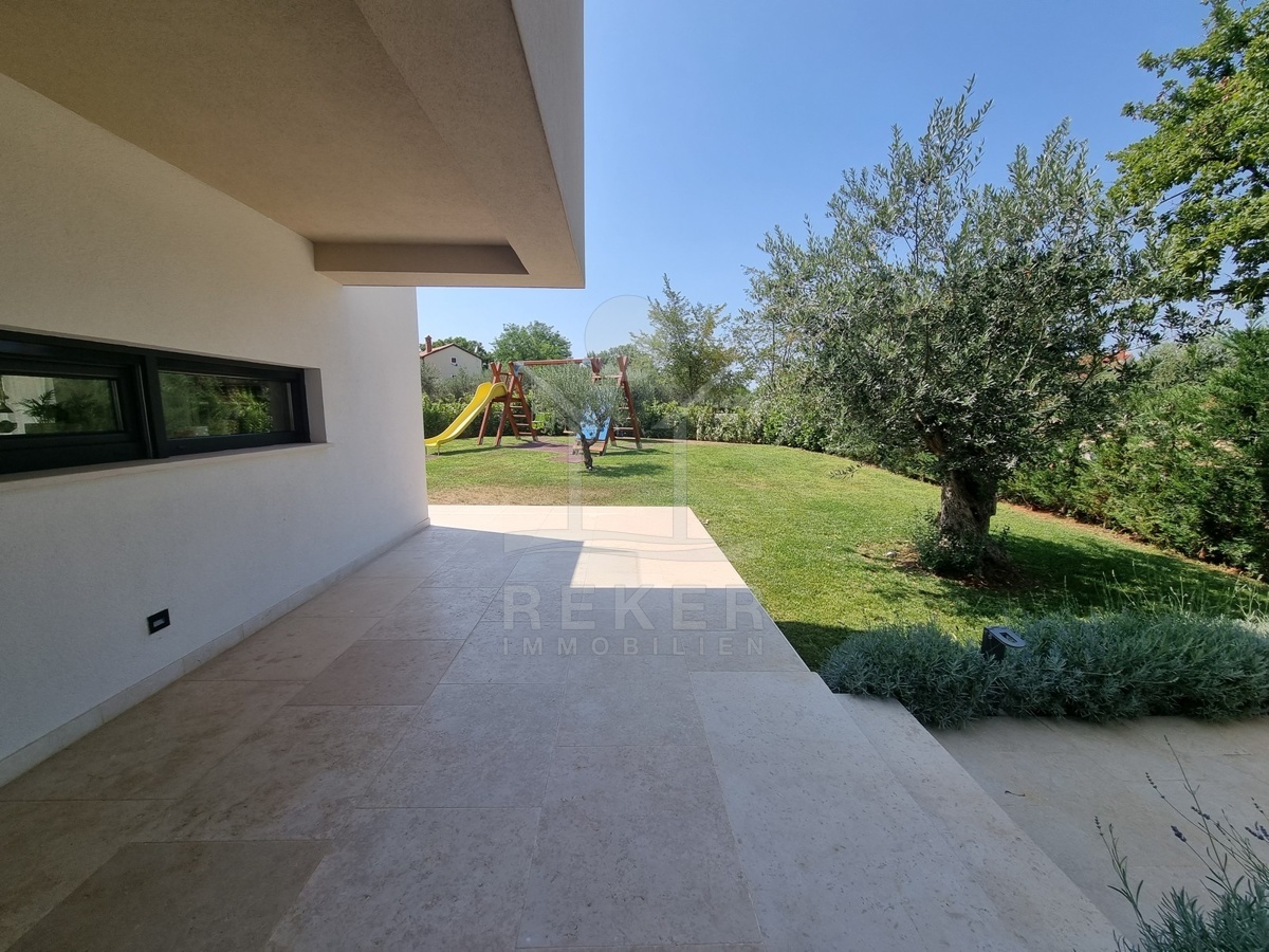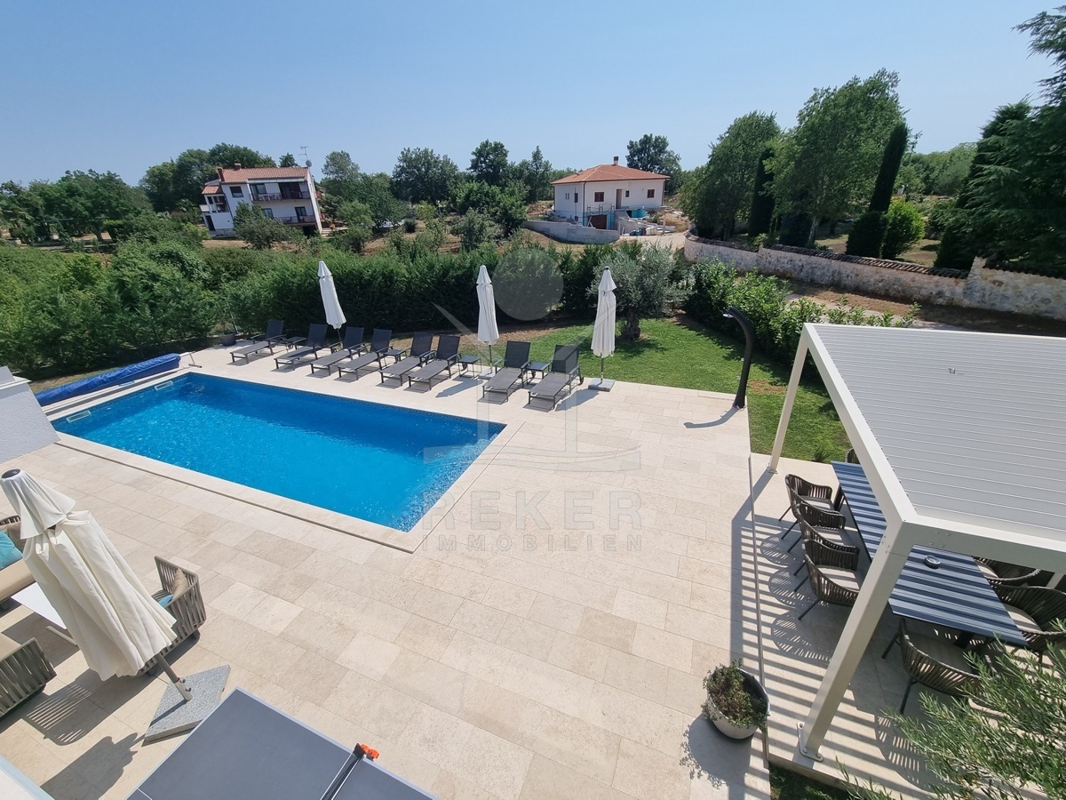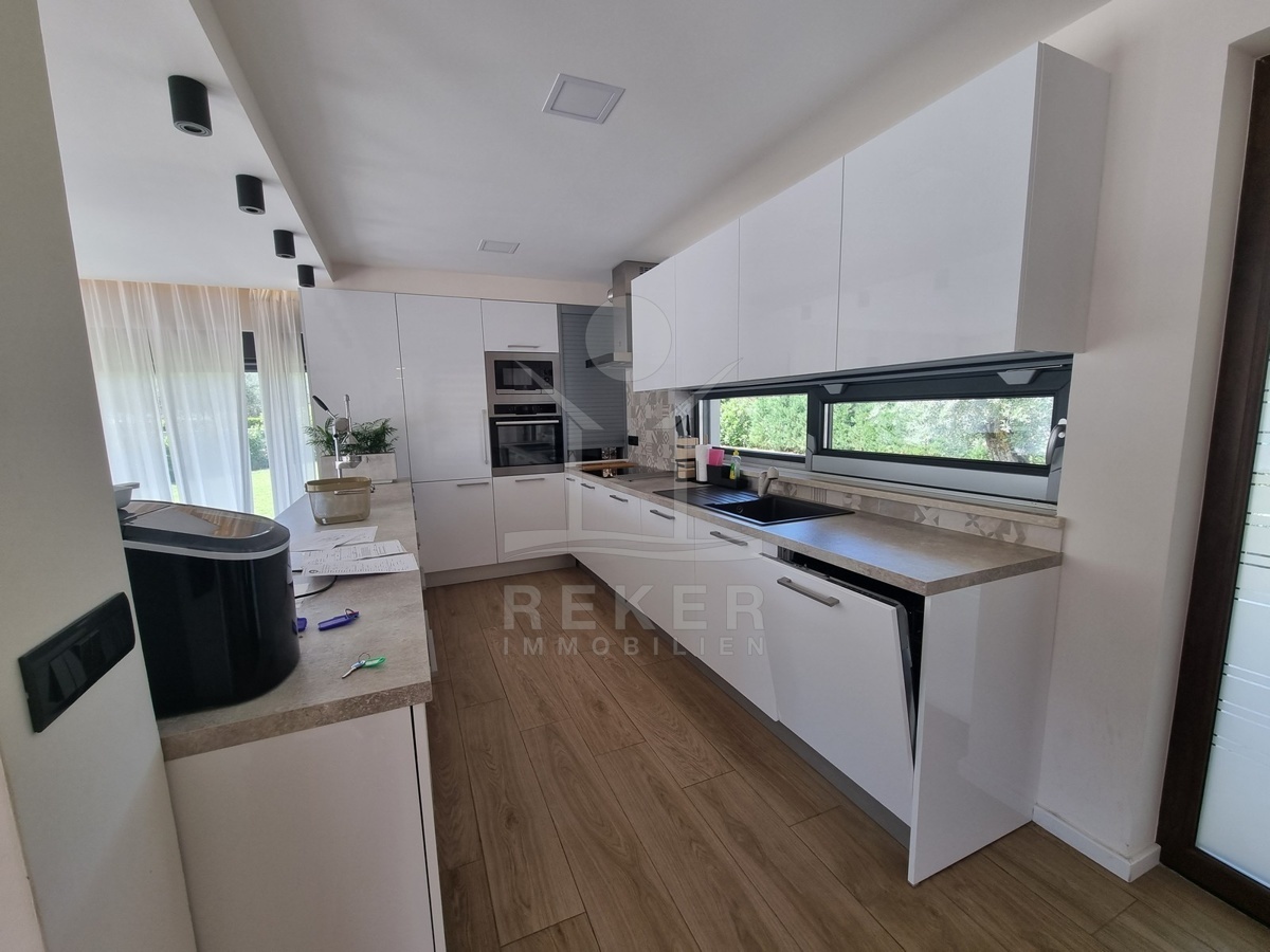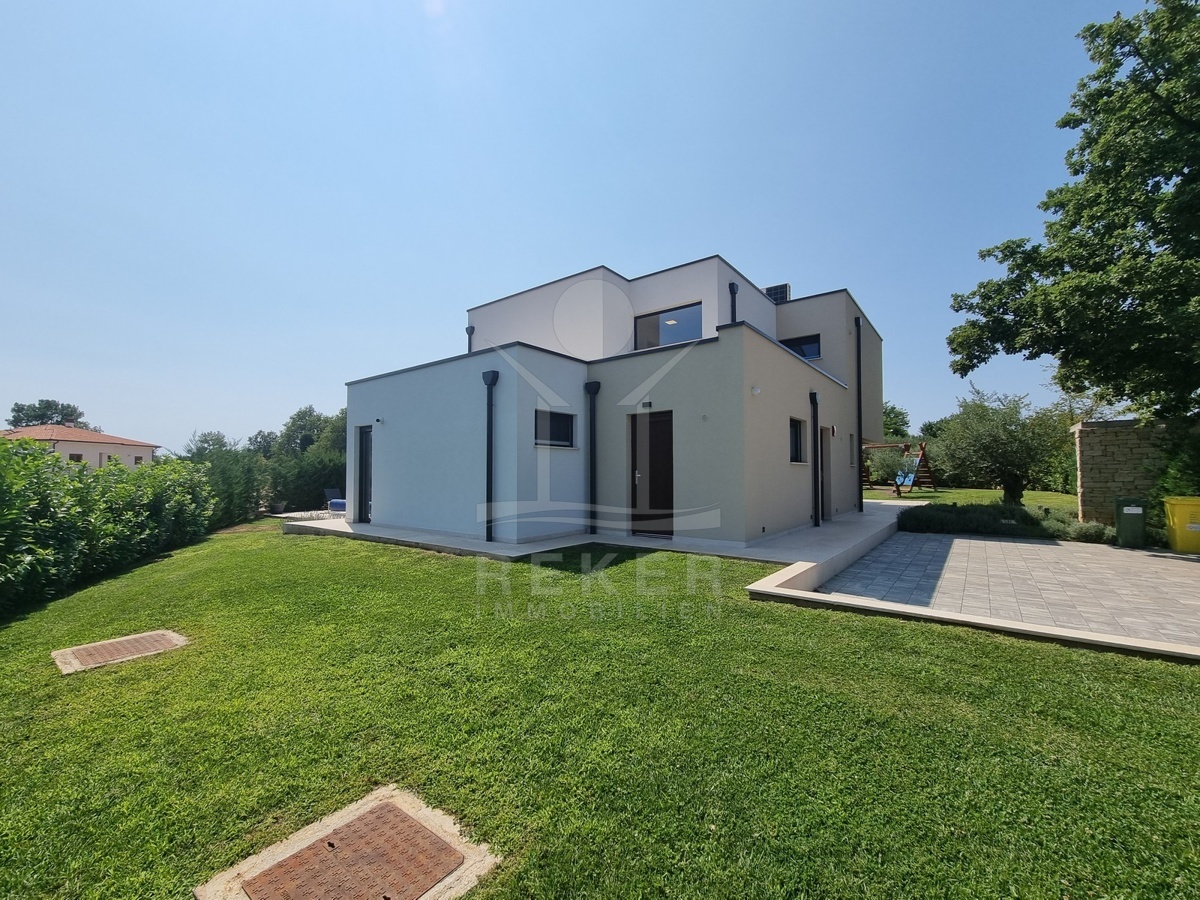Zwischen Poreč und Višnjan liegt dieses moderne Haus in einer wunderbar ruhigen Umgebung. Hier gibt es kaum Nachbarn, dafür umso mehr Natur. Wiesen, Wälder und viel Grün schaffen ein Gefühl von Freiheit. Wer Rückzug und Entspannung sucht, ist hier genau richtig. Bis zur Küste sind es nur zehn Minuten mit dem Auto – ideal für Tagesausflüge ans Meer. Gleichzeitig ist man weit genug entfernt vom Trubel, um die Ruhe in vollen Zügen zu genießen.