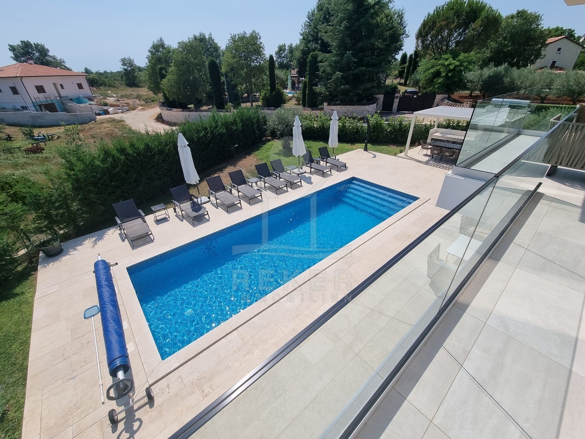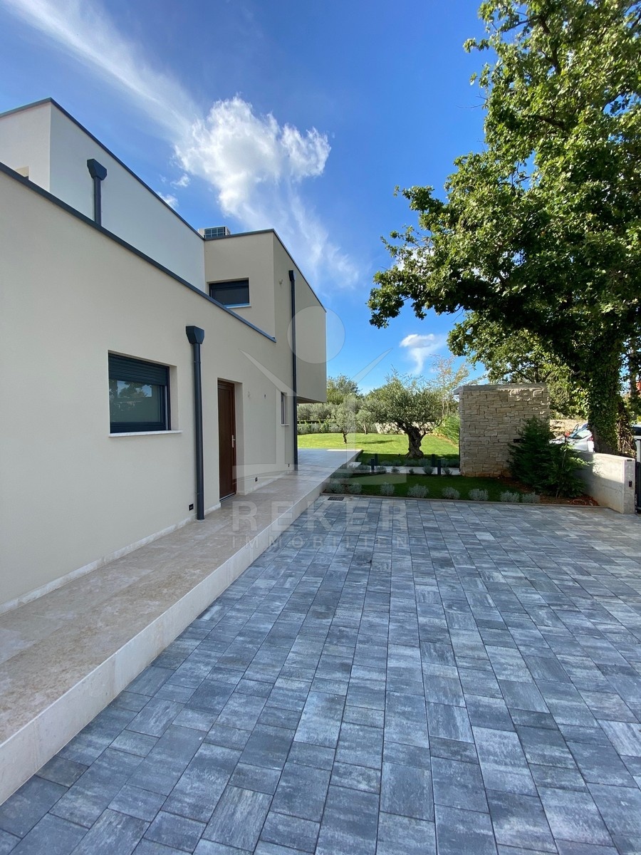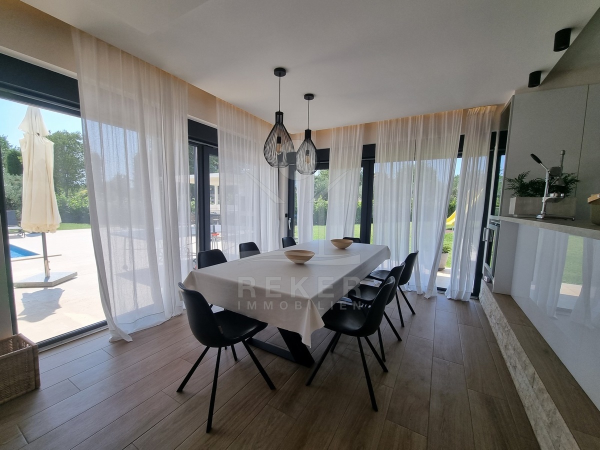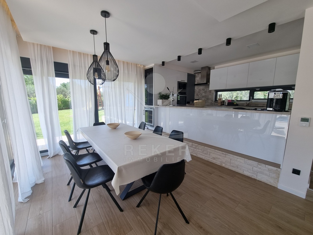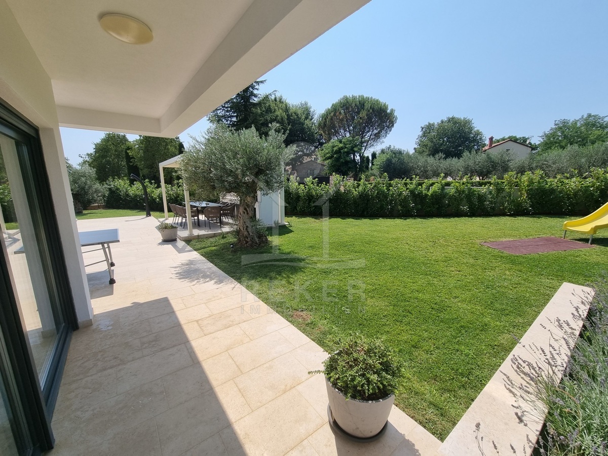 Zwischen Poreč und Višnjan liegt dieses moderne Haus in einer wunderbar ruhigen Umgebung. Hier gibt es kaum Nachbarn, dafür umso mehr Natur. Wiesen, Wälder und viel Grün schaffen ein Gefühl von Freiheit. Wer Rückzug und Entspannung sucht, ist hier genau richtig. Bis zur Küste sind es nur zehn Minuten mit dem Auto – ideal für Tagesausflüge ans Meer. Gleichzeitig ist man weit genug entfernt vom Trubel, um die Ruhe in vollen Zügen zu genießen.