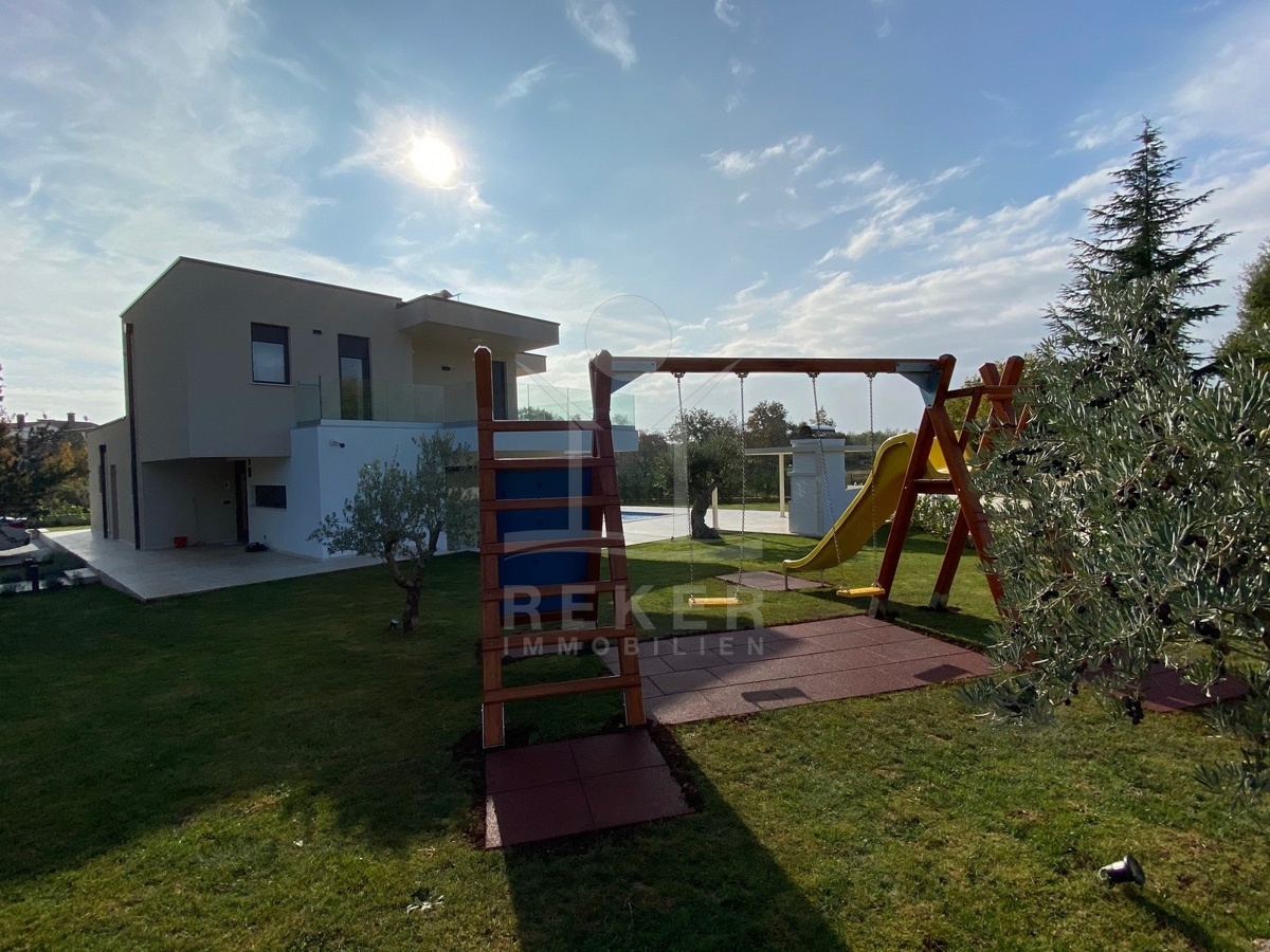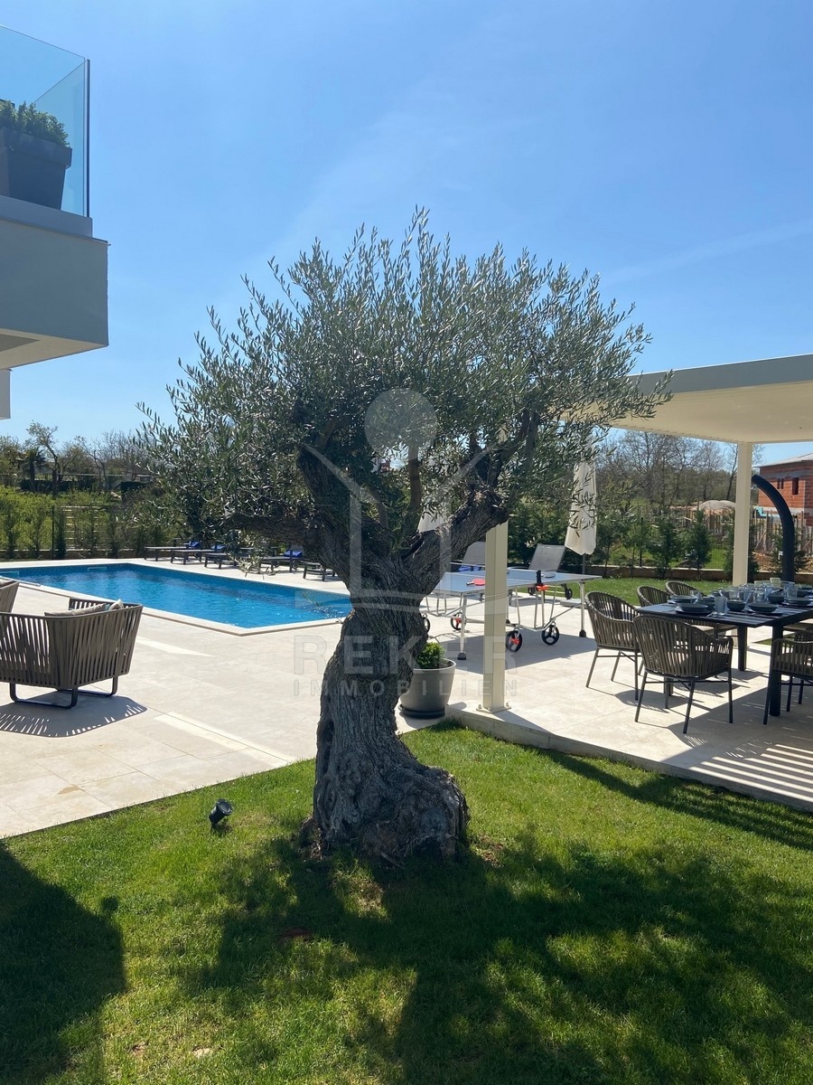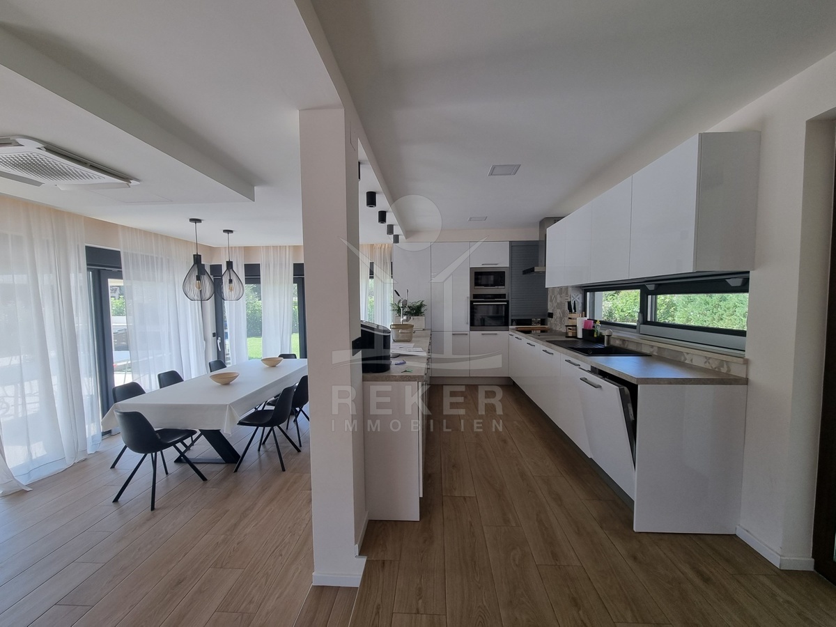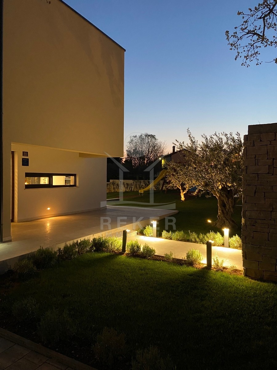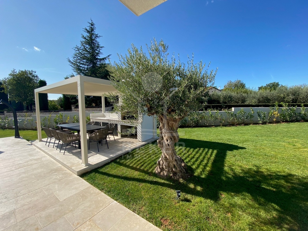 Zwischen Poreč und Višnjan liegt dieses moderne Haus in einer wunderbar ruhigen Umgebung. Hier gibt es kaum Nachbarn, dafür umso mehr Natur. Wiesen, Wälder und viel Grün schaffen ein Gefühl von Freiheit. Wer Rückzug und Entspannung sucht, ist hier genau richtig. Bis zur Küste sind es nur zehn Minuten mit dem Auto – ideal für Tagesausflüge ans Meer. Gleichzeitig ist man weit genug entfernt vom Trubel, um die Ruhe in vollen Zügen zu genießen.