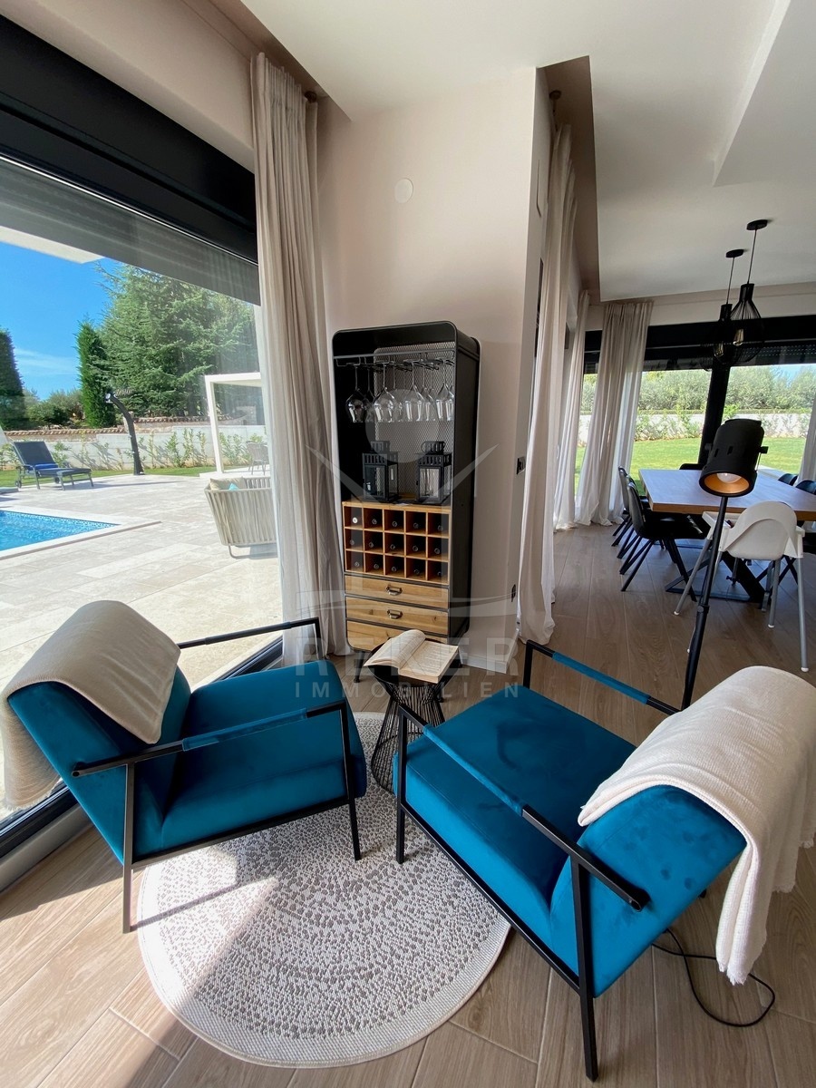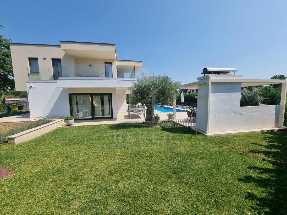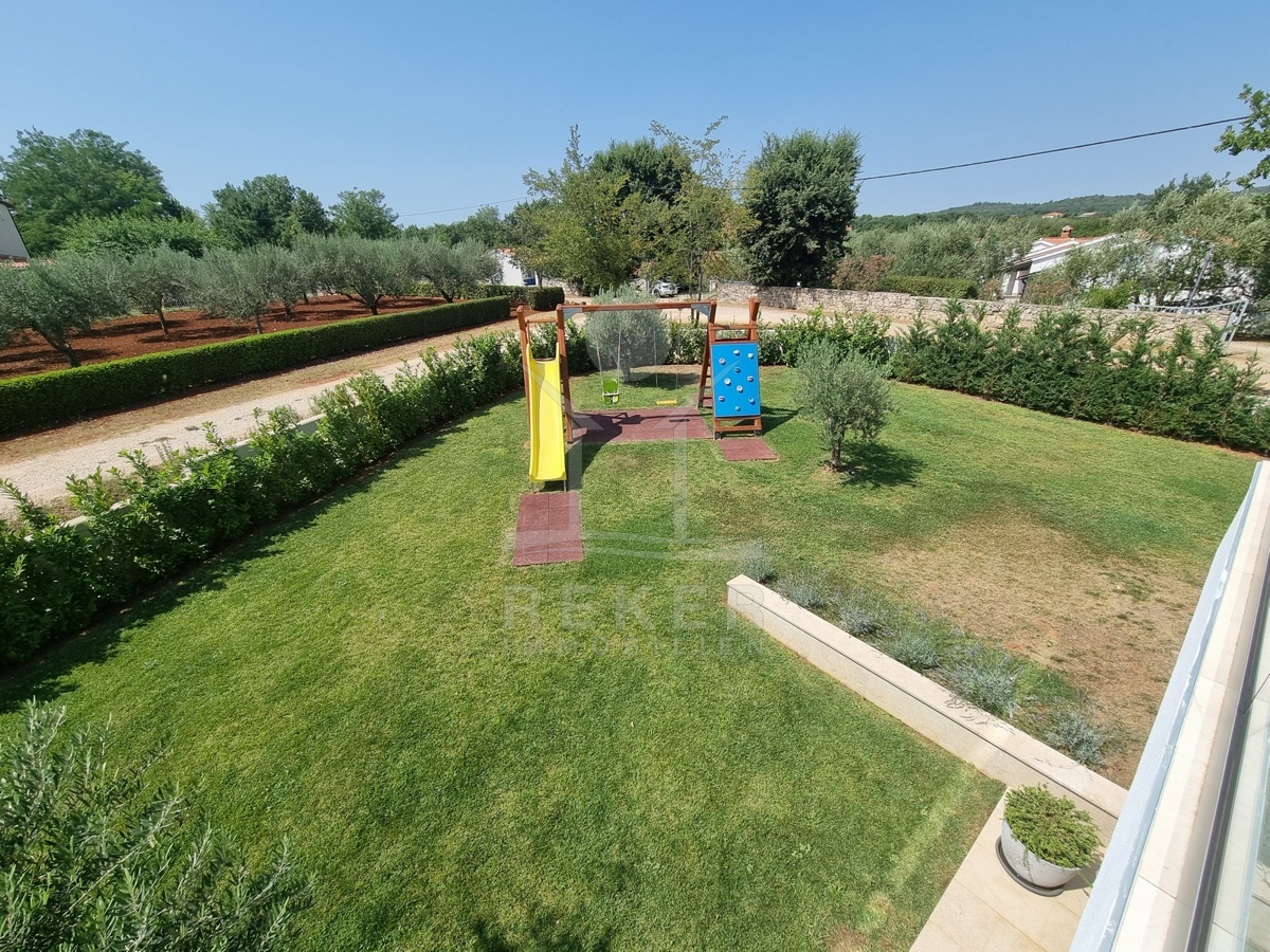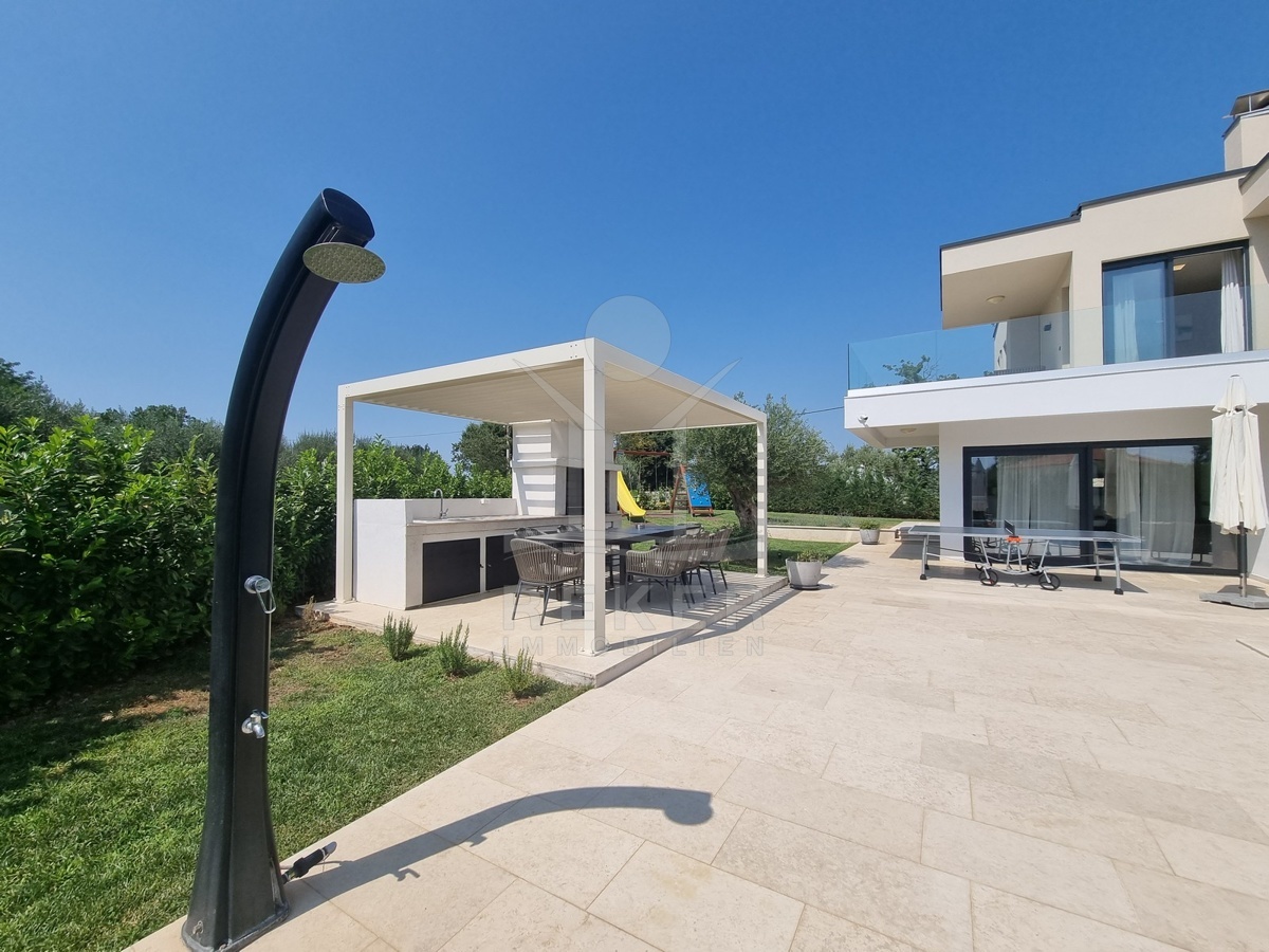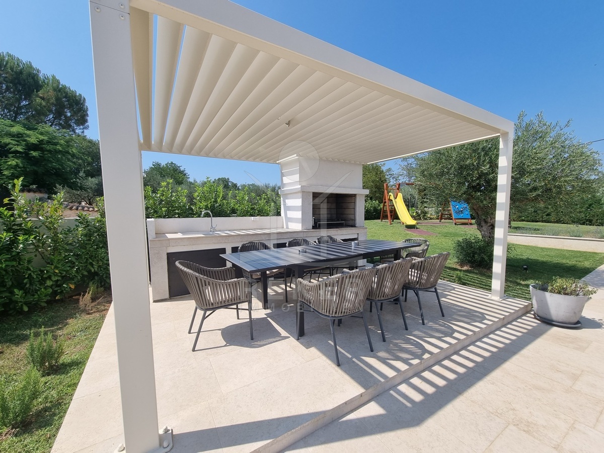 Zwischen Poreč und Višnjan liegt dieses moderne Haus in einer wunderbar ruhigen Umgebung. Hier gibt es kaum Nachbarn, dafür umso mehr Natur. Wiesen, Wälder und viel Grün schaffen ein Gefühl von Freiheit. Wer Rückzug und Entspannung sucht, ist hier genau richtig. Bis zur Küste sind es nur zehn Minuten mit dem Auto – ideal für Tagesausflüge ans Meer. Gleichzeitig ist man weit genug entfernt vom Trubel, um die Ruhe in vollen Zügen zu genießen.