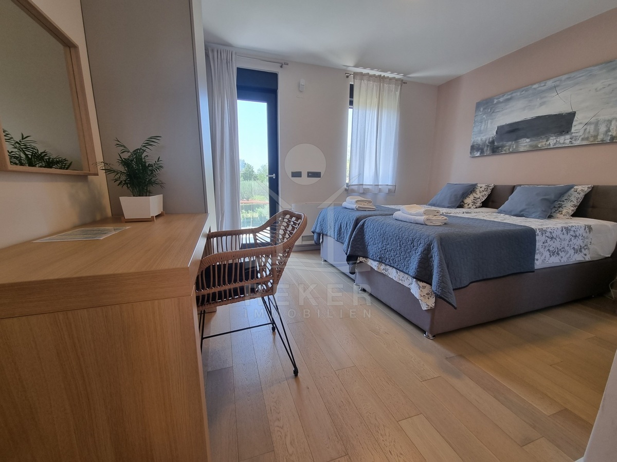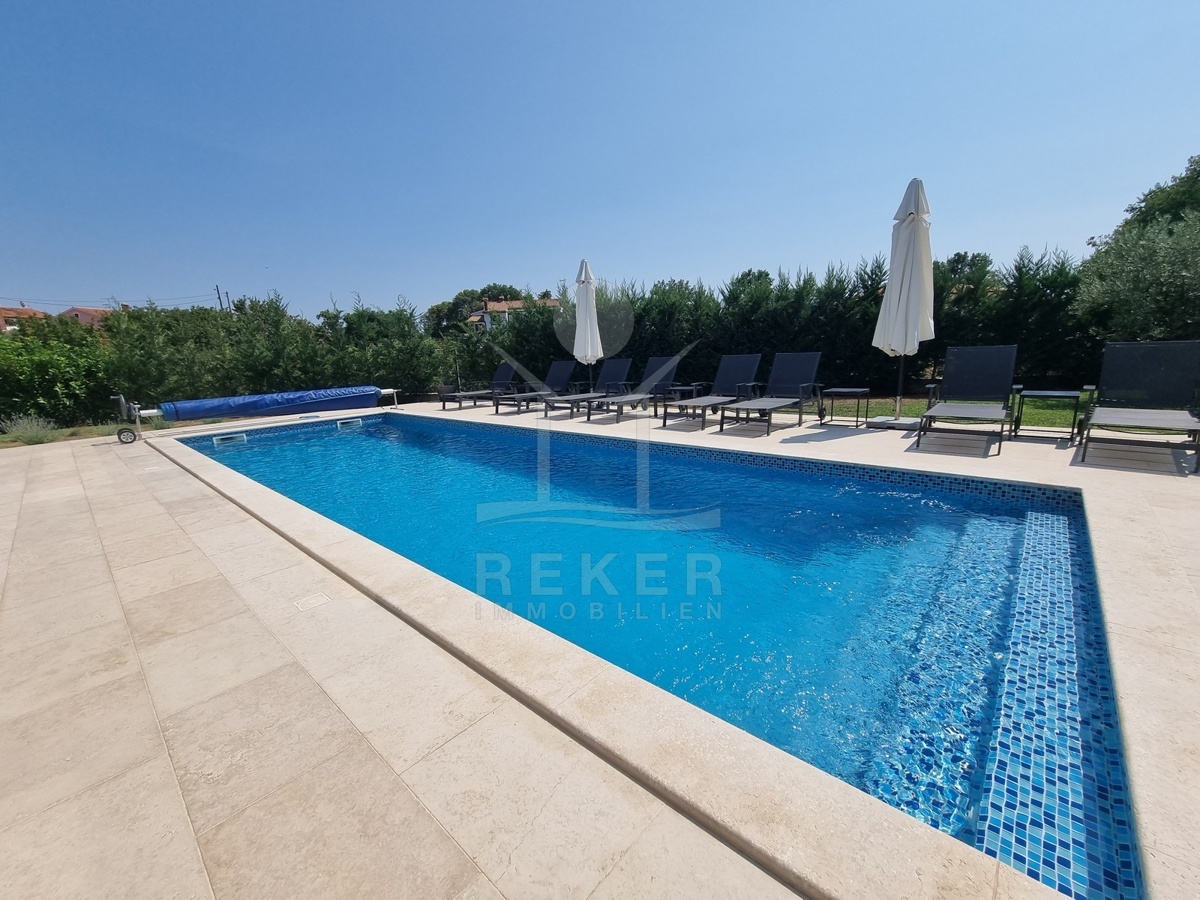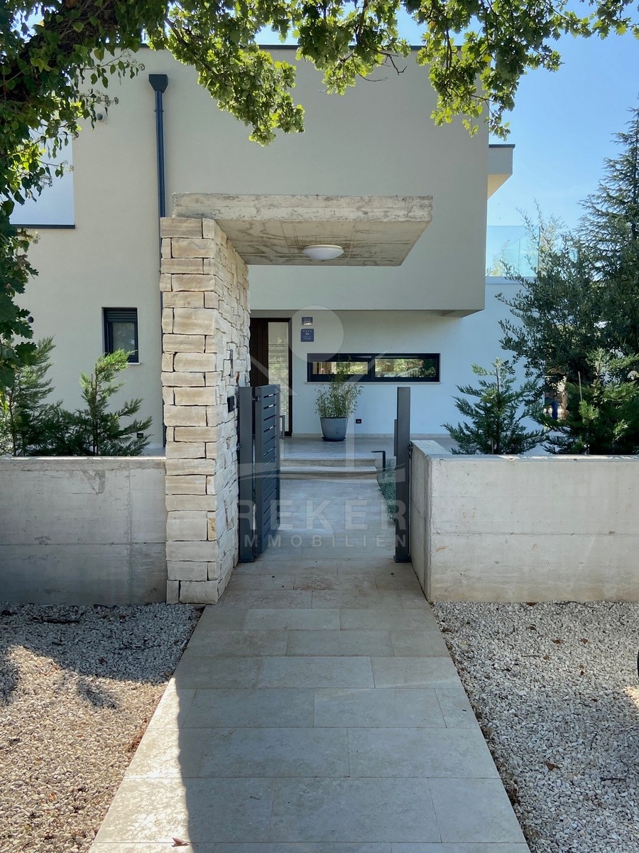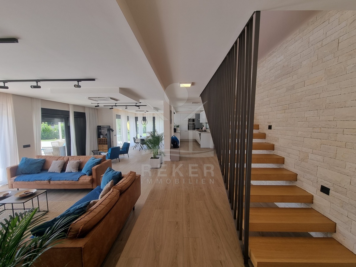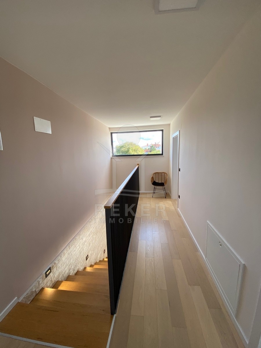 Zwischen Poreč und Višnjan liegt dieses moderne Haus in einer wunderbar ruhigen Umgebung. Hier gibt es kaum Nachbarn, dafür umso mehr Natur. Wiesen, Wälder und viel Grün schaffen ein Gefühl von Freiheit. Wer Rückzug und Entspannung sucht, ist hier genau richtig. Bis zur Küste sind es nur zehn Minuten mit dem Auto – ideal für Tagesausflüge ans Meer. Gleichzeitig ist man weit genug entfernt vom Trubel, um die Ruhe in vollen Zügen zu genießen.