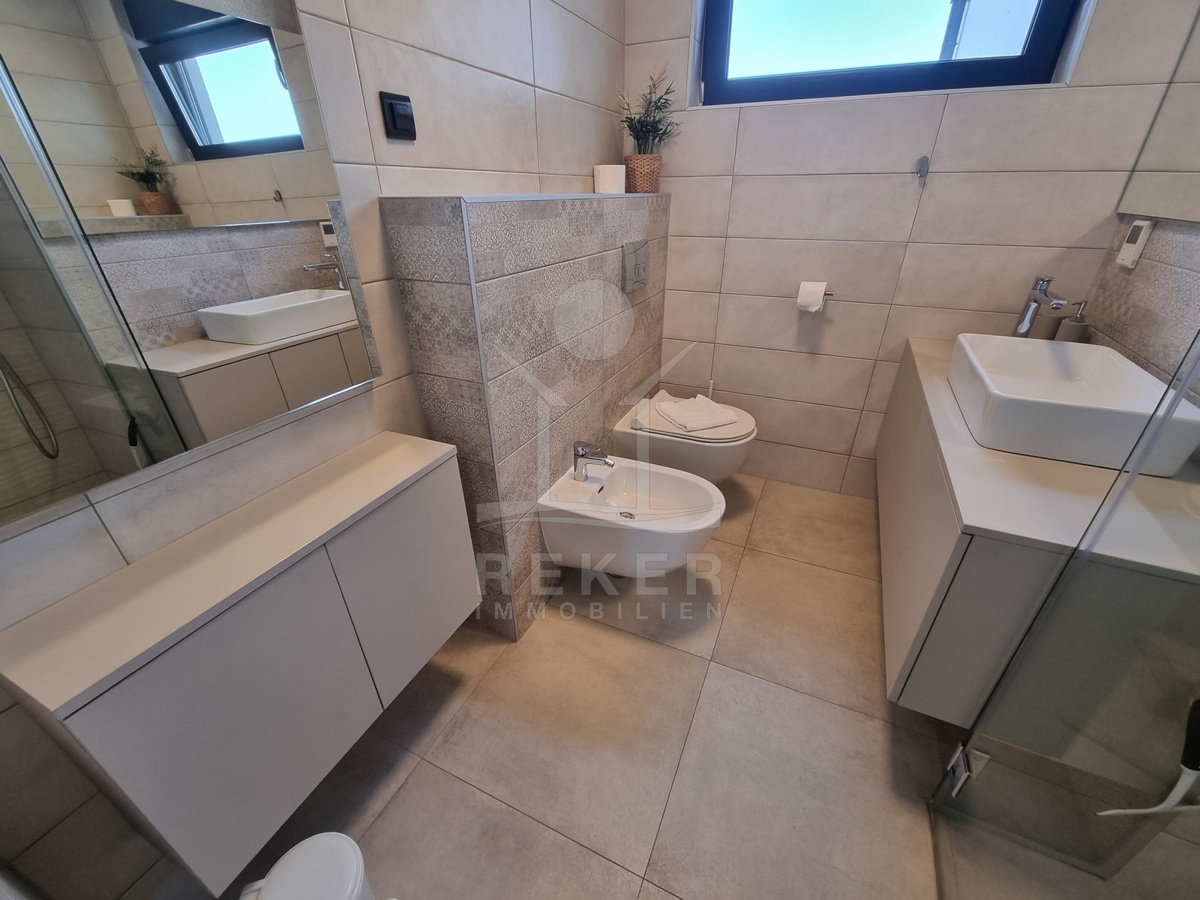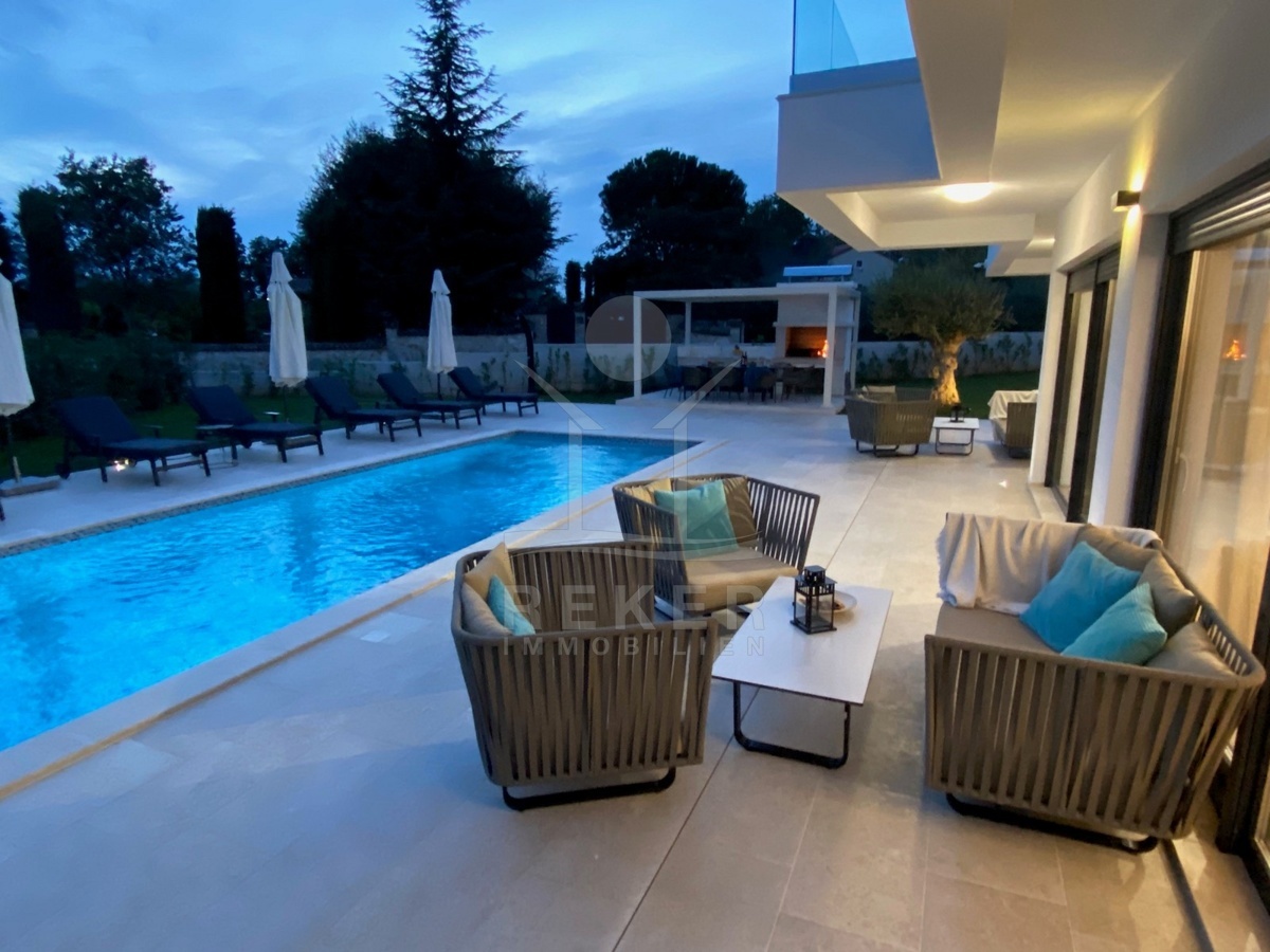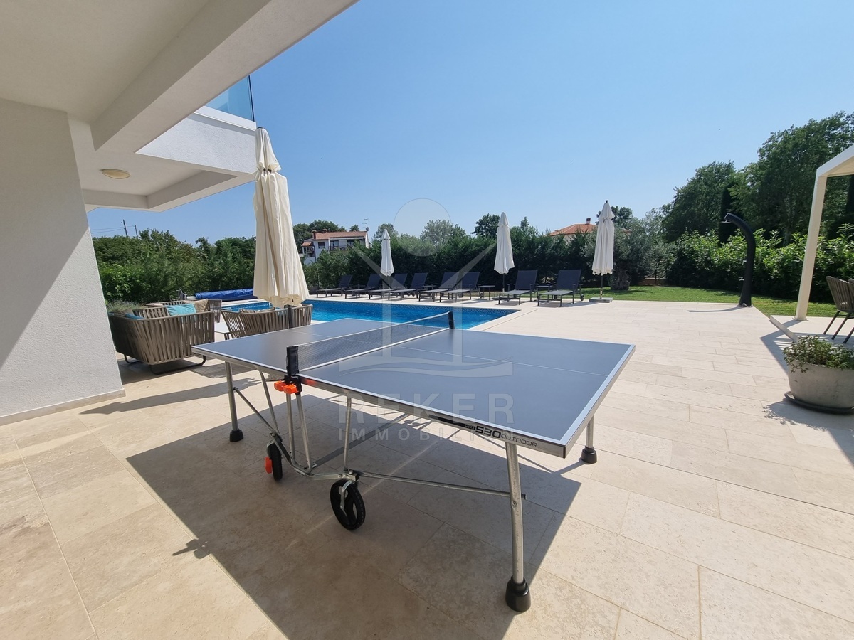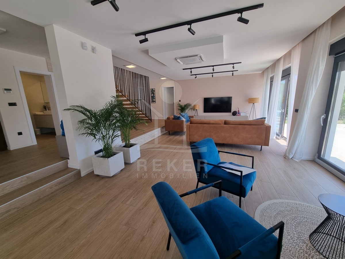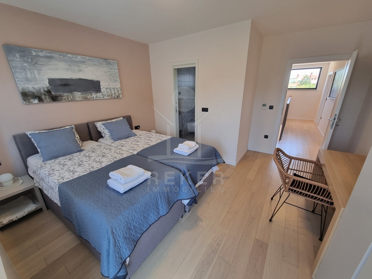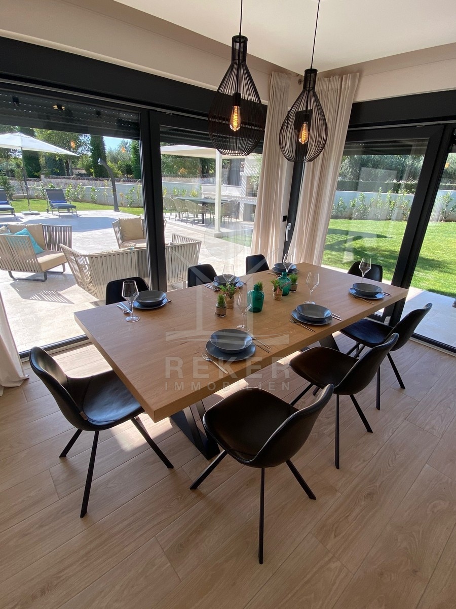 Zwischen Poreč und Višnjan liegt dieses moderne Haus in einer wunderbar ruhigen Umgebung. Hier gibt es kaum Nachbarn, dafür umso mehr Natur. Wiesen, Wälder und viel Grün schaffen ein Gefühl von Freiheit. Wer Rückzug und Entspannung sucht, ist hier genau richtig. Bis zur Küste sind es nur zehn Minuten mit dem Auto – ideal für Tagesausflüge ans Meer. Gleichzeitig ist man weit genug entfernt vom Trubel, um die Ruhe in vollen Zügen zu genießen.
