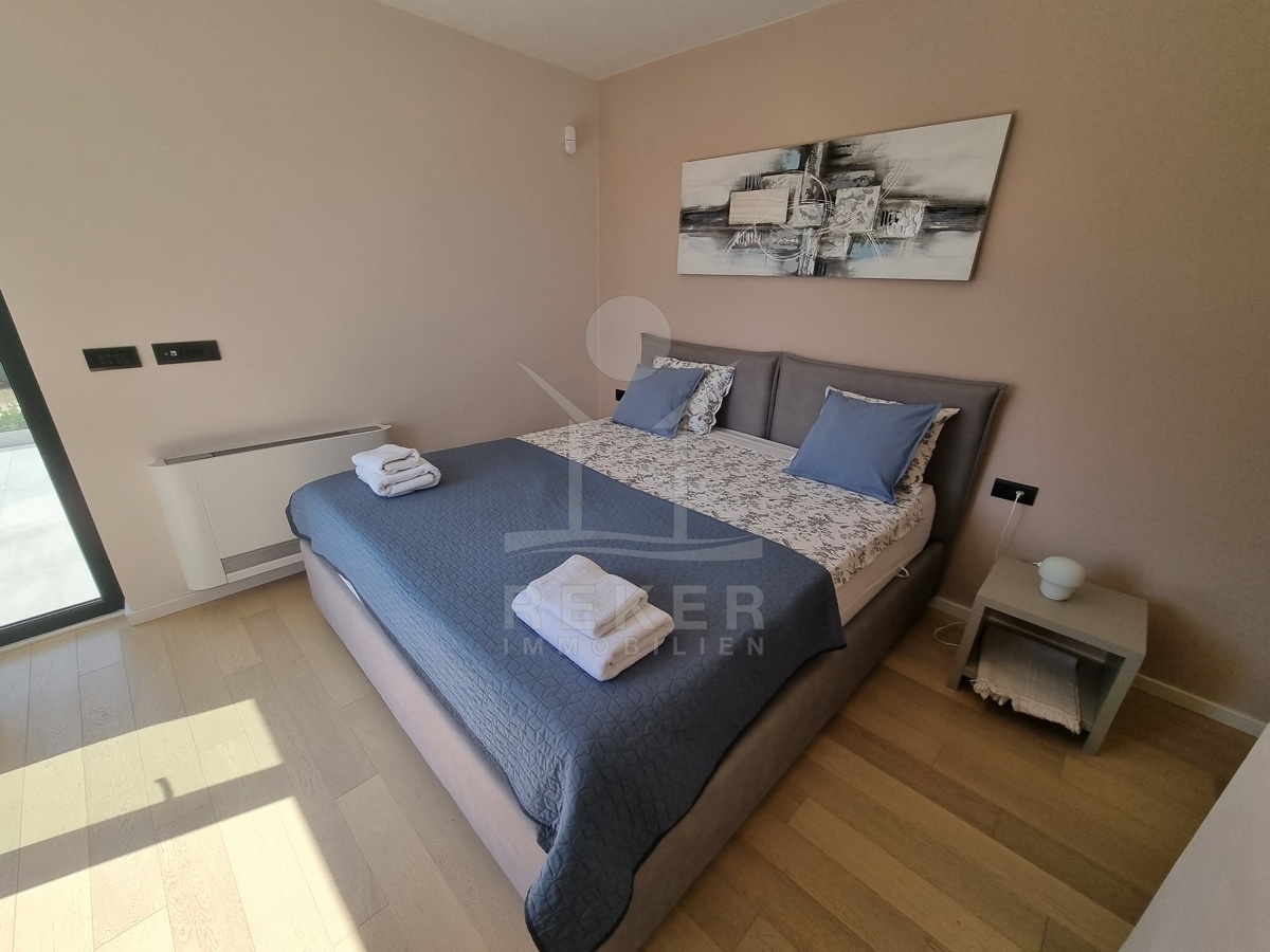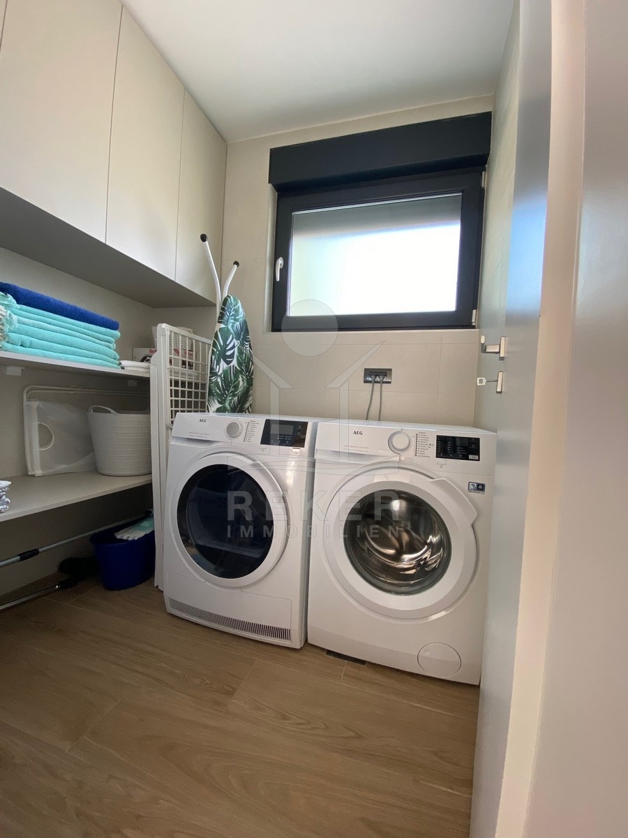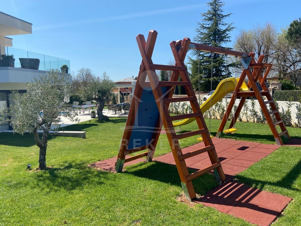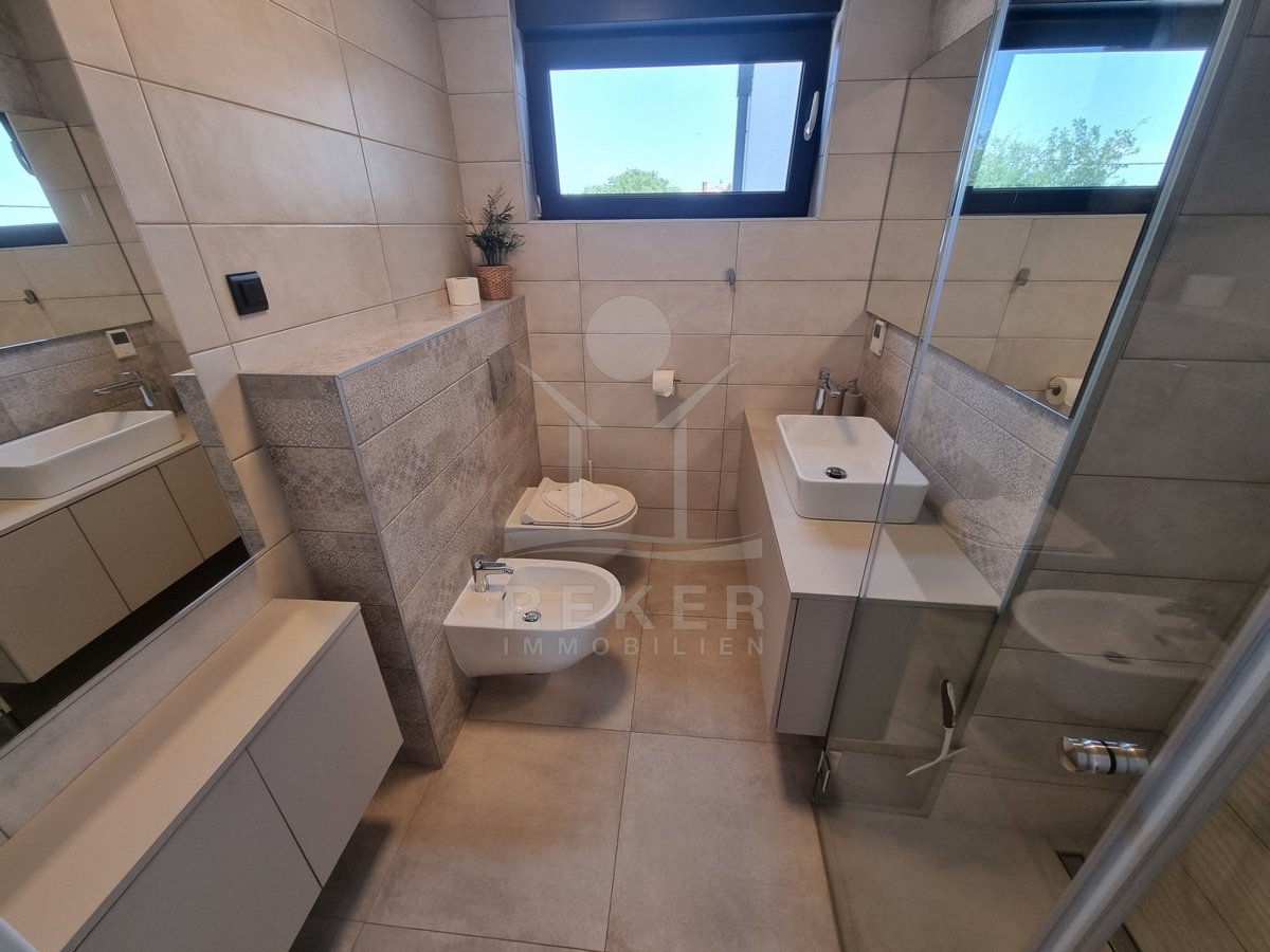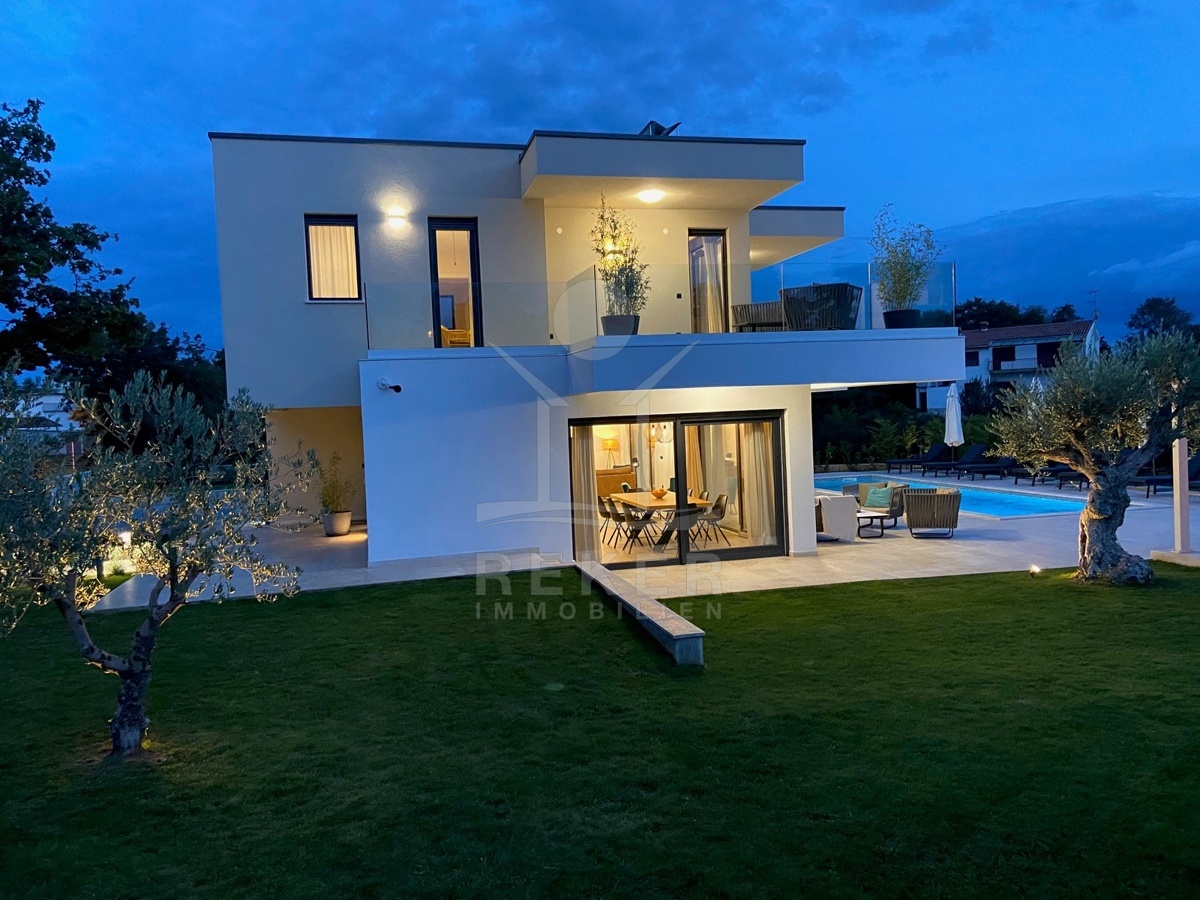 Zwischen Poreč und Višnjan liegt dieses moderne Haus in einer wunderbar ruhigen Umgebung. Hier gibt es kaum Nachbarn, dafür umso mehr Natur. Wiesen, Wälder und viel Grün schaffen ein Gefühl von Freiheit. Wer Rückzug und Entspannung sucht, ist hier genau richtig. Bis zur Küste sind es nur zehn Minuten mit dem Auto – ideal für Tagesausflüge ans Meer. Gleichzeitig ist man weit genug entfernt vom Trubel, um die Ruhe in vollen Zügen zu genießen.