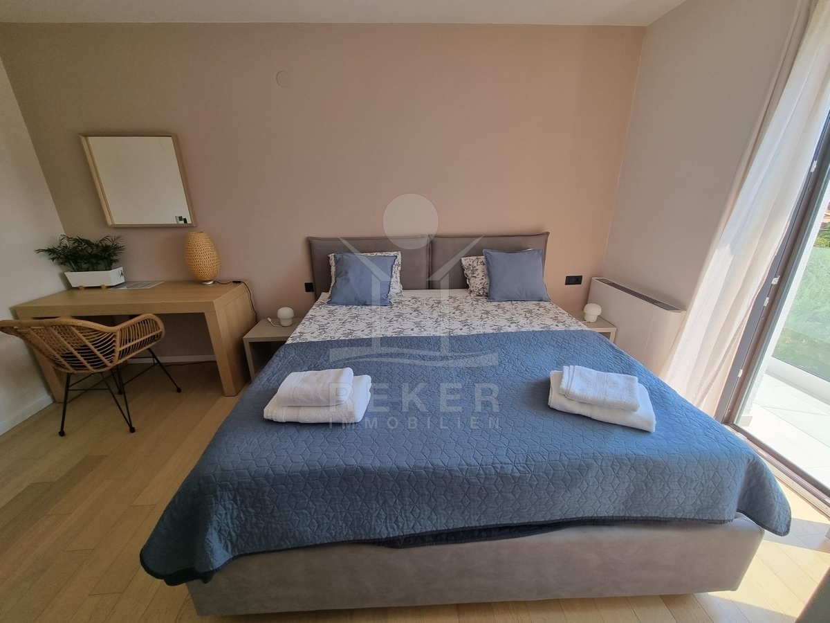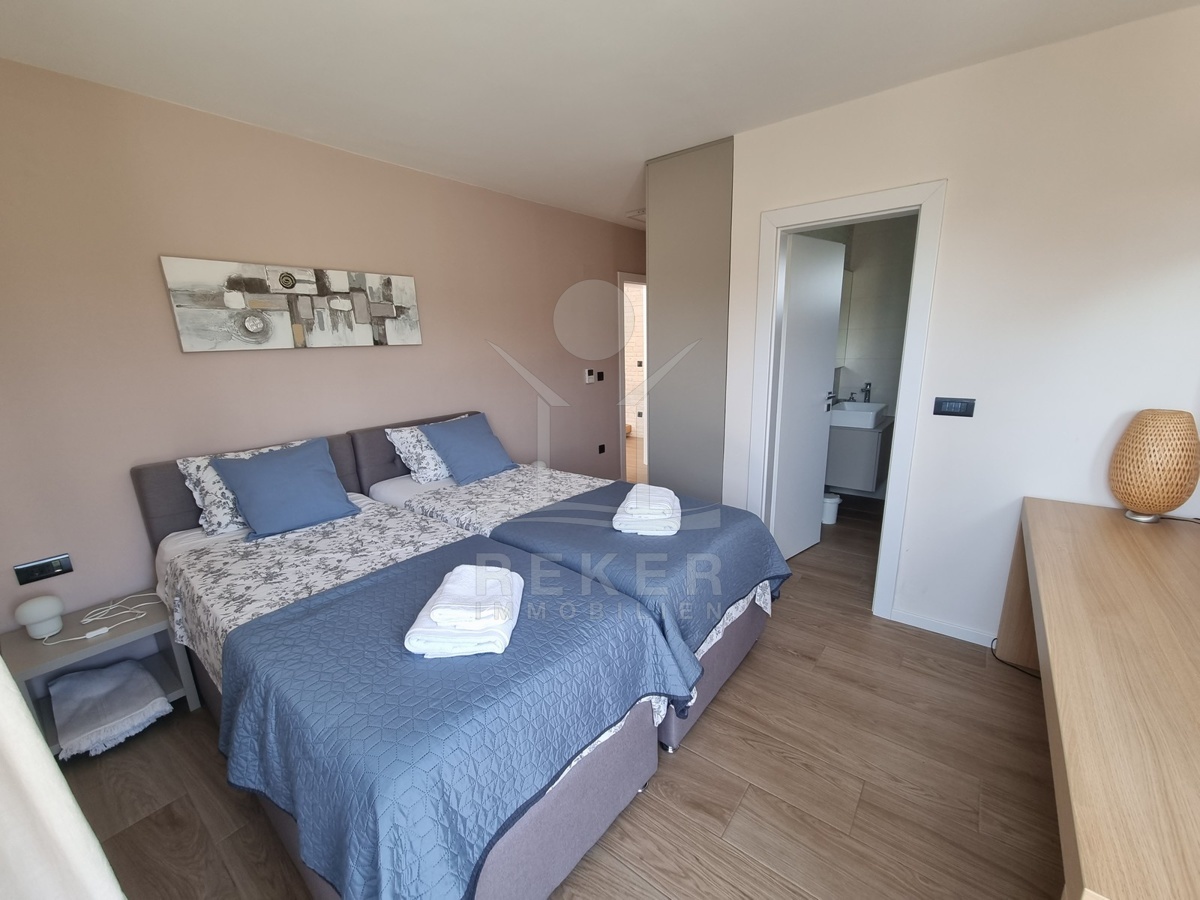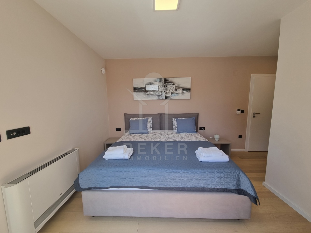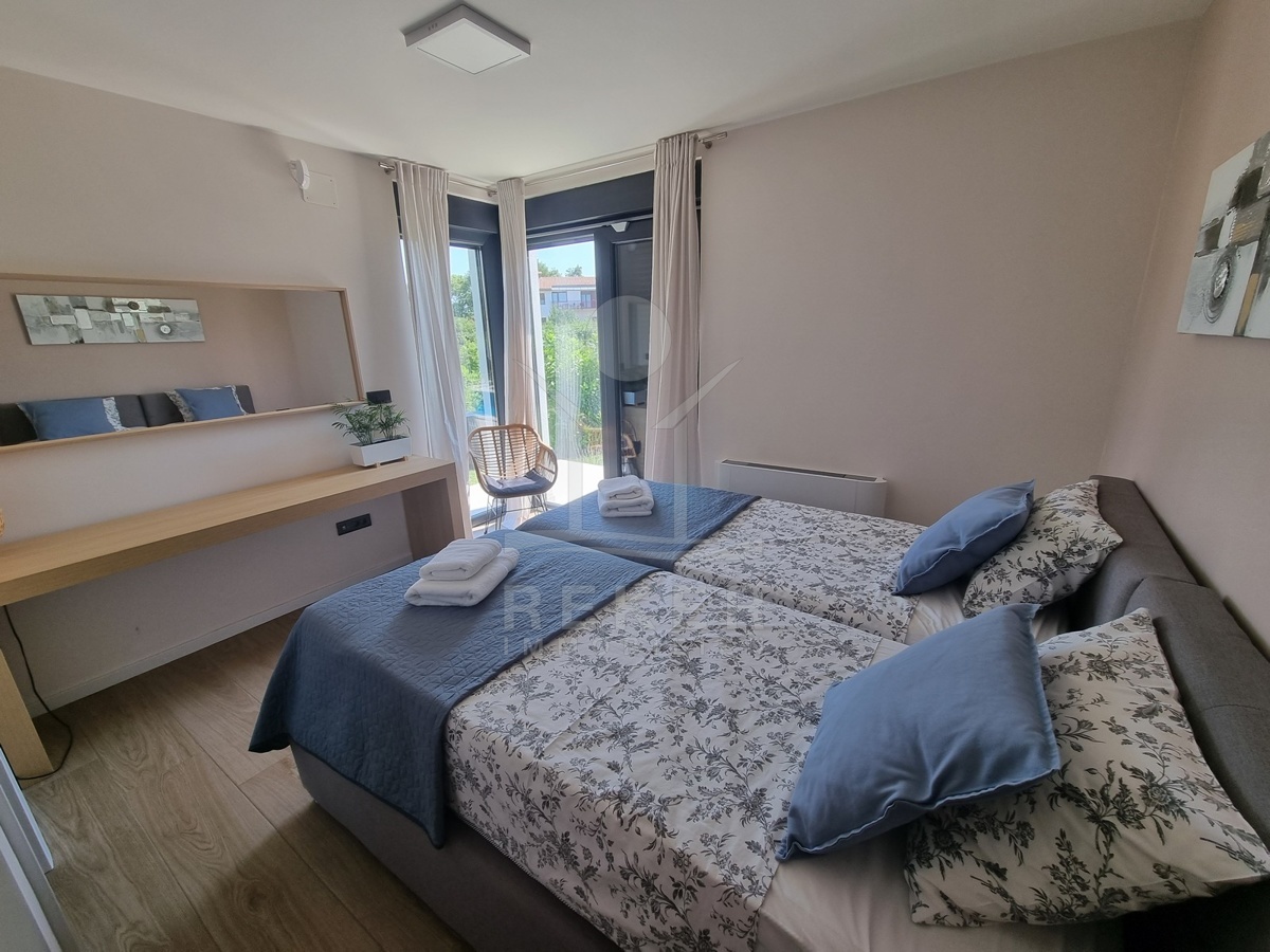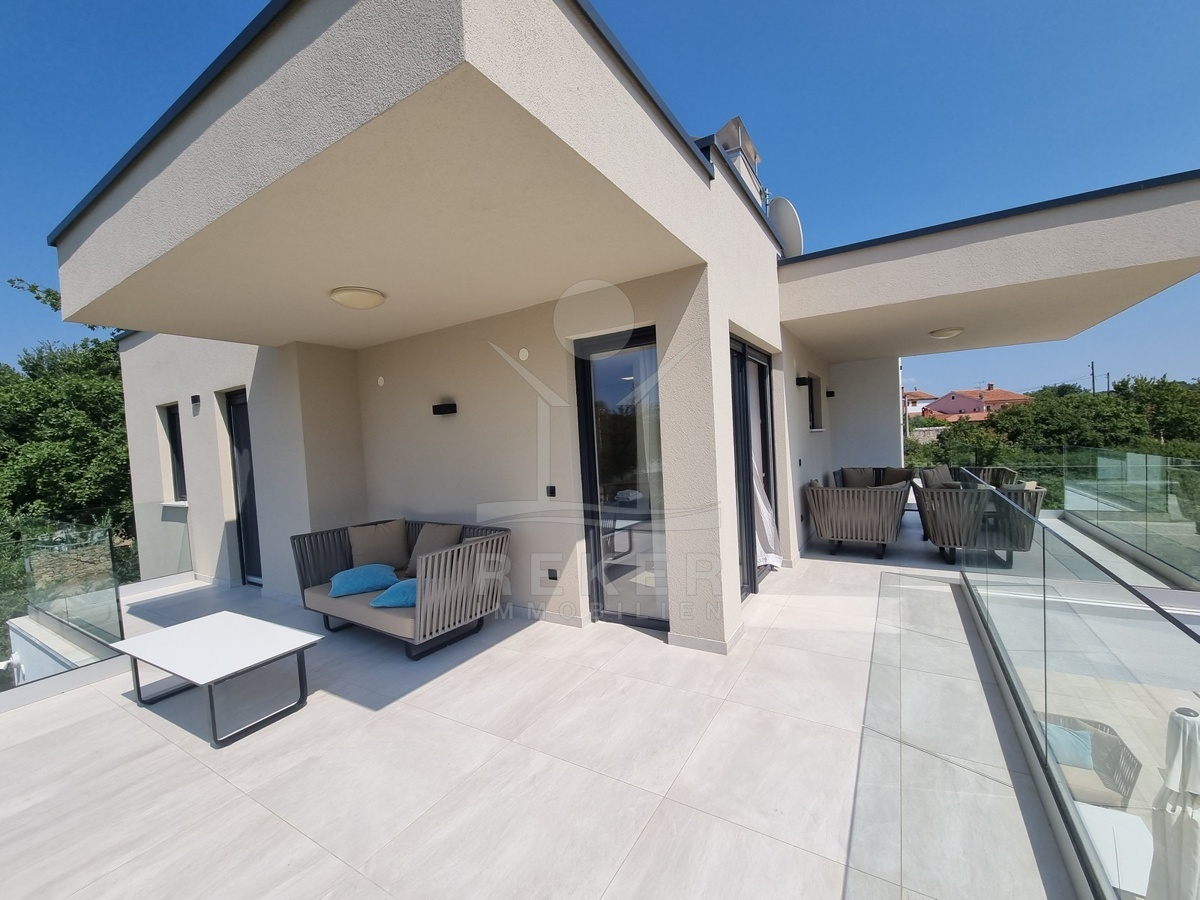 Zwischen Poreč und Višnjan liegt dieses moderne Haus in einer wunderbar ruhigen Umgebung. Hier gibt es kaum Nachbarn, dafür umso mehr Natur. Wiesen, Wälder und viel Grün schaffen ein Gefühl von Freiheit. Wer Rückzug und Entspannung sucht, ist hier genau richtig. Bis zur Küste sind es nur zehn Minuten mit dem Auto – ideal für Tagesausflüge ans Meer. Gleichzeitig ist man weit genug entfernt vom Trubel, um die Ruhe in vollen Zügen zu genießen.