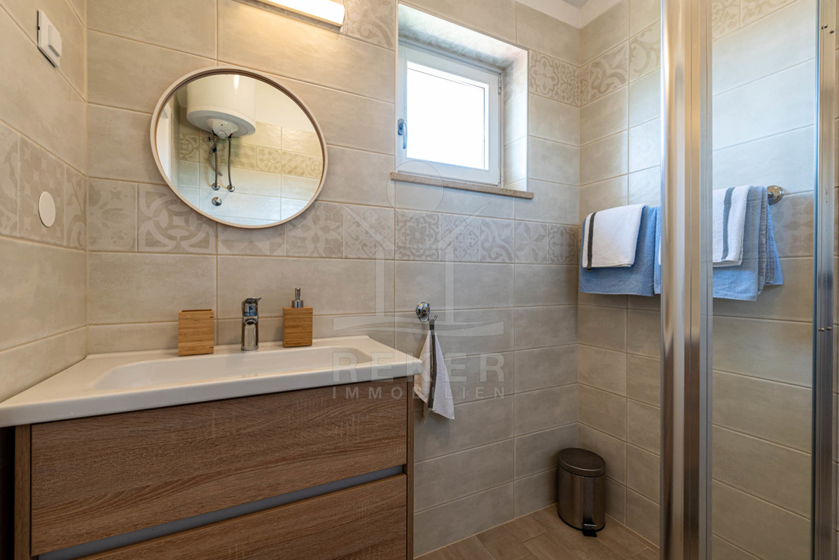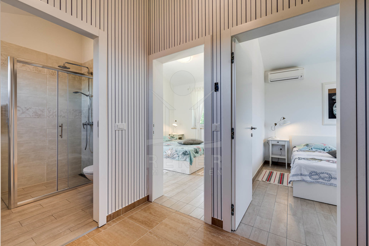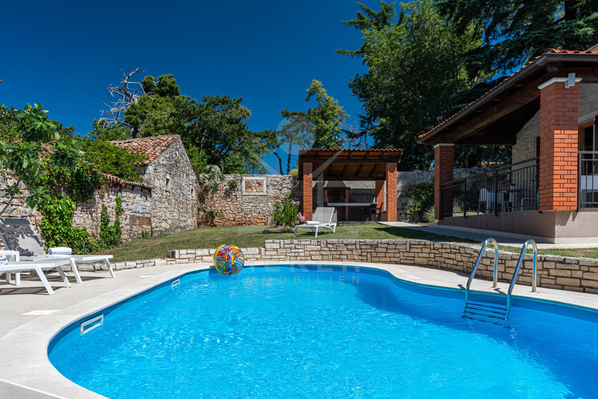 Die Villa befindet sich in einer ruhigen und ländlichen Umgebung in Višnjan, ideal für all diejenigen, die dem Trubel des Alltags entfliehen möchten. In nur wenigen Minuten mit dem Auto erreichen Sie das Meer, wo Sie die Gelegenheit haben, Ausflüge zu unternehmen und die Küste zu erkunden. Die notwendigen Einrichtungen für Einkäufe sind nur 2 km entfernt, sodass Sie sich bequem mit allem Notwendigen versorgen können. Wenn Sie Unterhaltung und Sehenswertes suchen, ist das Stadtzentrum von Porec ebenfalls schnell zu erreichen. Hier finden Sie eine Vielzahl an Restaurants, Bars, Geschäften und kulturellen Angeboten. Genießen Sie Ihren Aufenthalt in dieser idyllischen und ländlichen Umgebung und lassen Sie die Seele baumeln.