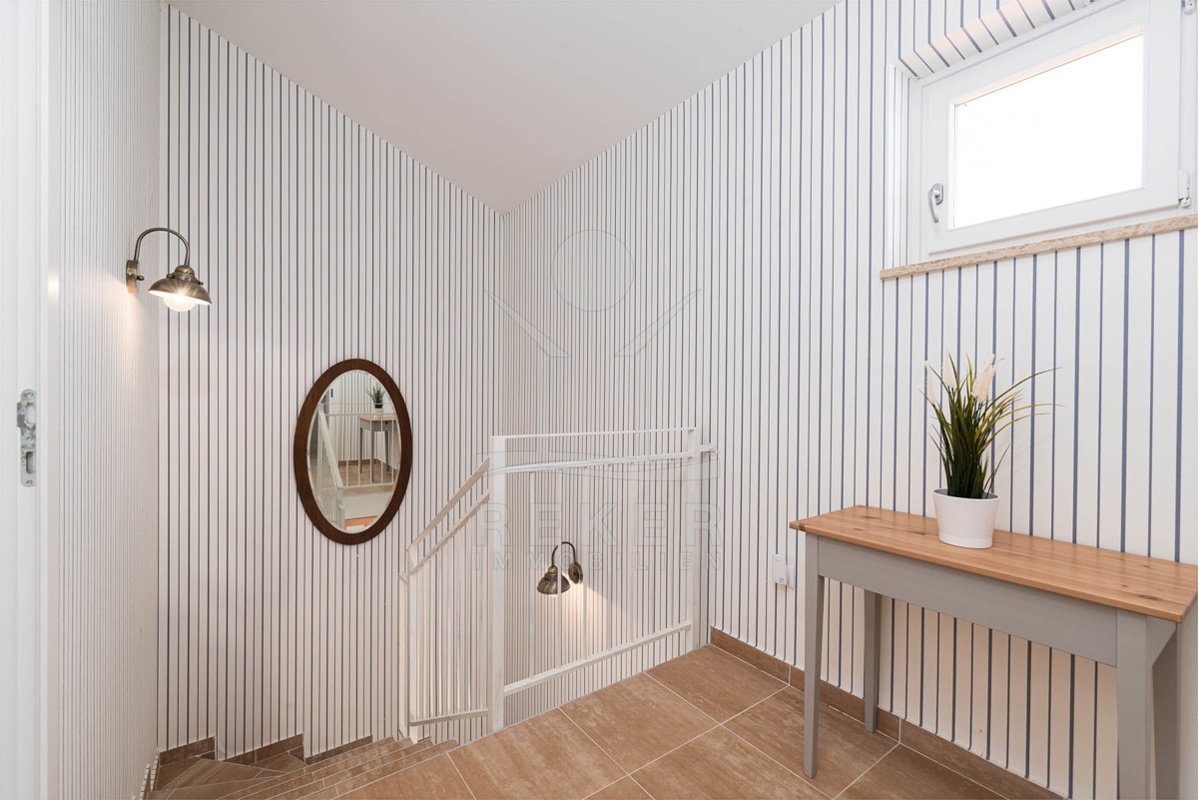 Das Anwesen mit einer Wohnfläche von 130 m² ist ein echtes Juwel auf einem weitläufigen Grundstück von 768 m². Mit einer Nordwestausrichtung bietet das Anwesen den Bewohnern den ganzen Tag über viel Sonne. Der Garten ist mediterran angelegt und durch eine Hecke geschützt, die Privatsphäre gewährleistet. Das Gebäude selbst erstreckt sich auf zwei Etagen und bietet ein geräumiges und komfortables Wohnen.
