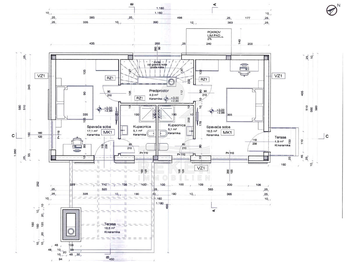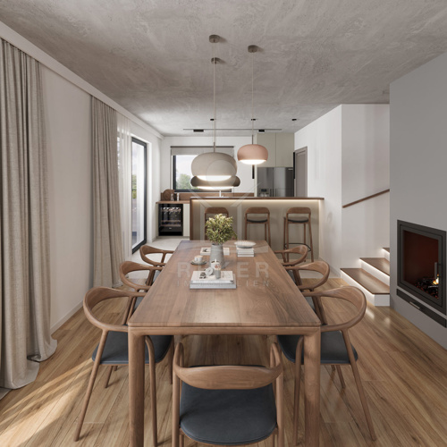 Innen erwartet Sie eine Wohnfläche von 163,50 m². Das offene Konzept verbindet Wohnen, Essen und Kochen zu einem hellen, großzügigen Raum mit Zugang zur Terrasse und zum Pool. Eine Eingangshalle, eine Toilette und ein Abstellraum ergänzen das Erdgeschoss. Im Obergeschoss befinden sich zwei Schlafzimmer, jedes mit eigenem Bad. Vom Hauptschlafzimmer aus öffnet sich eine 18,60 m² große Terrasse mit weitem Blick über die Hügellandschaft Istriens, ein Ort der Ruhe.