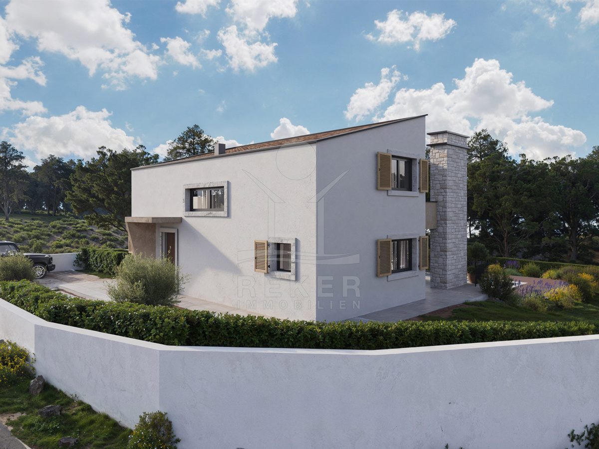 Vižinada, ein malerisches Dorf im Herzen Istriens. Zwischen sanften Hügeln, Olivenhainen und Weinbergen entsteht eine Villa, die moderne Architektur mit traditionellen Details verbindet. Die Umgebung ist ruhig, zugleich gut erreichbar. In nur 15 Minuten sind Sie in Poreč und am Meer, Restaurants und Einkaufsmöglichkeiten befinden sich in der Nähe. Das Grundstück misst 1.038 m², genug Raum für Privatsphäre, Parkflächen und Ihre eigenen Ideen.