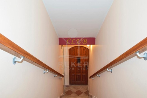 Die mediterrane Architektur harmoniert perfekt mit dem liebevoll gepflegten Garten und sorgt für ein einladendes Ambiente, während das Gebäude sich über 2 Etagen mit einer Gesamtfläche von 393 m² erstreckt und sowohl einen Fitnessbereich als auch eine Taverne umfasst.