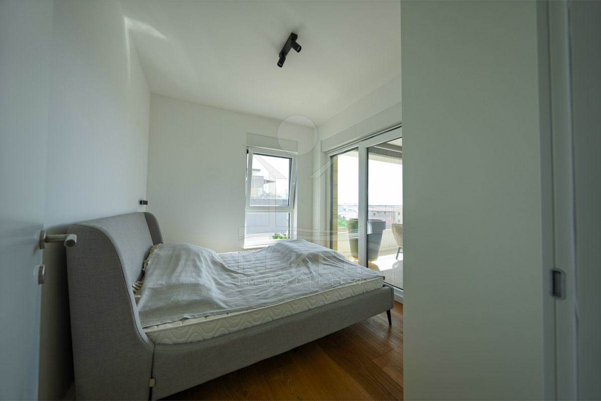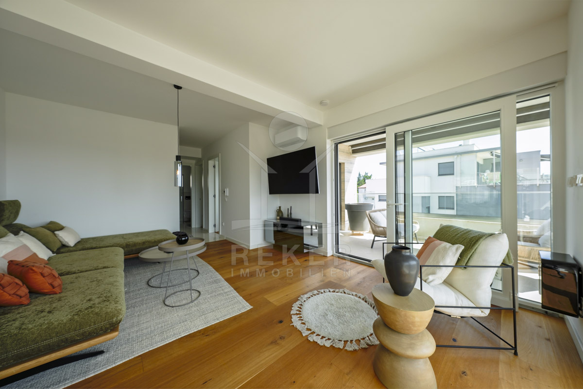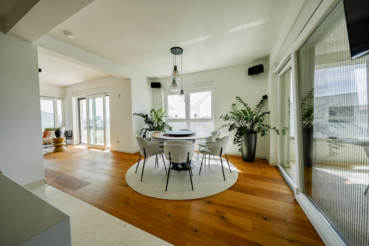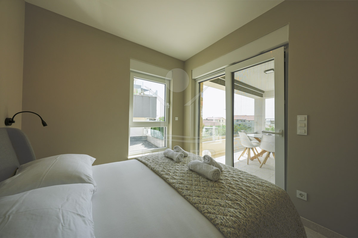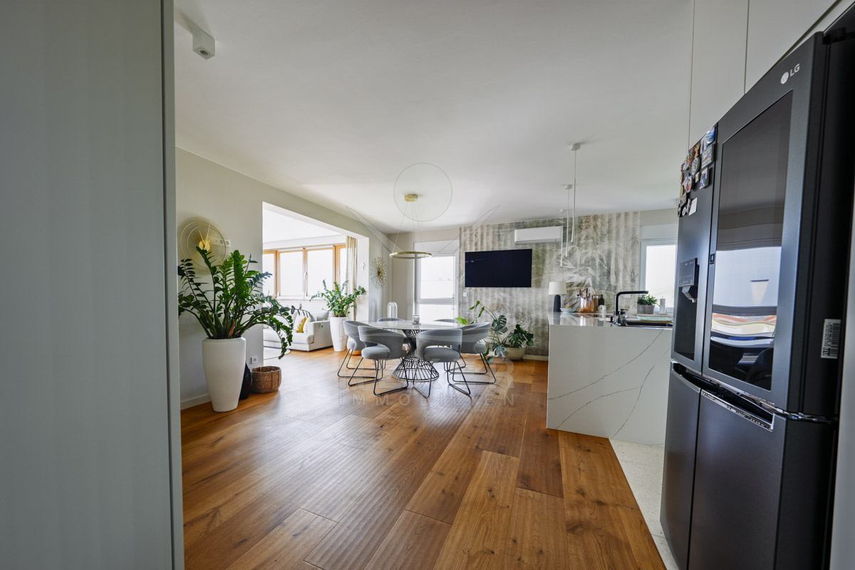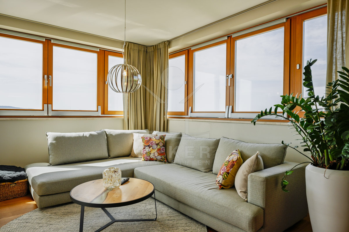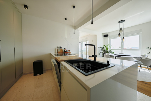 Die Neubauvilla aus dem Jahr 2023 befindet sich in einer ruhigen Wohngegend von Vodice, rund 500 Meter vom Meer entfernt. Sie wohnen abgeschirmt und dennoch nah an Strand und Zentrum. Aus den oberen Etagen reicht der Blick bis zum Meer. Sechs Stellplätze stehen zur Verfügung, zwei in der Garage, vier vor dem Haus. Praktisch bei mehreren Nutzern.