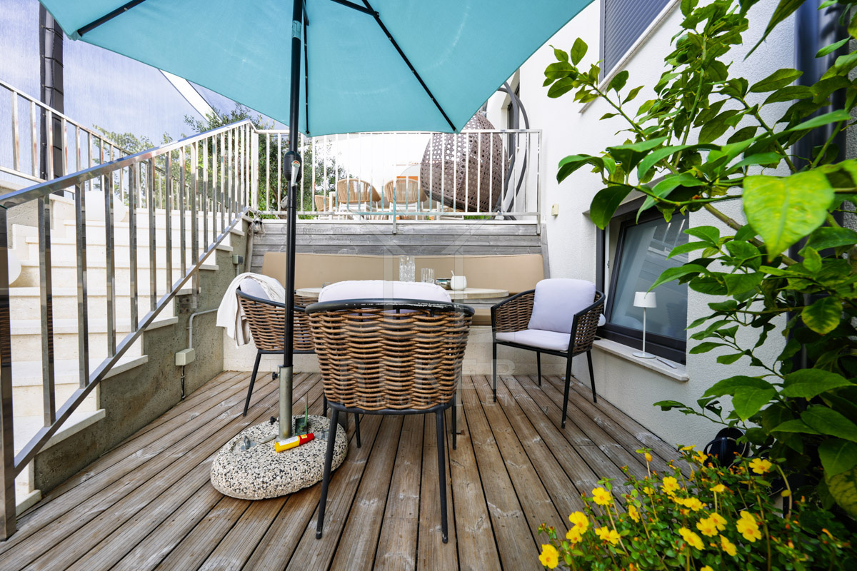 Die Villa verteilt sich auf drei Etagen mit insgesamt 523,17 m² Wohnfläche. Vier separate Wohneinheiten sind über ein gemeinsames Treppenhaus erreichbar. Jede Einheit steht für ein eigenständiges Wohngefühl. Eine sinnvolle Lösung für Familien, Freunde oder eine Nutzung mit Vermietungsanteil.