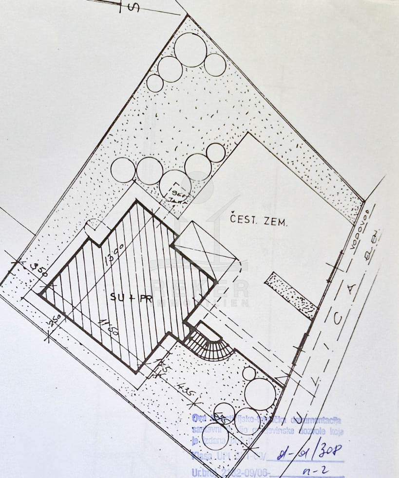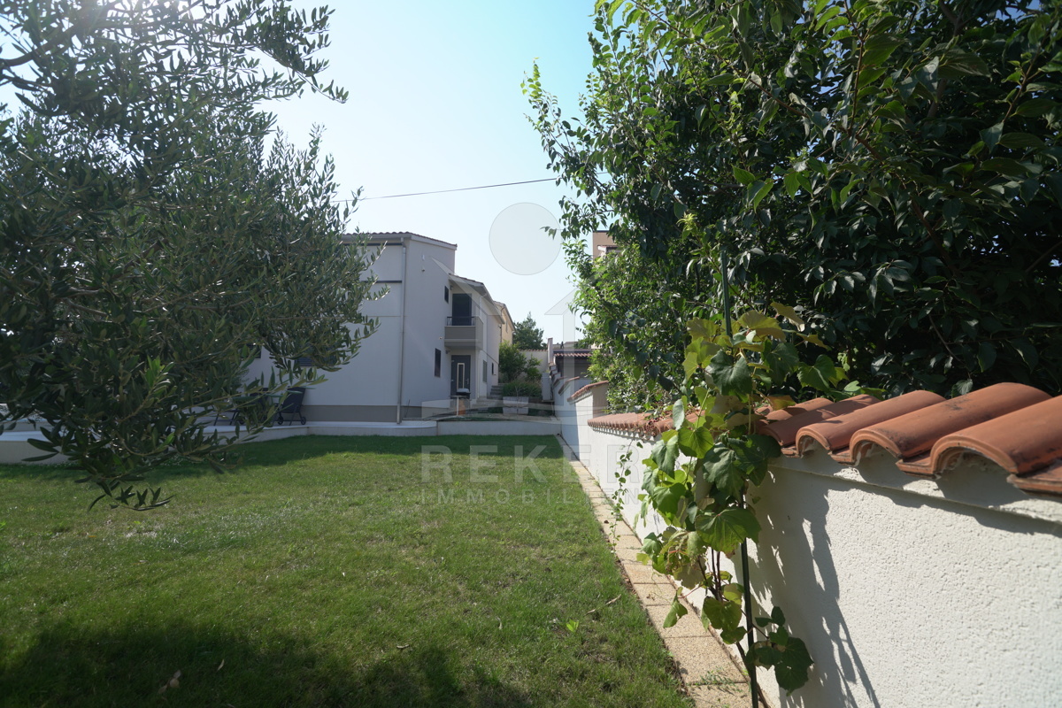 Das Grundstück umfasst großzügige 800 m² und ist mit einer Mauer umrandet, die Privatsphäre und Sicherheit gewährleistet. Der Garten ist liebevoll angelegt und verfügt über eine große Grünfläche sowie schöne Bäume, die Schatten spenden. Ein elektrisches Tor ermöglicht den bequemen Zugang zum Grundstück.