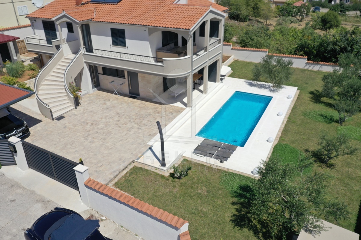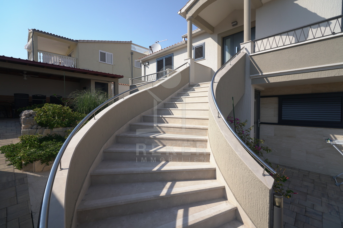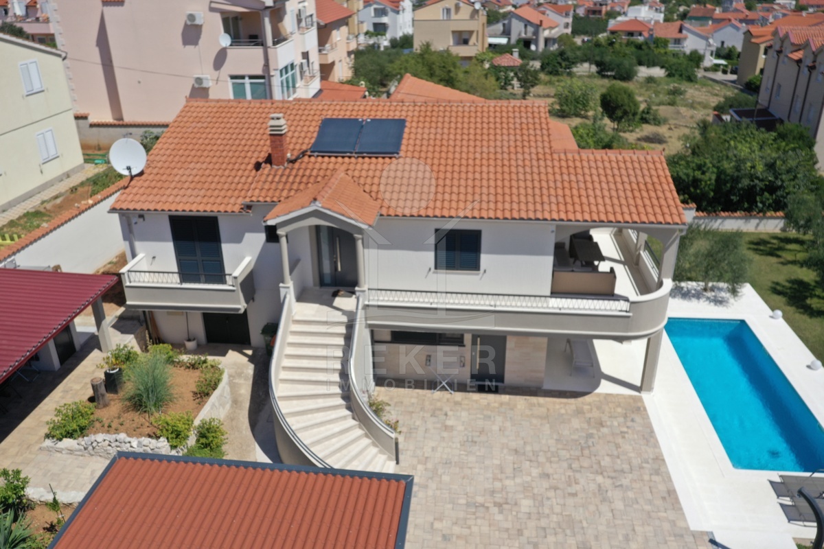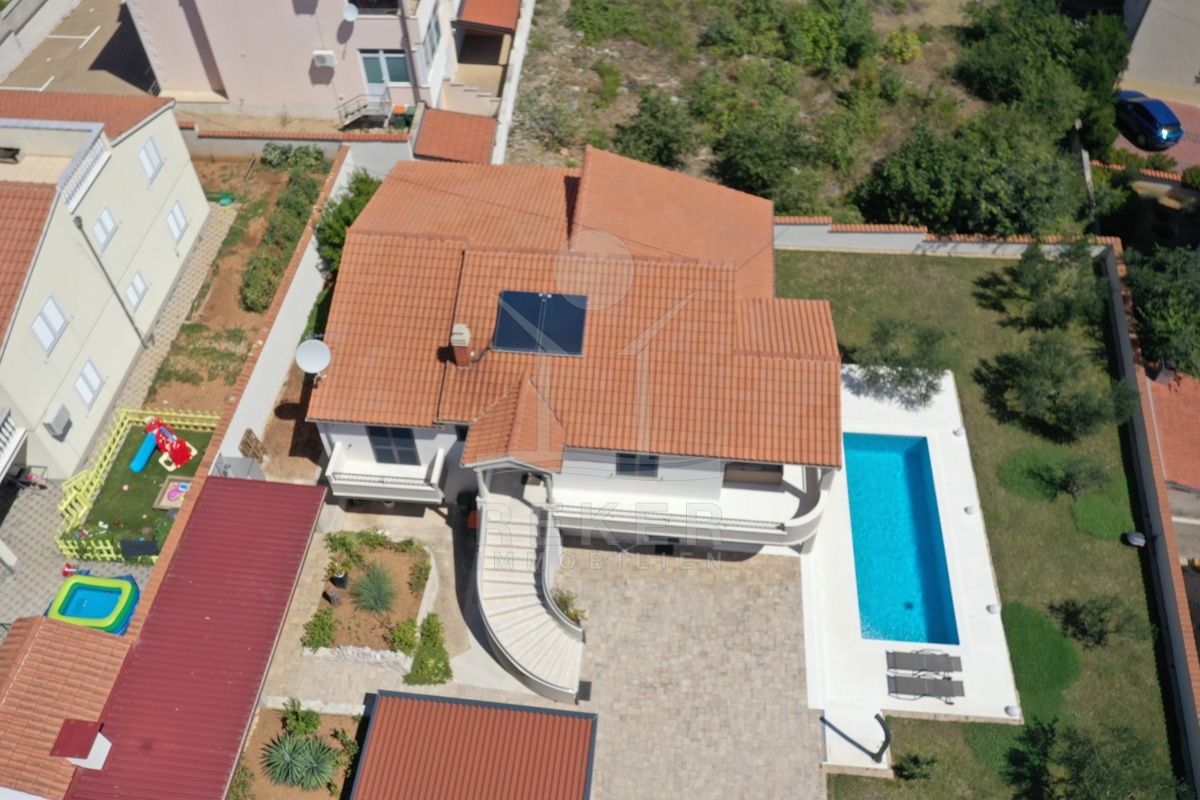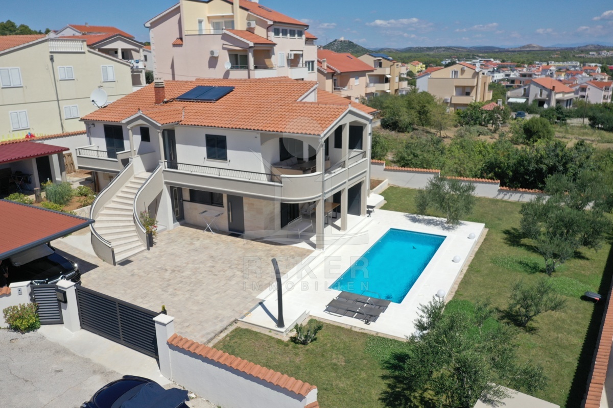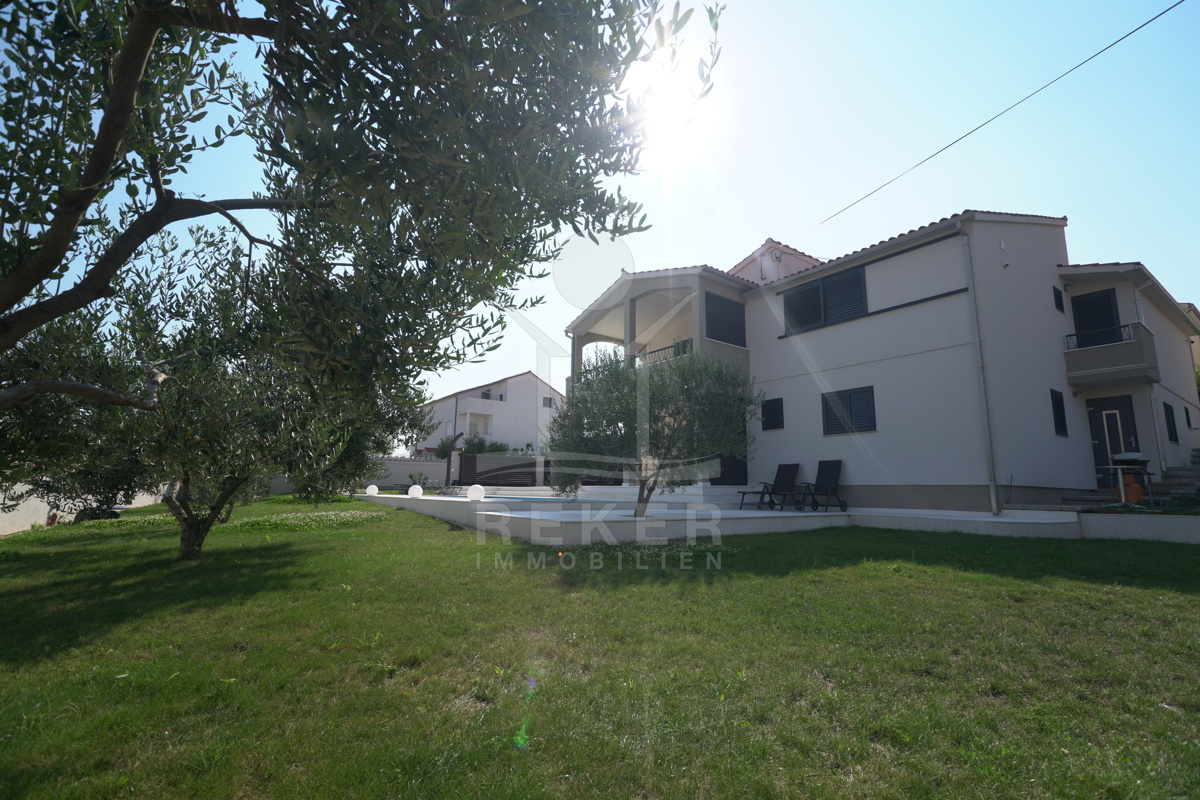 In einer ruhigen Lage in Vodice erwartet Sie diese beeindruckende Villa mit herrlichem Blick auf das Meer. Aufgrund der erhöhten Hanglage bietet die Immobilie einen unvergleichlichen Ausblick, der von den umliegenden Wohngebäuden ungestört ist. Mit einer Entfernung von nur 1 km zum Zentrum von Vodice und nur 800 m zum Meer genießen Sie hier eine perfekte Kombination aus Ruhe und Nähe zum städtischen Leben.