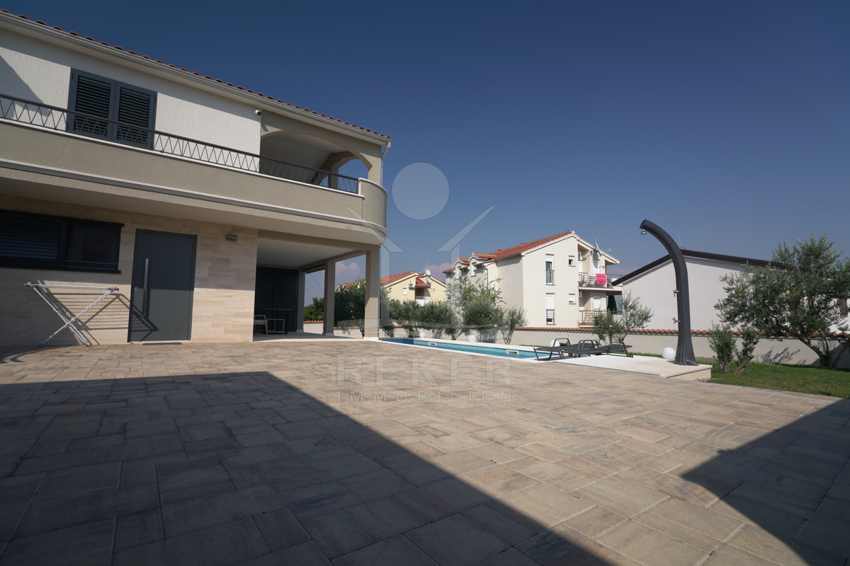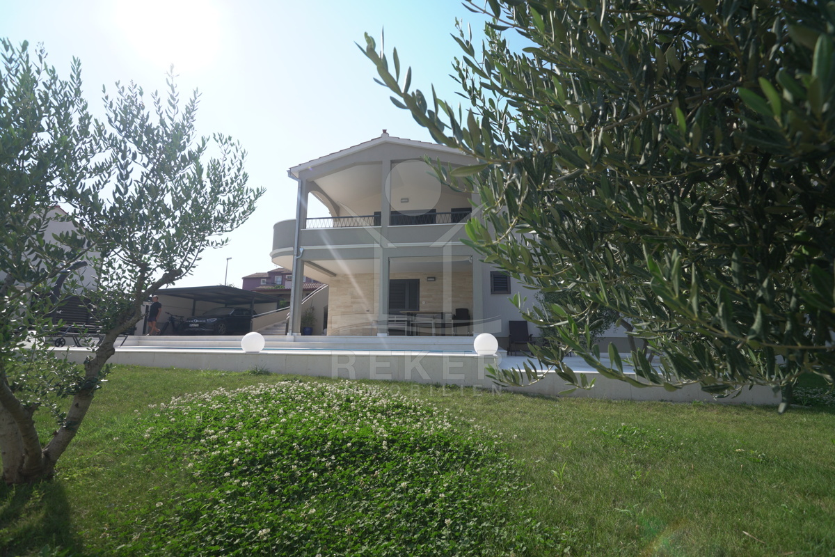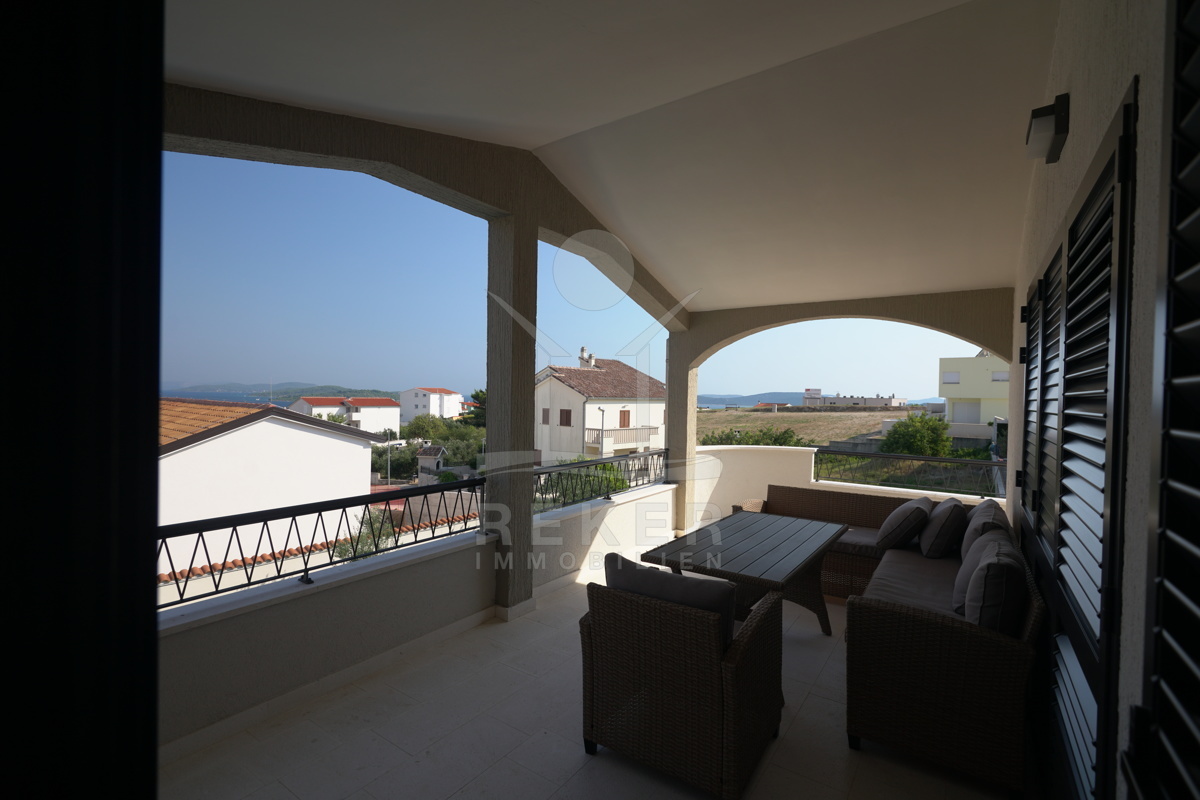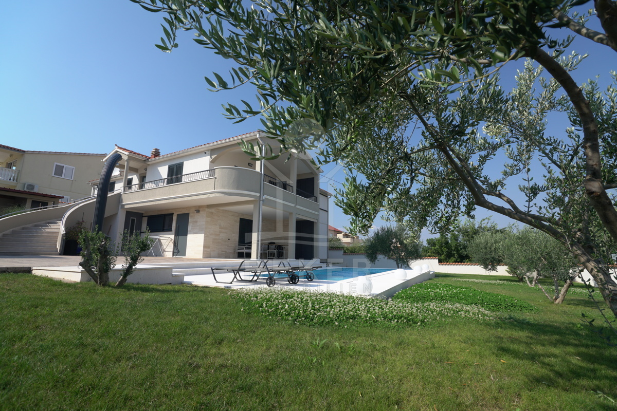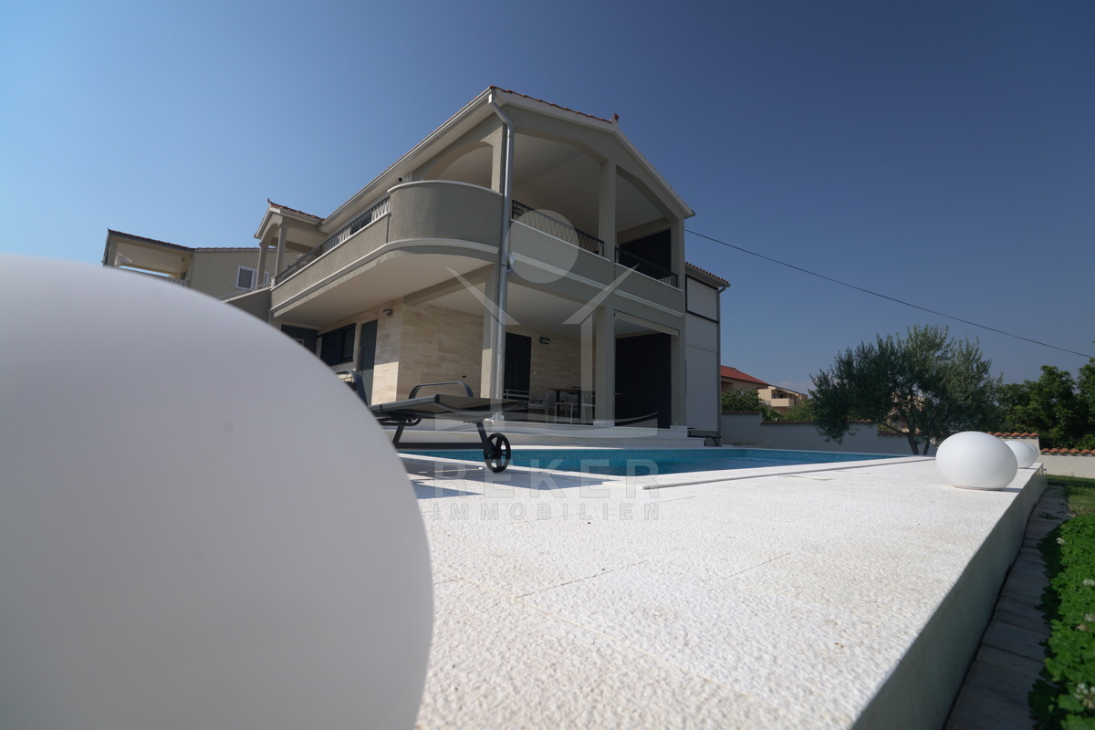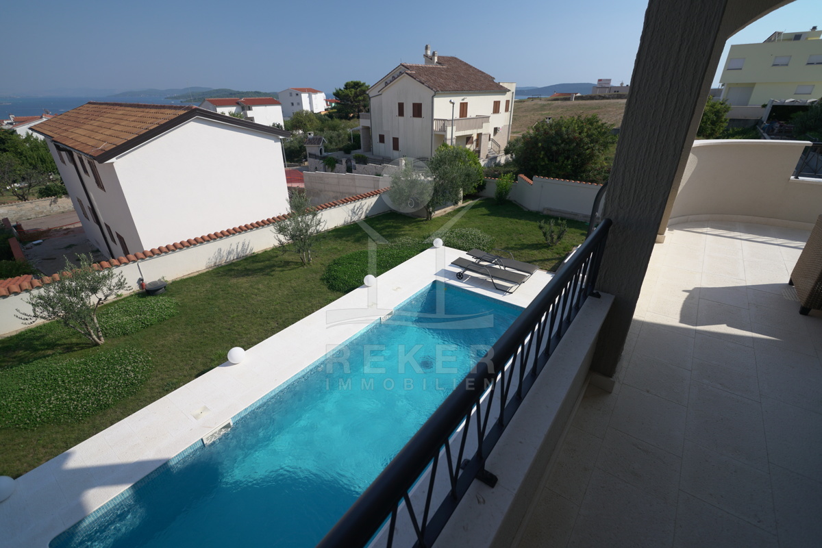 In einer ruhigen Lage in Vodice erwartet Sie diese beeindruckende Villa mit herrlichem Blick auf das Meer. Aufgrund der erhöhten Hanglage bietet die Immobilie einen unvergleichlichen Ausblick, der von den umliegenden Wohngebäuden ungestört ist. Mit einer Entfernung von nur 1 km zum Zentrum von Vodice und nur 800 m zum Meer genießen Sie hier eine perfekte Kombination aus Ruhe und Nähe zum städtischen Leben.