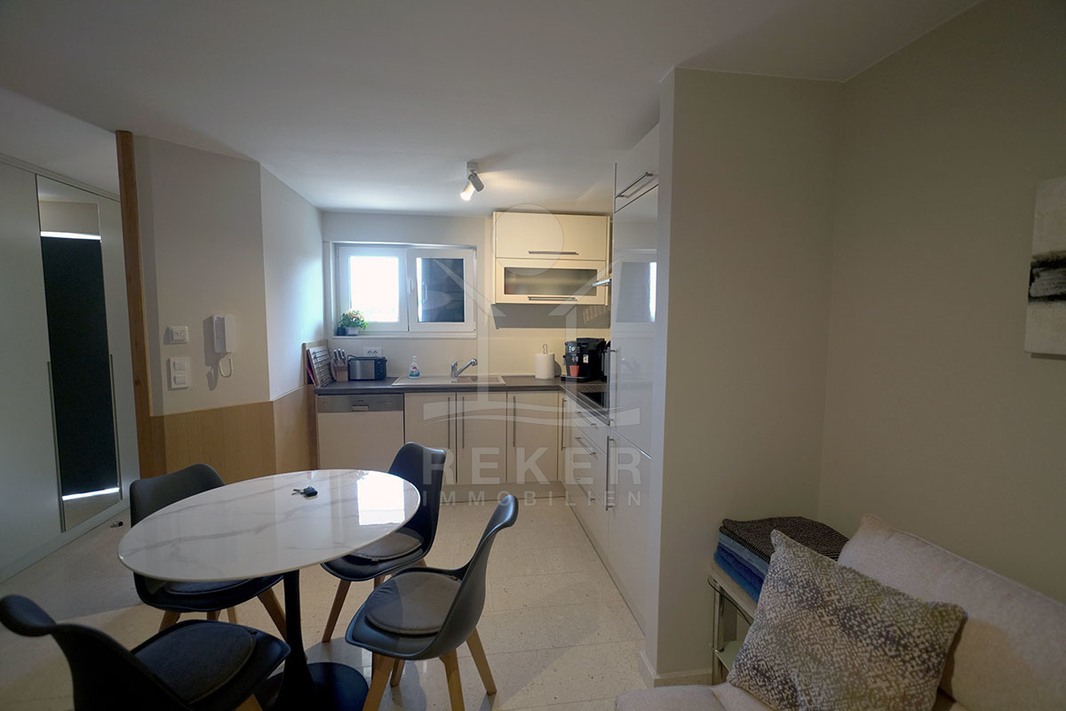 Im Erdgeschoss befindet sich eine Zweizimmerwohnung mit einem Badezimmer. Der separate Eingang ermöglicht einen unabhängigen Zugang zur Wohnung.
