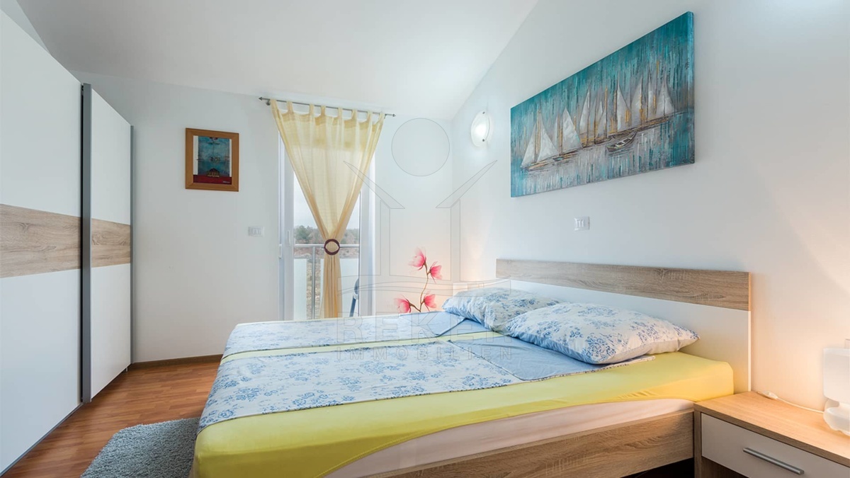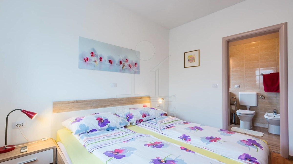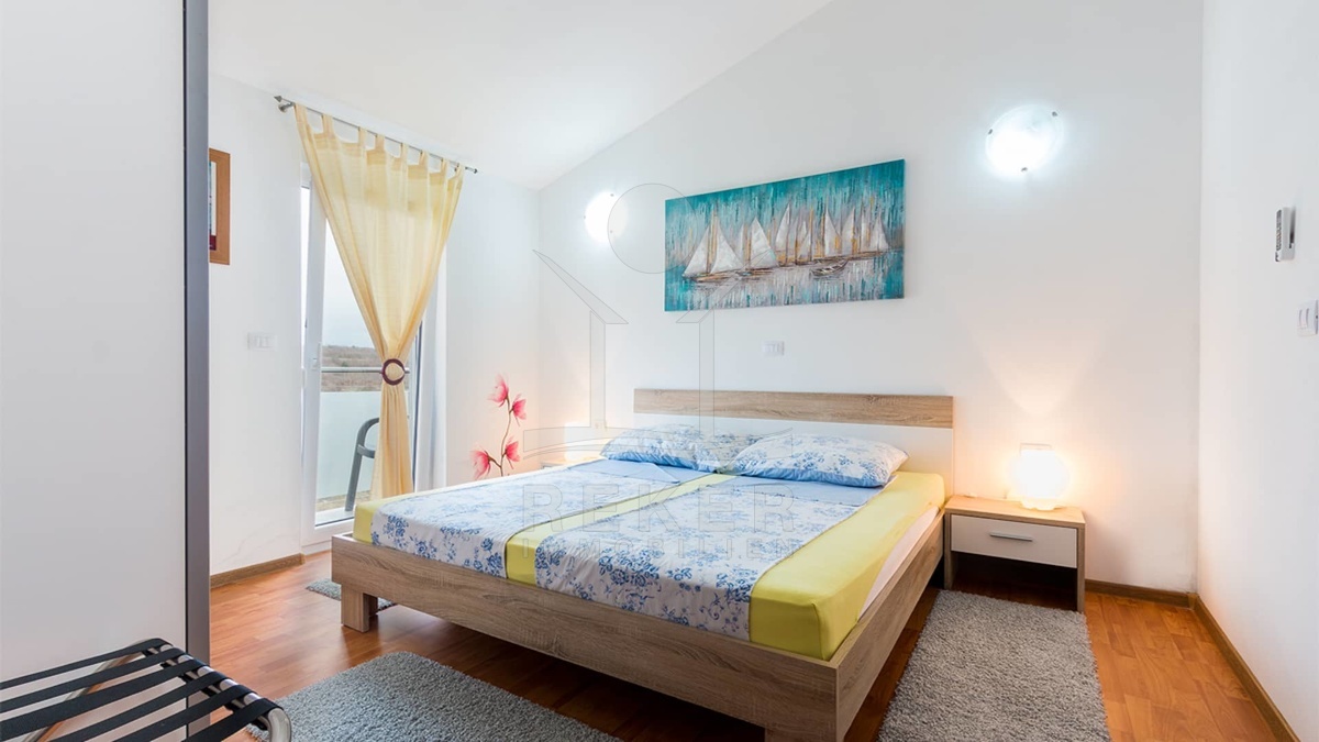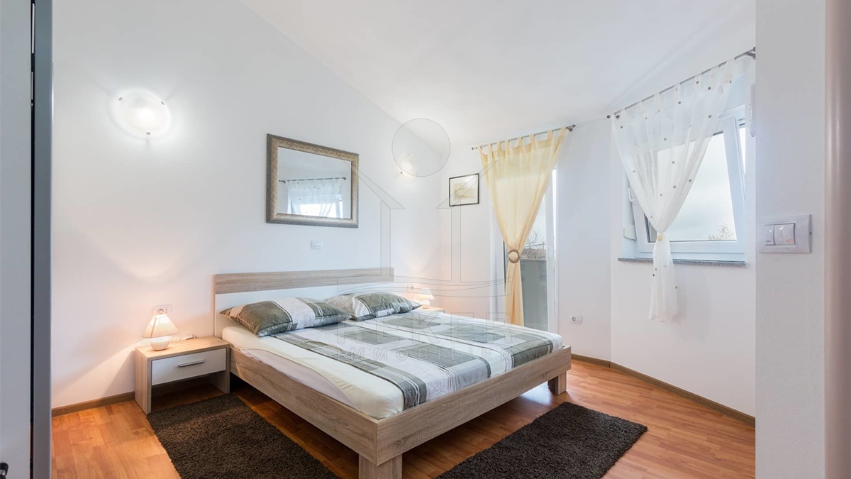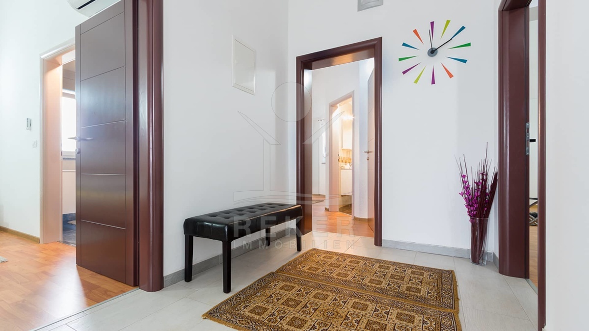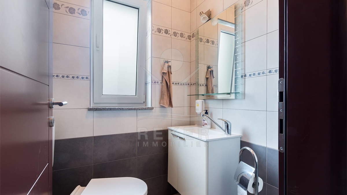 Auf einem etwa 570 m² großen, von einer Mauer umrahmten Grundstück, etwa 4 km außerhalb des Ortszentrums Vodnjans, finden Sie diese 2014 erbaute Luxus-Villa. 3 Autos finden einen Stellplatz im Freien auf dem Hof.