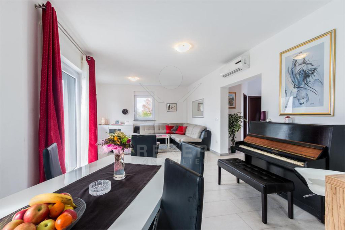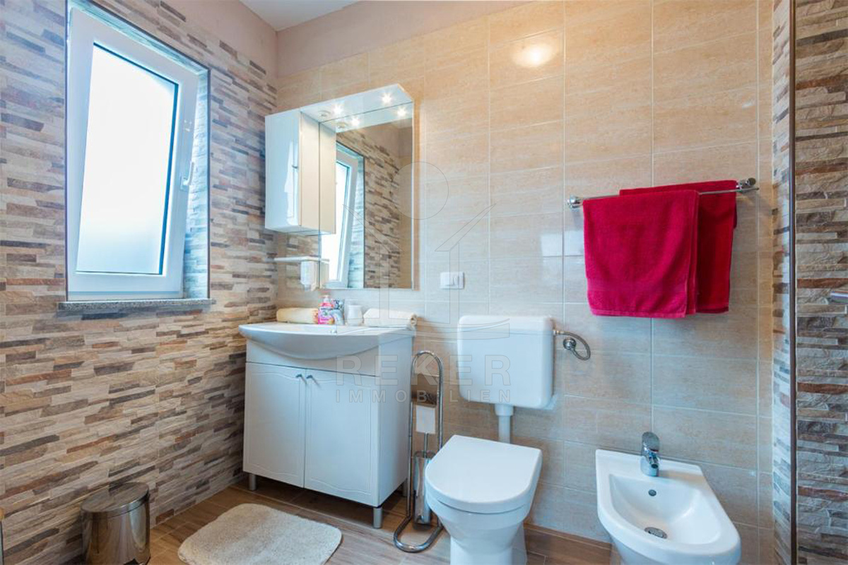 Die wunderschöne Villa in der ländlichen Umgebung von Vodnjan besticht durch ihre ruhige Lage und die Nähe zu den Stränden der kroatischen Riviera, die in nur 6–10 Minuten mit dem Auto erreichbar sind. Die charmante Kleinstadt Vodnjan mit ihrem historischen Kirchturm, der St. Blasius Basilika, dem malerischen Stadtplatz und exquisiten Restaurants bietet Kunst, Kultur und kulinarische Genüsse.