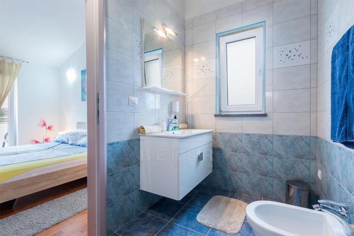 Im Obergeschoss gelangen Sie über eine stilvolle Innentreppe zu drei einladenden Schlafzimmern, die jeweils mit eigenem Bad ausgestattet sind. Jedes Schlafzimmer bietet zudem Zugang zu einem Balkon, von dem aus Sie eine herrliche Aussicht auf die Umgebung und das weite Meer genießen können – der perfekte Ort zum Entspannen und Träumen.