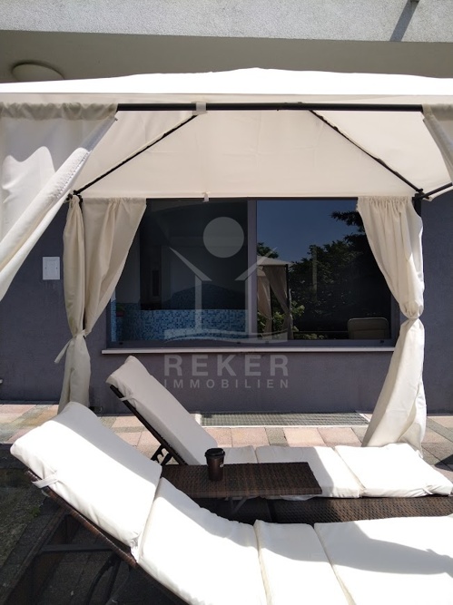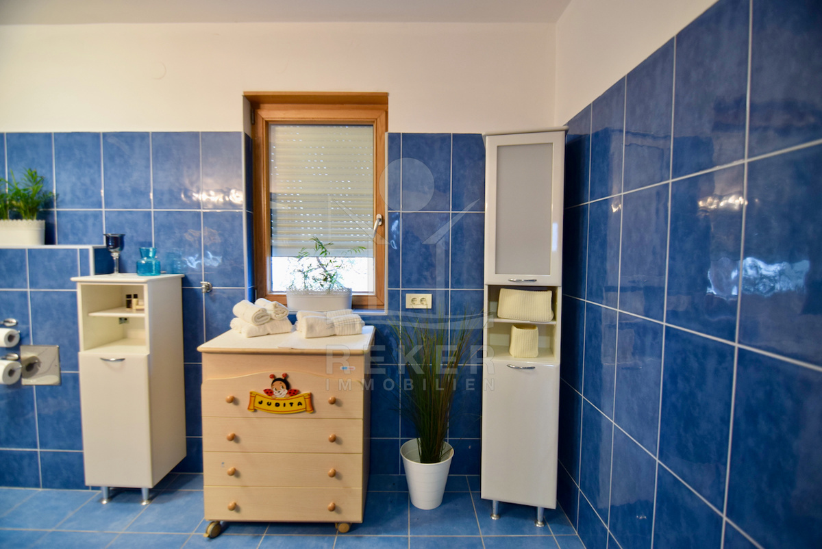 Der unterste Hausteil bietet noch etwas: Technikraum, zusätzliche Toilette und eine voll ausgestattete Sommerküche mit Gartenzugang. Diese Verbindung zwischen Innen und Außen macht das Haus extrem praktisch – gerade im Sommer oder bei Festen mit mehreren Gästen.