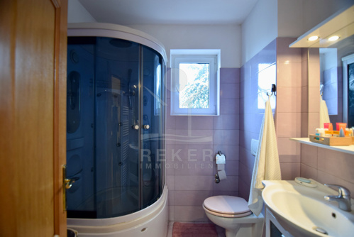 Das Grundstück bietet über 1.100 Quadratmeter Fläche mit Garten und einer einladenden Terrasse mit weitem Ausblick. Die Sommerküche mit direktem Gartenzugang ist vor allem in den warmen Monaten Gold wert. Perfekt für Familienfeste oder entspannte Sommerabende. Und wer mehr vorhat: Im unteren Teil des Grundstücks kann ein weiteres Gebäude entstehen. Ohne die Aussicht oder die Ruhe zu stören. Das Grundstück verfügt über zwei separate Autozufahrten: Oben befinden sich offene Stellplätze für drei bis vier Fahrzeuge, während unten eine geräumige Garage Platz für bis zu drei Autos bietet.