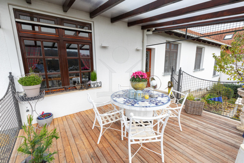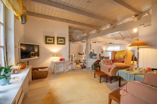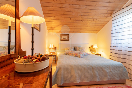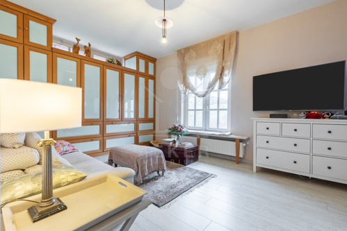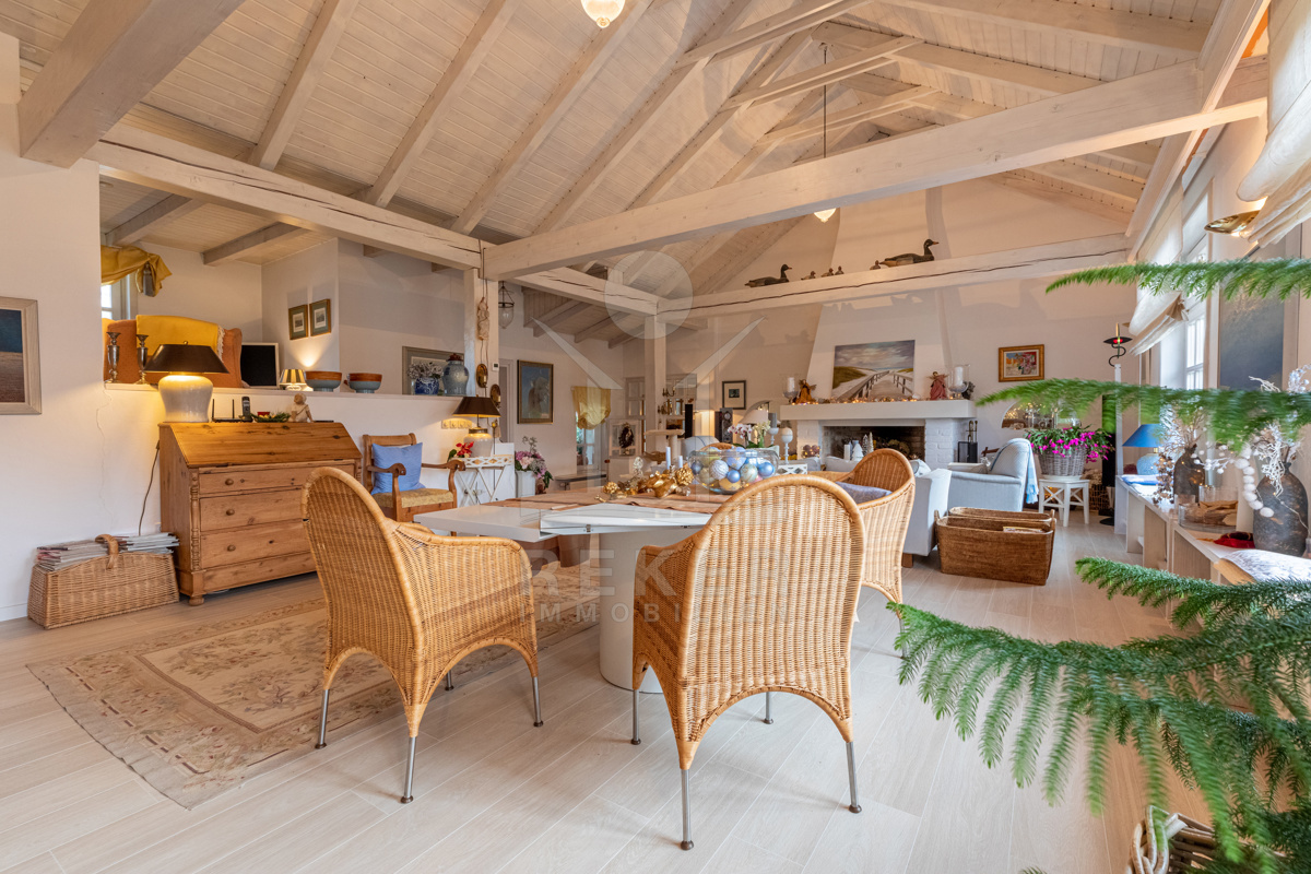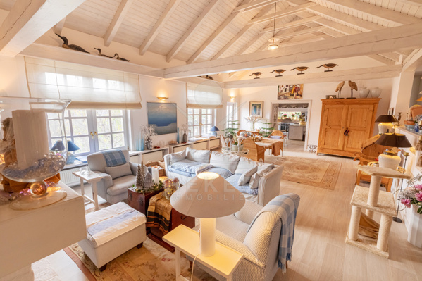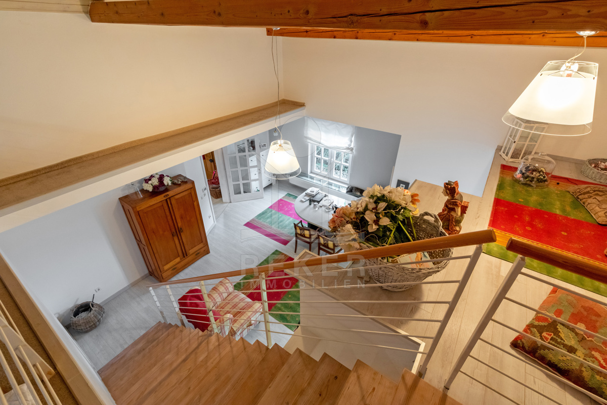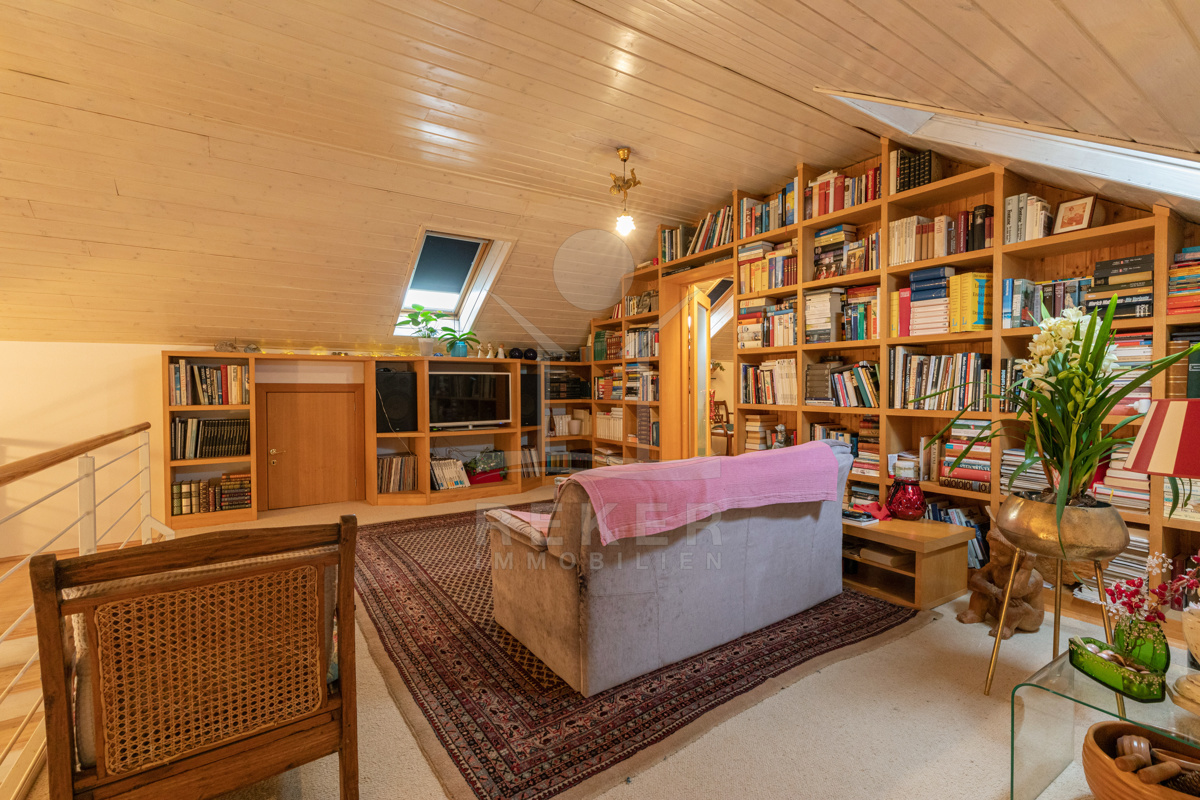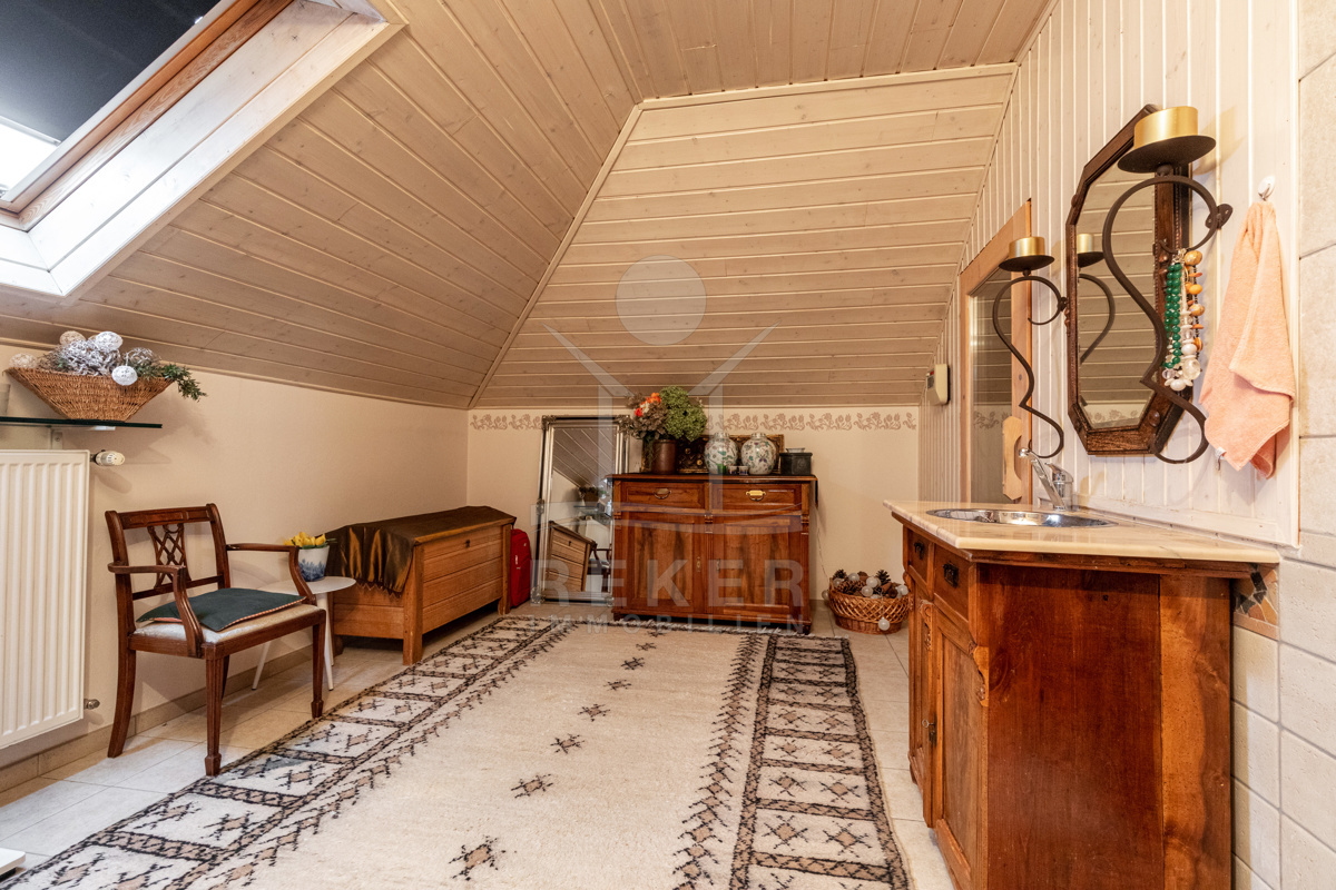 Die beeindruckende Villa erstreckt sich über 3 Etagen auf einem großzügigen Grundstück von 1.676 m². Mit einer Wohnfläche von 616 m², die im Jahr 2001 im eleganten Landhausstil errichtet wurde, vermittelt sie ein Gefühl von Wärme und Eleganz. Die hohen Decken mit Balken, der einladende Kamin und das schöne Ambiente sorgen für ein behagliches Wohngefühl.