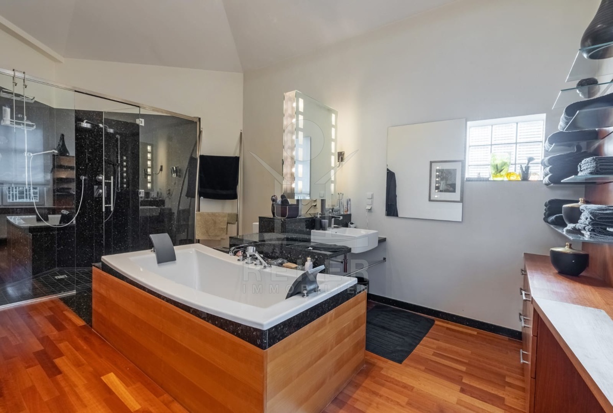 Diese luxuriöse Immobilie wird vollständig möbliert verkauft und verfügt über eine Klimaanlage für höchsten Komfort. Das Haus bietet Ihnen im Erdgeschoss eine Vielzahl von Annehmlichkeiten, darunter eine Vinothek, Weinkeller, eine Sauna, ein Heimkino, ein Fitnessstudio und vieles mehr, einschließlich eines Jacuzzis auf der 24,80 m² großen Terrasse.