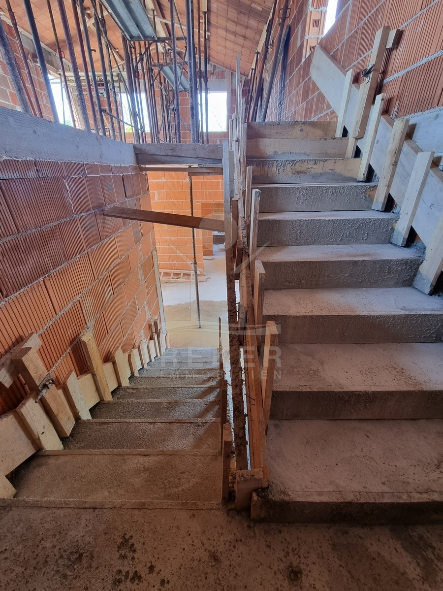Diese eindrucksvolle Villa erstreckt sich über zwei Etagen und bietet eine großzügige Wohnfläche von 180 m² auf einem fast 1000 m² großen Grundstück. Der weitläufige Garten bietet nicht nur Platz für Entspannung und Freizeitaktivitäten, sondern auch einen Parkplatz für mehrere Fahrzeuge. Die moderne Planung und Ausstattung des Hauses sorgen für zeitgemäßen Komfort: Die Raumheizung und Trinkwasseraufbereitung nutzen ein zentrales System, das aus einer Wärmepumpe und Sonnenkollektoren besteht, während eine offene Feuerstelle im Wohnzimmer zusätzliche Gemütlichkeit ausstrahlt. Fußbodenheizungen in den Bädern garantieren wohlige Wärme.