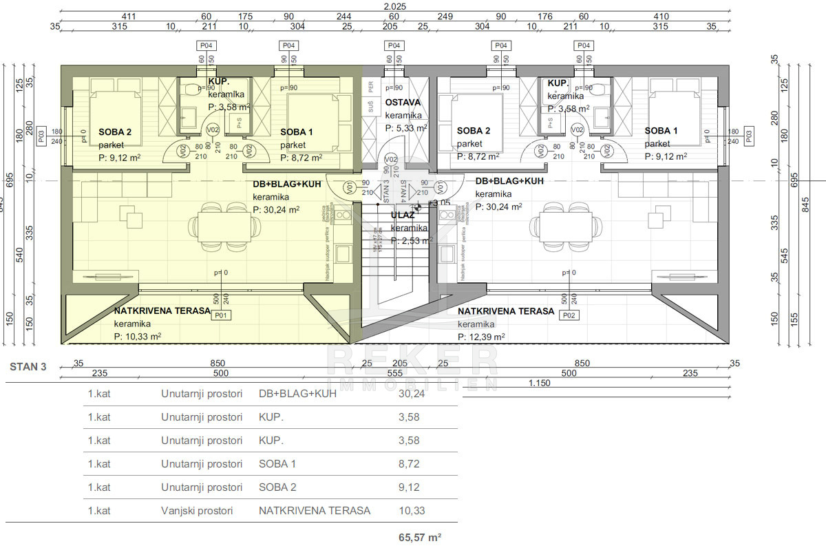 Inmitten einer sanften Hügellandschaft erhebt sich dieser moderne Neubau mit insgesamt 4 Wohnungen auf 2 Etagen. Die 3-Zimmer-Neubauwohnung im 1. Stock beeindruckt mit hochwertigen Materialien wie keramischen Bodenbelägen, modernen Sanitäranlagen und energieeffizienter Raumklimatisierung. Mit 62 m² Wohnfläche bietet die Wohnung viel Raum und ist mit eingebauter PVC-Zimmerei, elektrischen Jalousien und einbruchsicheren Türen ausgestattet. Zwei Parkplätze sorgen für zusätzlichen Komfort und Bequemlichkeit.