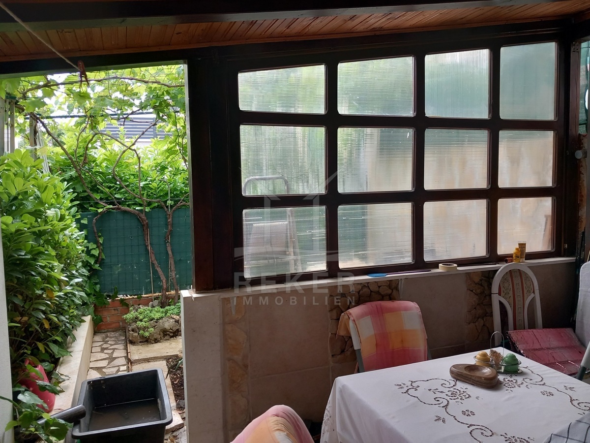 Im Außenbereich wartet ein kleines, grünes Paradies: 68 m² Garten, eingefasst von dichtem Grün. Die überdachte Sommerküche mit Kamin ist das Highlight – voll ausgestattet mit Kühlschrank, Spüle, Herd und gemütlichem Essplatz. Ein geschützter Rückzugsort, ideal für entspannte Abende oder das Mittagessen im Schatten. Die zusätzliche überdachte Terrasse vor dem Eingang bringt weitere Sitzfläche und trockenen Raum auch bei leichtem Regen.