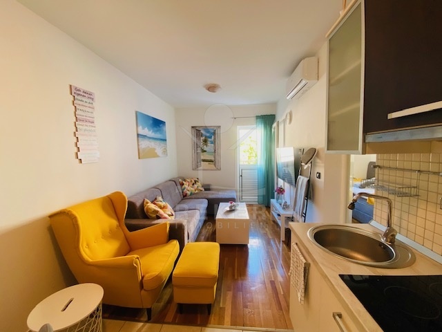 Die Immobilie ist mit einer Klimaanlage ausgestattet, die für angenehme Temperaturen sorgt. Die offene Raumaufteilung bietet einen Wohnraum mit Küche und Essbereich, ein gemütliches Schlafzimmer und ein Badezimmer. Das Apartment befindet sich im ersten Stock eines Gebäudes mit insgesamt neun Wohnungen. Genießen Sie den Komfort dieses klimatisierten Apartments und fühlen Sie sich wie zu Hause.