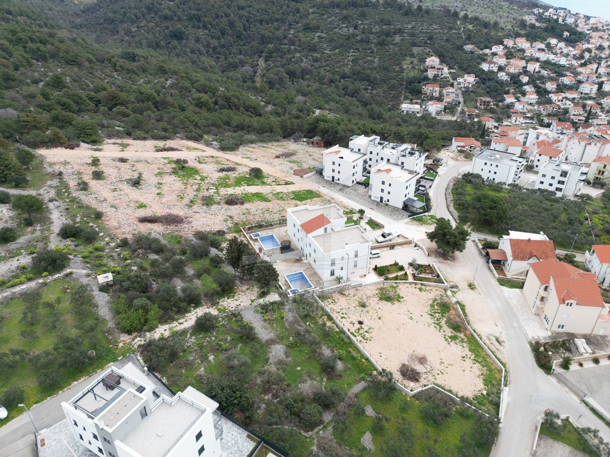 Auf der Insel Čiovo, nicht weit von Trogir, steht dieses moderne Wohnhaus, umgeben von neuen Wohnhäusern. Eine typische dalmatinische Mischung: grüne Landschaft, Meernähe und alles Wichtige für den Alltag gleich um die Ecke. Die Hanglage bringt zwei Vorteile: Privatsphäre und einen weiten Blick bis zur Küste. Weitblick inklusive. Strände, Spazierwege und Freizeitmöglichkeiten? Erreichen Sie alles bequem in ein paar Minuten.
