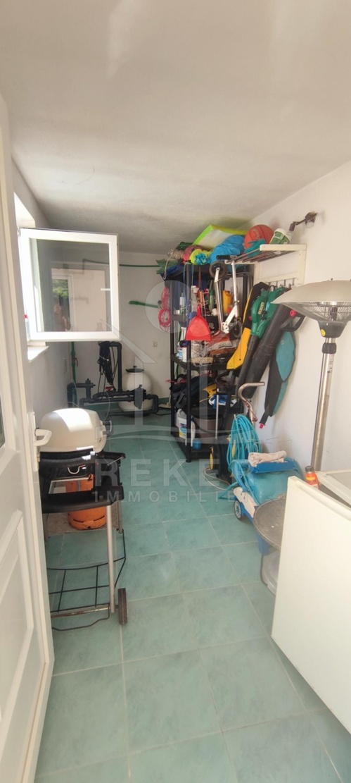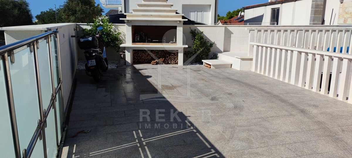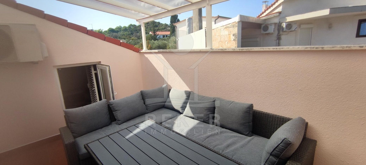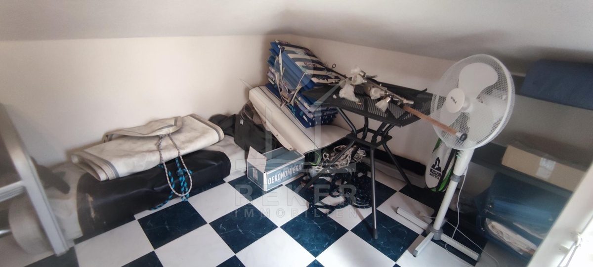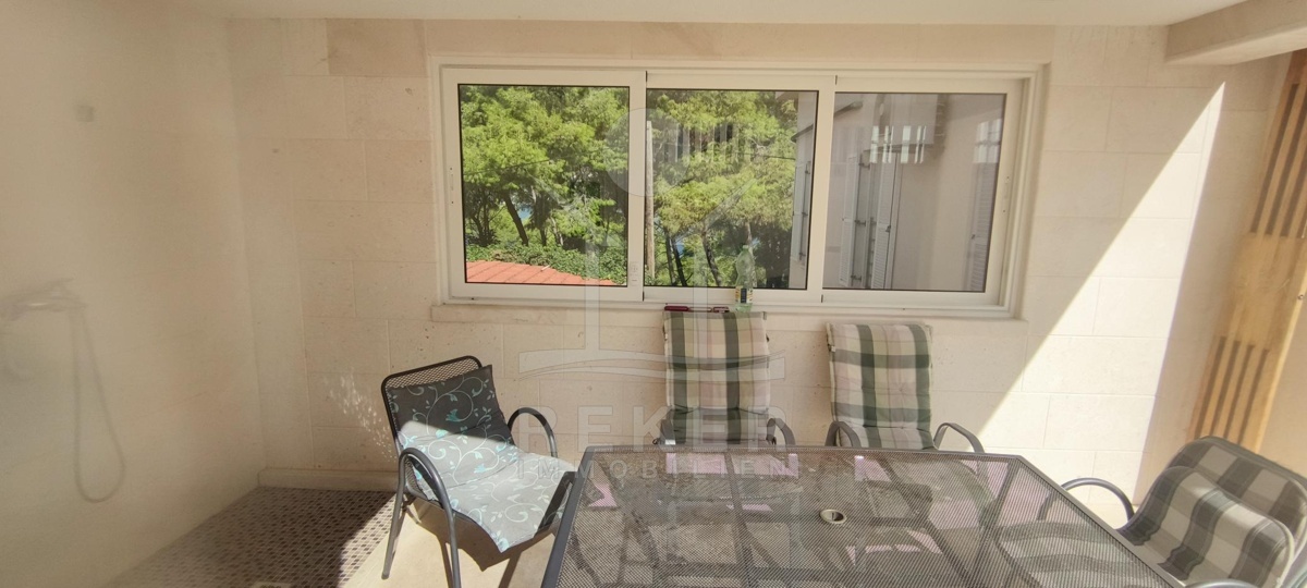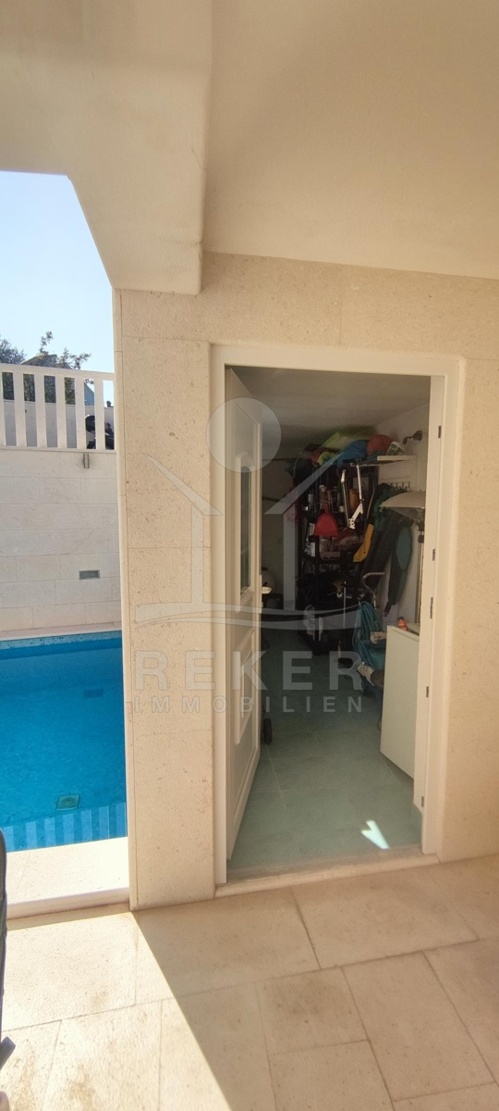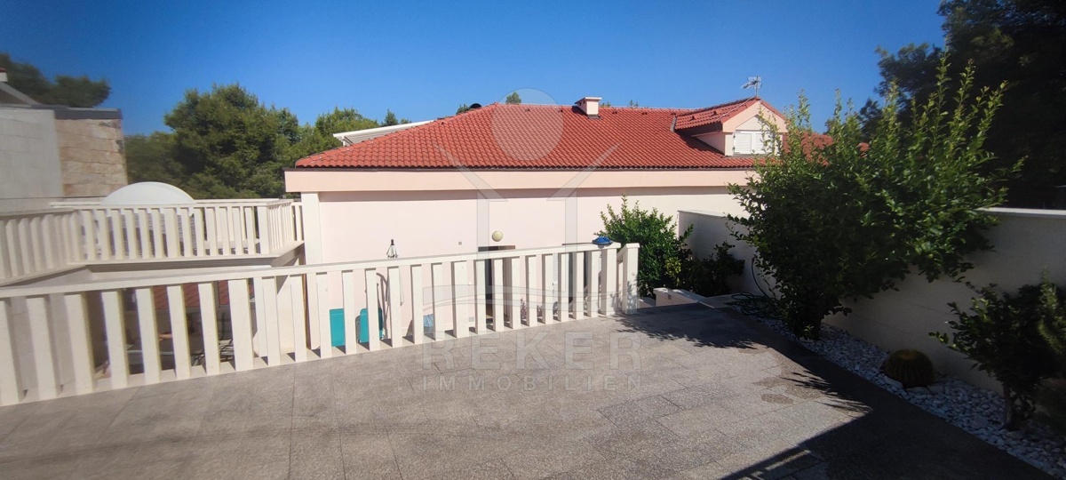 Diese Immobilie auf der Insel Čiovo bei Trogir bietet Ihnen eine ruhige Umgebung direkt am Wald und in erster Baureihe zum Meer. Die Küste erreichen Sie nach nur 125 m. Zwischen Haus und Meer stehen Bäume. Der Meerblick ist eingeschränkt. Dafür genießen Sie viel Ruhe und eine grüne Umgebung. Besonders angenehm für alle, die Abstand zum Alltag suchen.