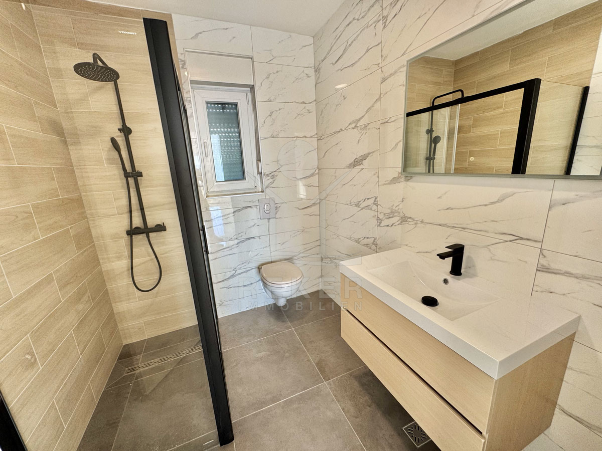Der attraktive Neubau in Crikvenica liegt nur 150 Meter vom glasklaren Meer entfernt, wo Sie direkten Zugang zur einladenden Strandpromenade haben. Der Standort überzeugt nicht nur durch die Nähe zum Wasser, sondern auch durch die hervorragende Infrastruktur. In der Umgebung finden Sie zahlreiche Lebensmittelgeschäfte, Restaurants, Kindergärten und Schulen, alles bequem fußläufig erreichbar. Crikvenica, ein beliebter Urlaubsort an der Kvarner Bucht, ist berühmt für seine 8 km lange Riviera, die mit traumhaften Stränden und einer Vielzahl von Freizeitmöglichkeiten aufwartet. Der ausgezeichnete Sandstrand "Gradska Kupaliste", gekrönt mit der "Blauen Flagge", ist ein absolutes Highlight für Familien und Badeurlauber. Hier erwartet Sie eine gelungene Mischung aus Erholung und Unterhaltung, mit einer kinderfreundlichen Umgebung, die ideal für Urlaub mit der Familie ist. Abends können Sie die mediterrane Küche in den vielen Restaurants und Konobas genießen oder einen romantischen Spaziergang entlang der palmenbestandenen Uferpromenade unternehmen. Das pulsierende Nachtleben rund um den Platz Stjepana Radica sorgt dafür, dass es in Crikvenica nie an Abwechslung fehlt. Erleben Sie die perfekte Kombination aus modernem Wohnkomfort und der einmaligen Schönheit der kroatischen Küste!