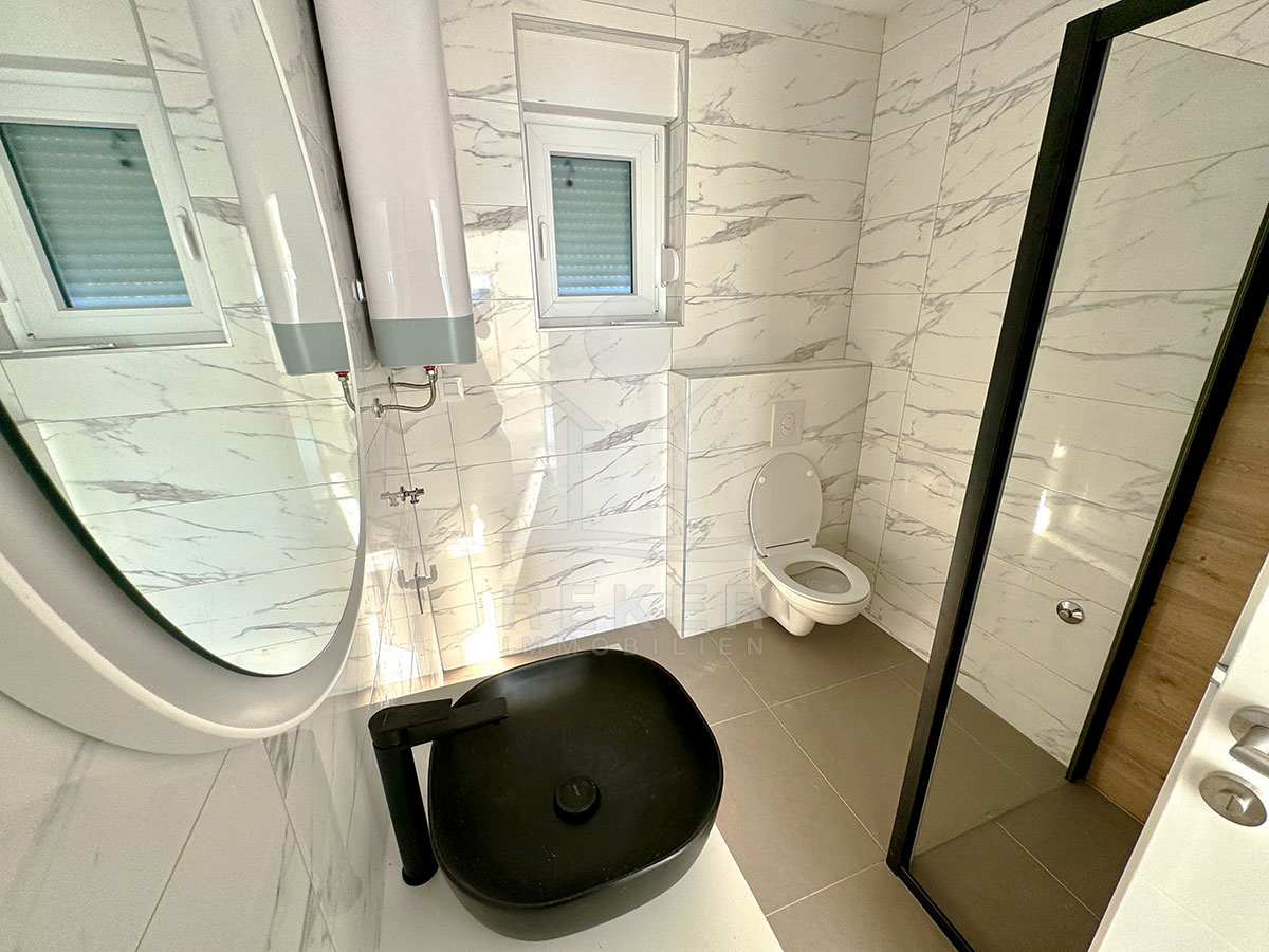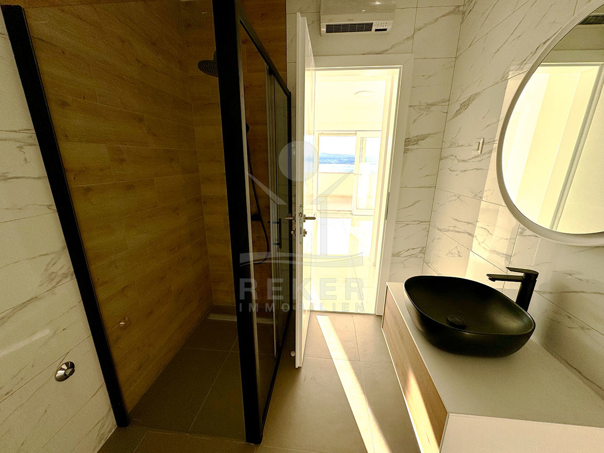 Die neu erbaute Wohnung bietet eine exzellente urbanen Lage in Crikvenica. Nur 400 Meter vom Meer, dem Strand und der Promenade entfernt, eröffnet sich Ihnen hier die Möglichkeit, das mediterrane Lebensgefühl in vollen Zügen zu genießen. In unmittelbarer Nähe finden Sie alles, was Sie für Ihren täglichen Bedarf benötigen, wie Geschäfte, Kindergarten, Park, Sportzentrum und einen Spielplatz. Auch eine gute Anbindung an öffentliche Verkehrsmittel ist gegeben. Egal ob Sie die Strände erkunden, spazieren gehen oder die lokalen Annehmlichkeiten nutzen möchten - all das ist von dieser zentralen Lage aus leicht zu erreichen.