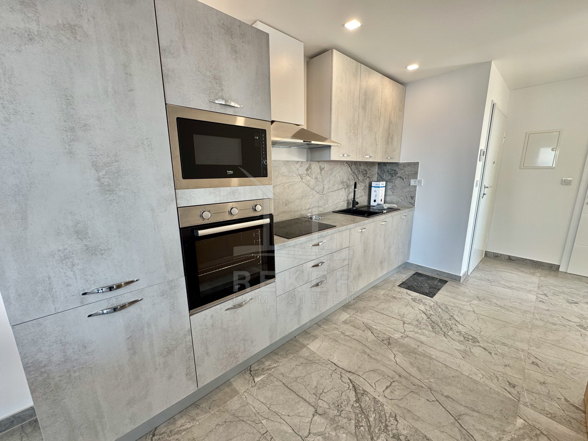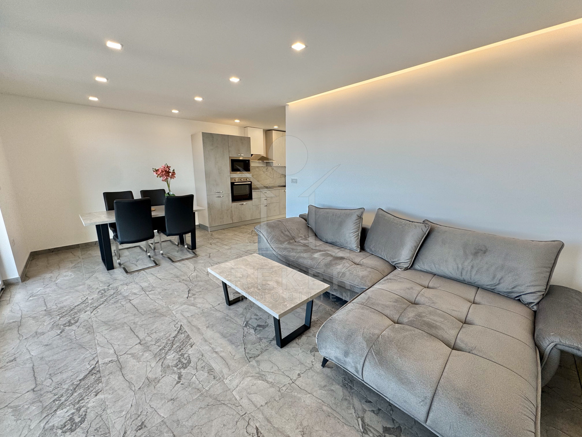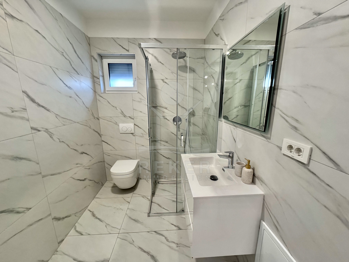 Crikvenica. Ruhig gelegen, aber mit allem in Reichweite. Die Wohnung liegt im ersten Stock eines modernen Mehrfamilienhauses. Kindergarten, Schule, Supermarkt, Spielplatz, Sporthalle – alles ist da. Zwei eigene Parkplätze sind inklusive.