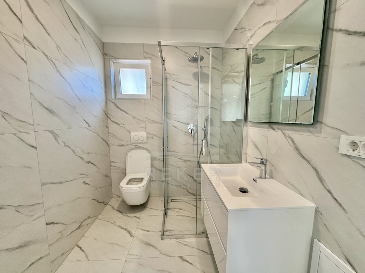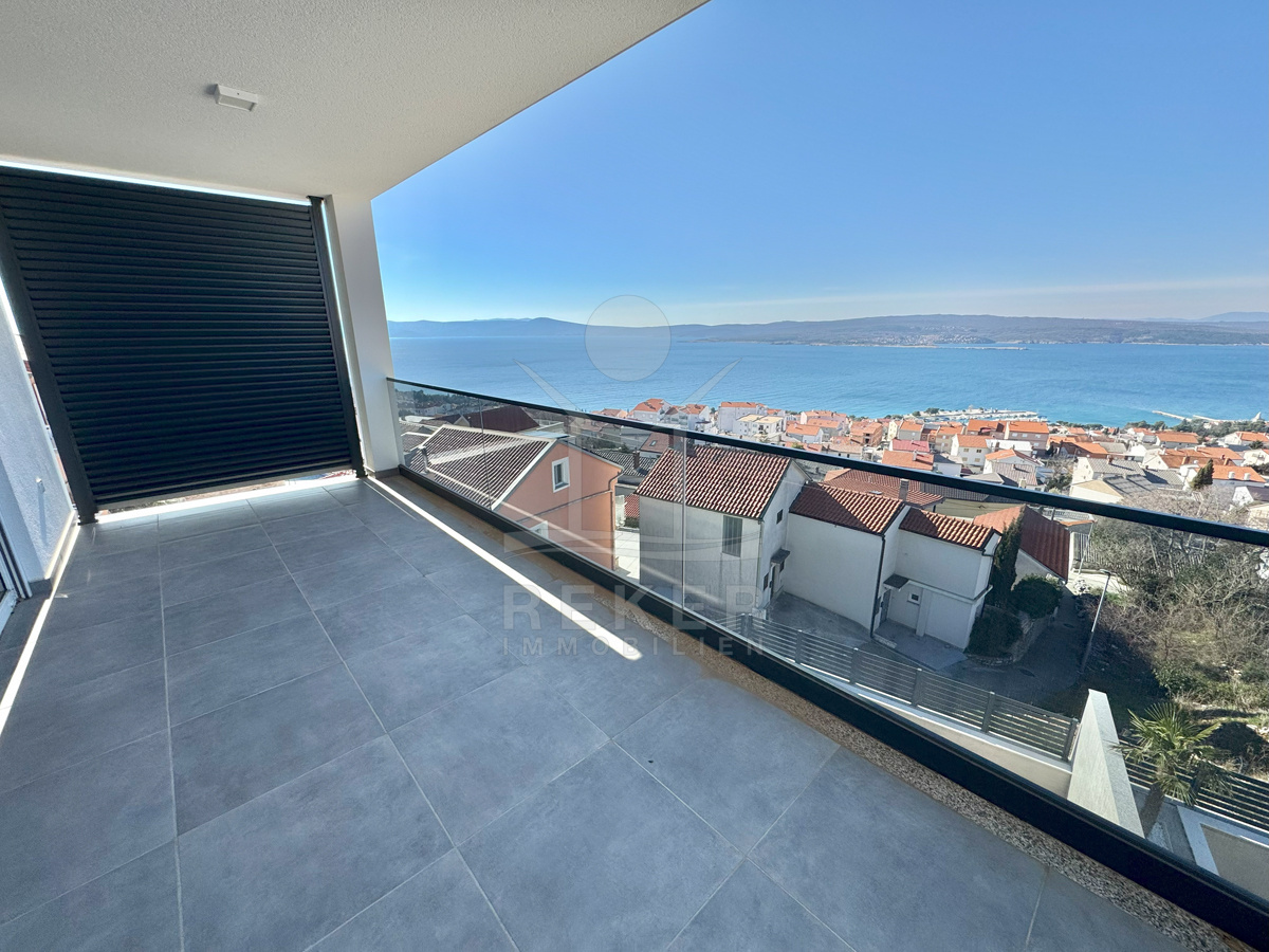 Die Wohnung liegt im 2. Stock eines Gebäudes, das 2024 fertiggestellt wurde. Die 15 m² große Terrasse ist ein echtes Highlight. Von hier genießen Sie einen Panoramablick auf das Meer und die Insel Krk. Ein Platz, der zum Entspannen und Verweilen einlädt.