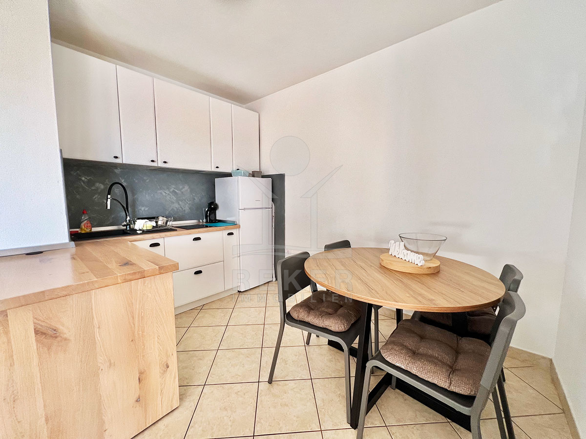 Die 56 m² große Wohnung verfügt über eine Eingangsbereich, ein offenes Wohnzimmer mit Küche und Esszimmer. Von hier aus gelangen Sie auf die großzügige Loggia mit 8 m², von der aus Sie einen atemberaubenden Blick auf das Meer genießen können. Die Wohnung ist mit Klimaanlage ausgestattet und wird möbliert verkauft.