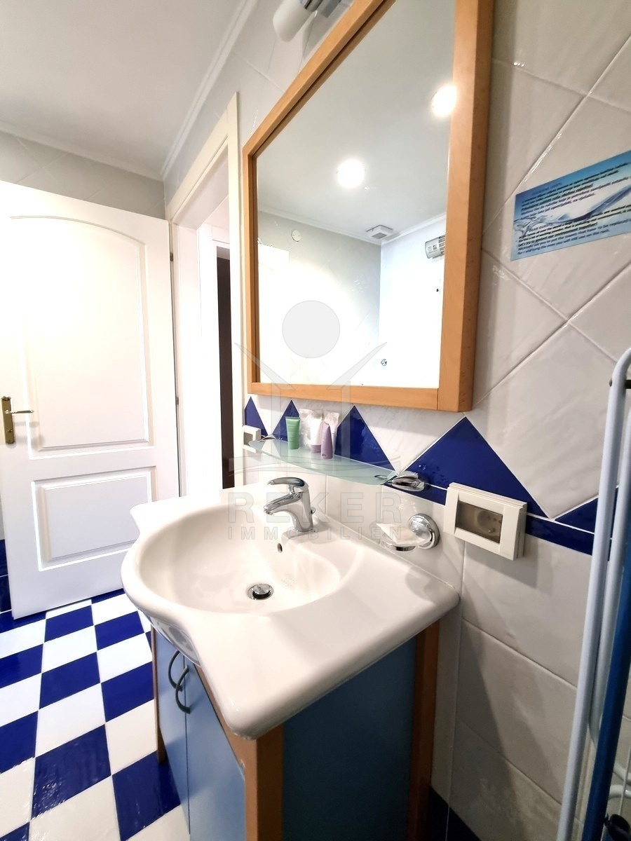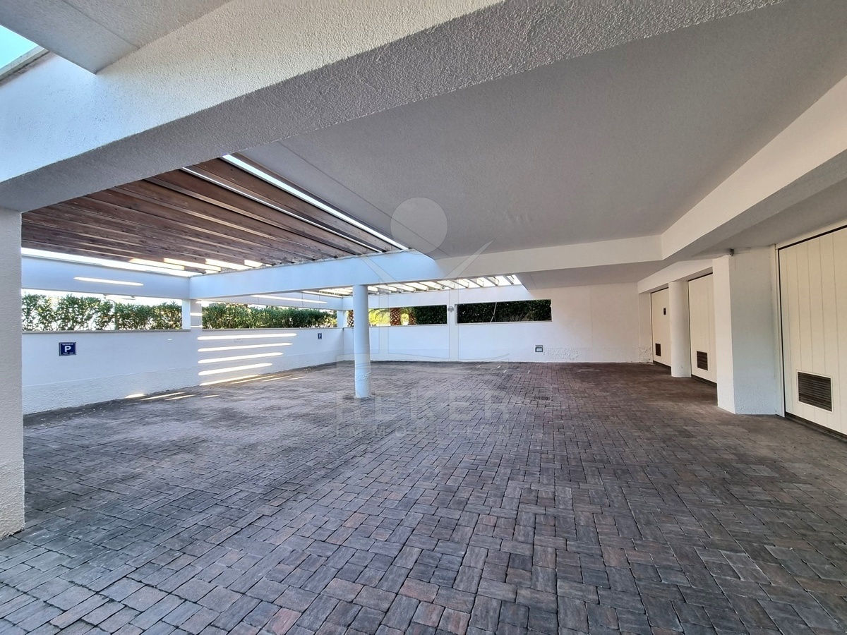 Die Wohnung liegt im Hochparterre eines Gebäudes aus dem Jahr 2005, das regelmäßig instandgehalten wird und über einen Aufzug verfügt. Zwei großzügige Terrassen schaffen viel Platz im Freien. Die überdachte Terrasse misst 27,75 m², die zweite 10,77 m². Von beiden genießen Sie einen herrlichen Blick auf das Meer. Ein Ort für entspannte Stunden.