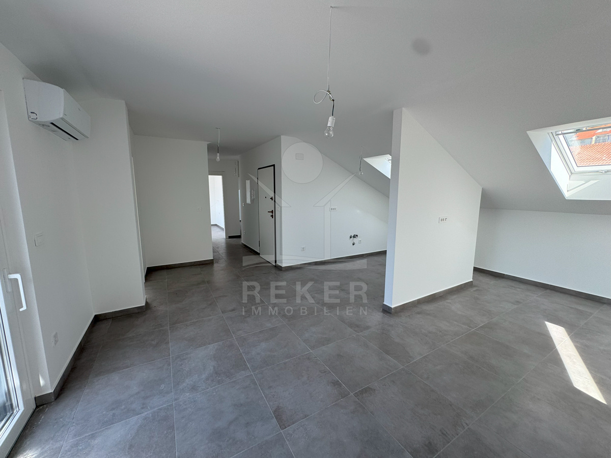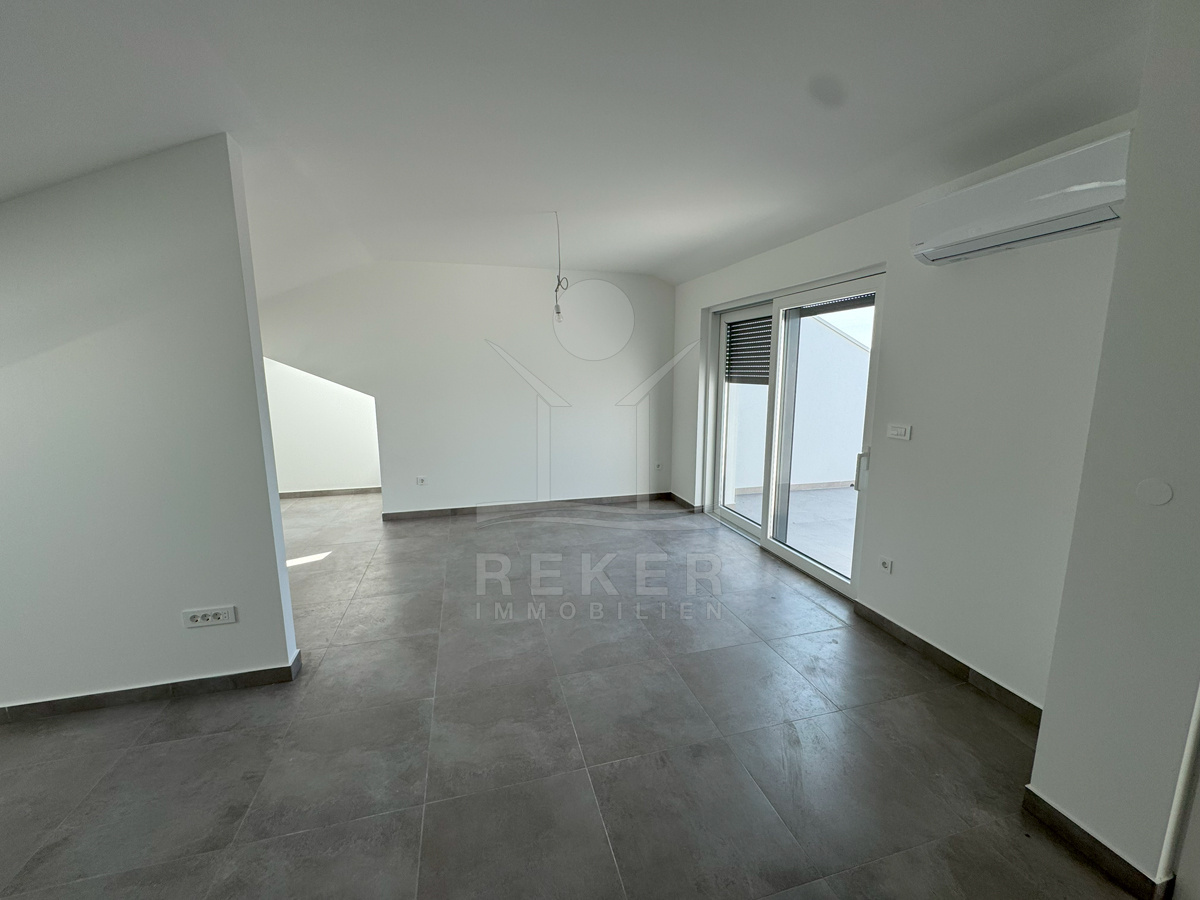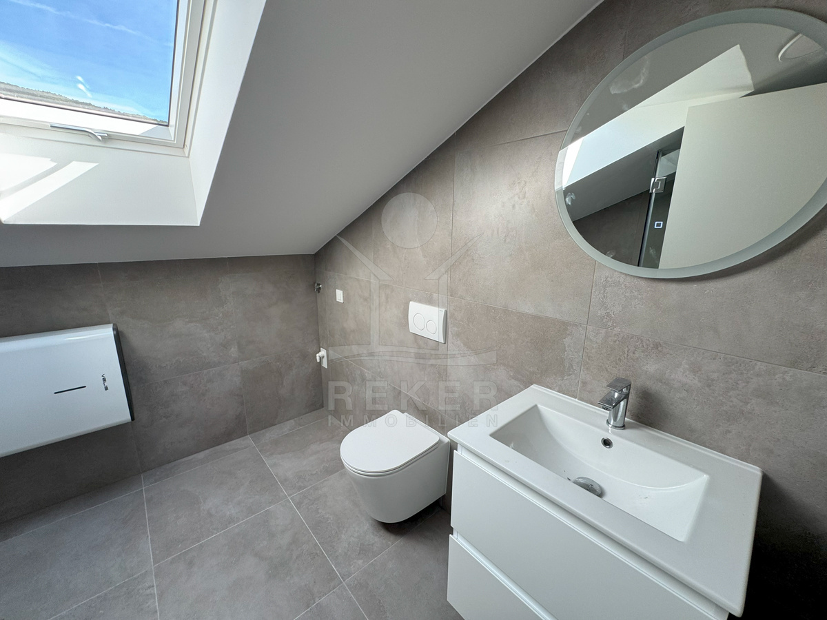 In Dramlje, nur wenige Schritte vom Meer entfernt, wartet ein Penthouse, das die gesamte dritte Etage eines modernen Neubaus umfasst. Hier genießen Sie Privatsphäre und Komfort. Ein eigener Stellplatz im Garten gehört ebenfalls dazu.