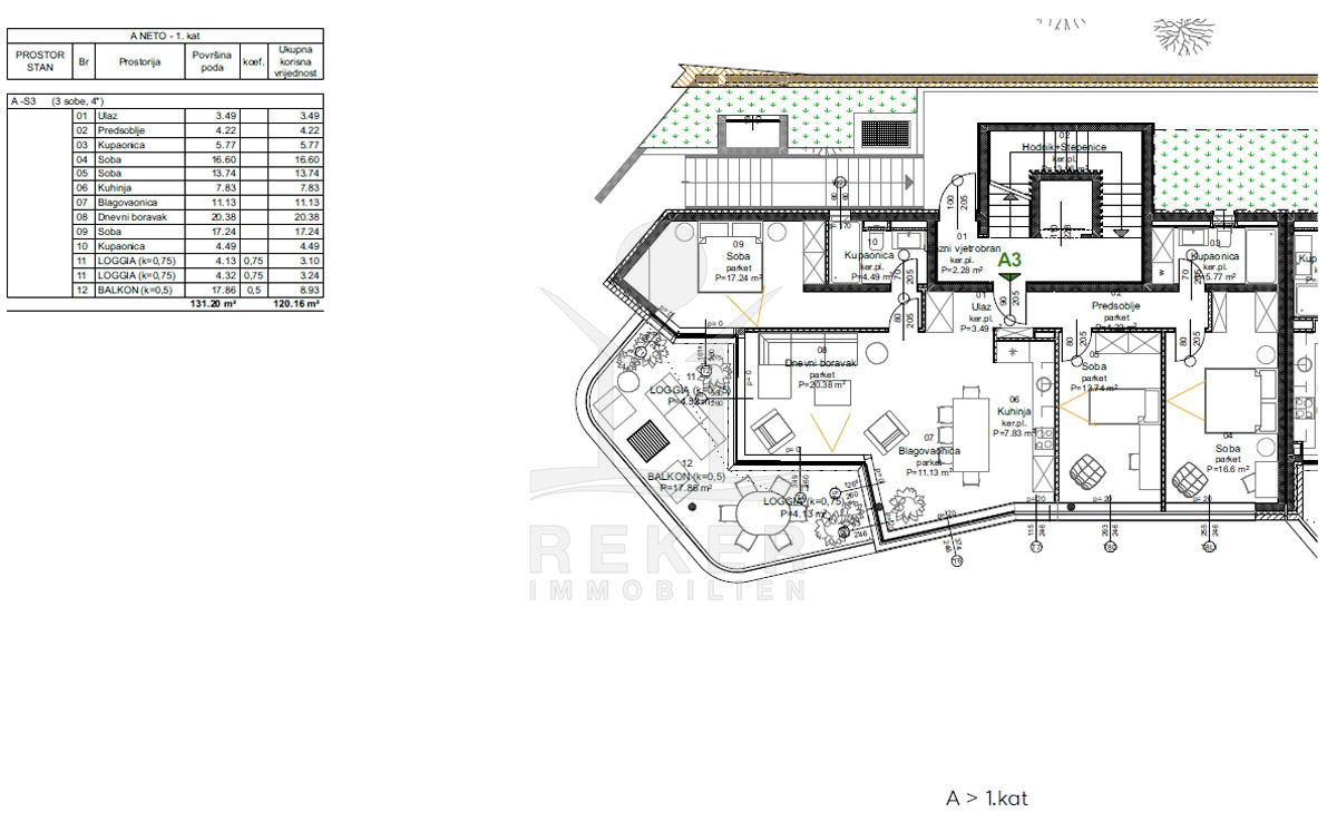 Die Neubauwohnung erstreckt sich über 120,16 m² Wohnfläche und bietet einen einladenden Eingang sowie einen hellen Flur. Die Wohnung umfasst zwei stilvolle Badezimmer, die modernen Komfort garantieren, und 3 großzügige Schlafzimmer, die ausreichend Platz für Ruhe und Erholung bieten. Der offene Wohn-, Ess- und Küchenbereich ermöglicht eine harmonische Verbindung von Lebensräumen. Zu den Höhepunkten der Wohnung gehören die zugänglichen Außenbereiche, die aus einer Loggia und einem großzügigen Balkon von 26 m² bestehen. Diese laden dazu ein, die frische Luft und die schönen Ausblicke in Ihrem persönlichen Freiraum zu genießen.