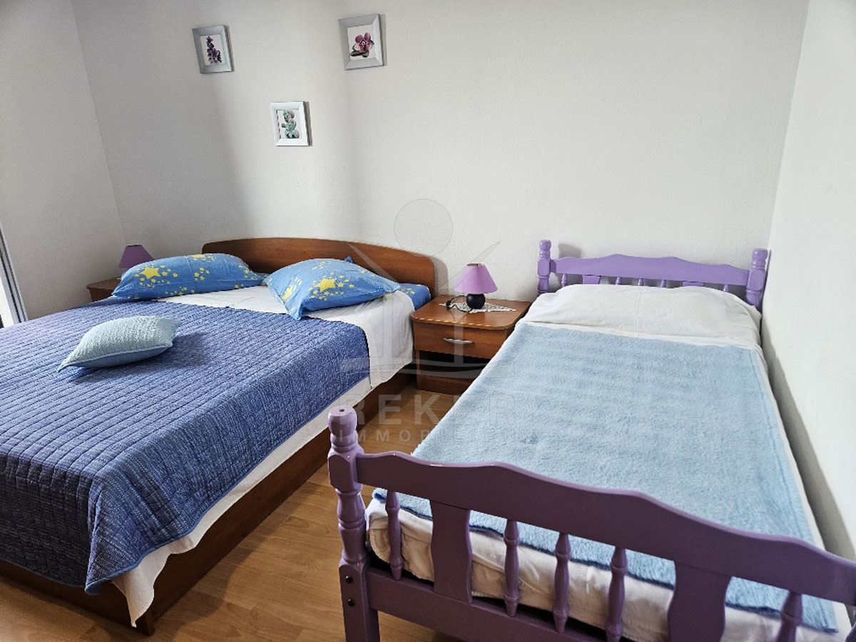 Die großzügige Wohnung spannt sich über 117 m² und bietet ein ideales Zuhause für Familien oder Entdecker. Sie umfasst 4 Schlafzimmer und 3 Badezimmer, die viel Platz für Erholung und Privatsphäre bieten, sowie einen einladenden Flur, der den Raum miteinander verbindet. Zwei separate Küchen mit dazugehörigen Esszimmern ermöglichen gesellige Zusammenkünfte und ein entspanntes Kochen. Jedes Familienmitglied oder Gast kann sich in diesen einladenden Räumen wohlfühlen und kulinarische Köstlichkeiten genießen. Die große Terrasse bietet einen atemberaubenden Blick auf das offene Meer und ist ideal für entspannte Abende oder gesellige Grillpartys. Hier erleben Sie die Schönheit der Natur in vollen Zügen. Mit 3 verfügbaren Parkplätzen ist die Anreise mit dem Auto unkompliziert und praktisch.