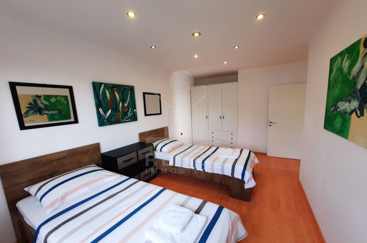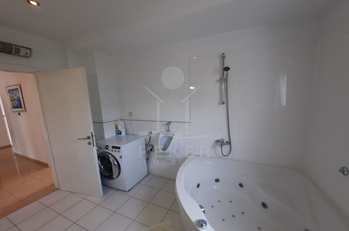 Das geräumige Objekt befindet sich in einem Wohngebäude im zweiten Stock und verfügt über ein zusätzliches Apartment, das als Studio genutzt werden kann. Diese luxuriöse Immobilie bietet nicht nur einen herrlichen Blick auf das Meer, sondern auch einen mediterran angelegten Garten, in dem Sie die Zeit im Freien genießen können. Ein Steingrill steht Ihnen für gesellige Abende zur Verfügung. Zwei überdachte Parkplätze sind vorhanden.