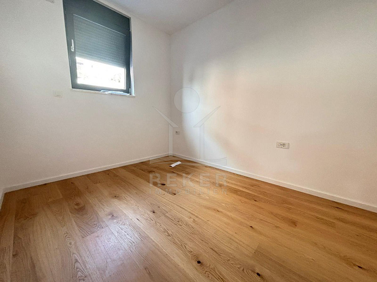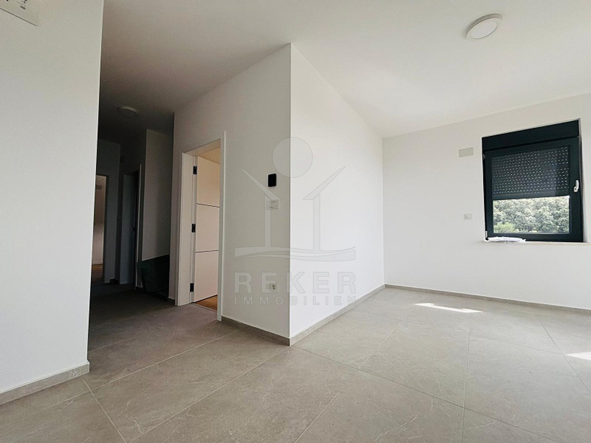 Das Haus ist frisch fertiggestellt und umfasst nur fünf Wohnungen auf drei Etagen. Die Architektur setzt auf klare Linien und moderne Formen: warme Naturtöne, Flachdach, großzügige Terrassen. Vor dem Eingang gibt es markierte Parkplätze. Auf der Rückseite wurde das Grundstück terrassiert und gestaltet mit jungen Bäumen, mediterranen Sträuchern und hellen Steinen. Dank der Hanglage genießen Sie schöne Ausblicke und viel Tageslicht. Der Zugang erfolgt bequem über das zentrale Treppenhaus. Alles ist neu, unbewohnt und bereit für den Erstbezug 2025.