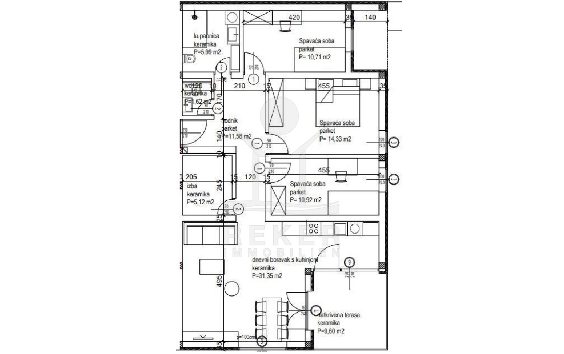 Das beeindruckende Apartment bietet Ihnen eine großzügige Wohnfläche von 101 m² in einem stilvollen Gebäude, das insgesamt 8 hochwertige Wohnungen beinhaltet, verteilt auf 2 Etagen. Die erstklassigen Ausstattungsdetails, wie die Fußbodenheizung in den Badezimmern und die eleganten italienischen Keramikfliesen, schaffen ein luxuriöses Wohnambiente. Die modernen Wohnräume sind mit pflegeleichtem Vinylboden ausgestattet, der eine perfekte Kombination aus Funktionalität und Stil bietet. Mit einer isolierenden Fassadenstärke von 10 cm profitieren Sie sowohl von einer hohen Energieeffizienz als auch von einem ausgezeichneten Wohnkomfort. Der geplante Fertigstellungstermin im ersten Quartal 2025 ermöglicht Ihnen einen schnellen Einzug in dieses moderne Zuhause. Zusätzlich verfügt jede Wohnung über 2 Stellplätze.