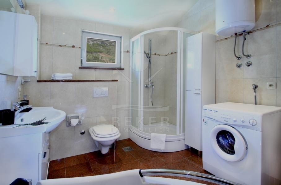 Das Apartment liegt im 2. Stock einer wunderschönen Villa mit insgesamt 6 Apartments. Das Anwesen liegt am Hang und bietet eine herrliche südliche Ausrichtung. Die umgebende Villa ist von einem mediterran gestalteten Gabionenzaun umrandet und von Pinienbäumen und Olivenzweigen am Biokovo-Gebirge umgeben. Die Wohnung besticht durch ihre malerische Lage und die atemberaubende Aussicht. Ein Garagenplatz ist im Preis inbegriffen.