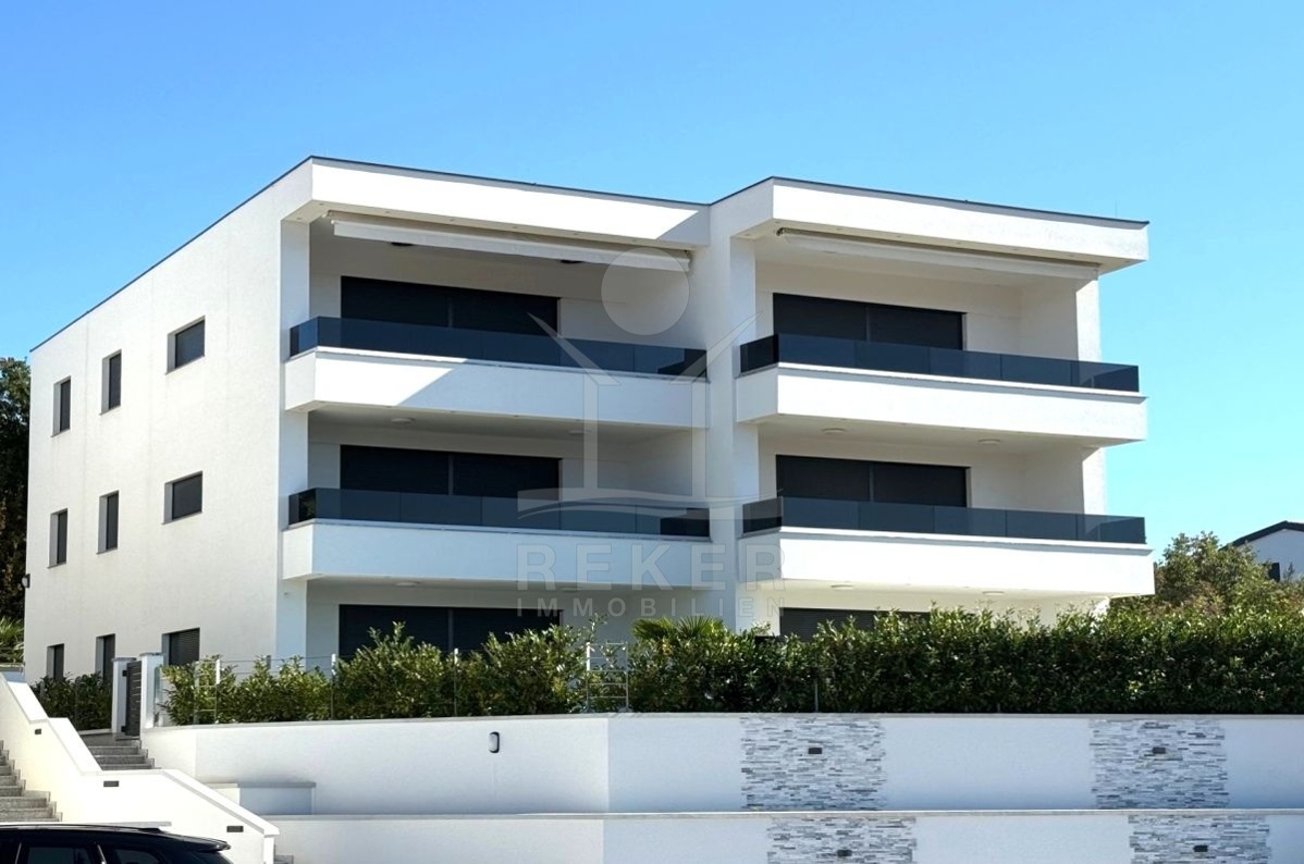 In Malinska, auf der beliebten Insel Krk, wartet eine moderne Wohnung auf Sie, im zweiten Stock eines gepflegten Vier-Parteien-Hauses. Bis zum Meer oder ins Ortszentrum sind es nur rund 650 Meter. Alles in Gehweite. Und trotzdem ruhig gelegen, mit Meerblick.