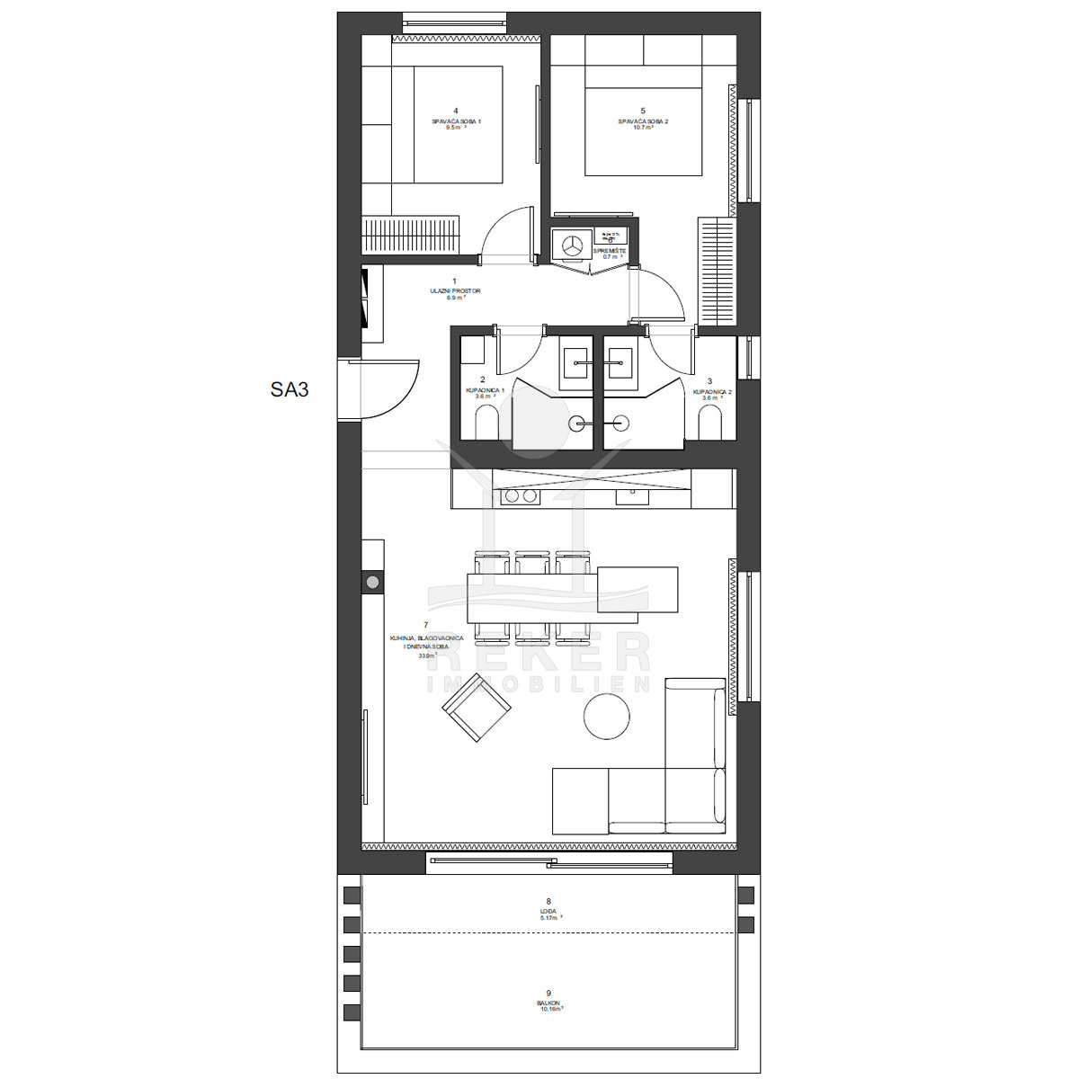In Zaton, einem charmanten Ortsteil bei Nin, entsteht ein hochwertiges Neubauprojekt, nur rund 100 Meter vom Meer entfernt. Die Anlage fügt sich harmonisch in das mediterrane Umfeld ein und eröffnet dank ihrer erhöhten Position einen weiten Blick auf die vorgelagerten Inseln und die Bucht von Zadar. Die Nähe zur Küste und die ruhige Nachbarschaft verleihen dem Ort eine Atmosphäre von Beständigkeit und Exklusivität.