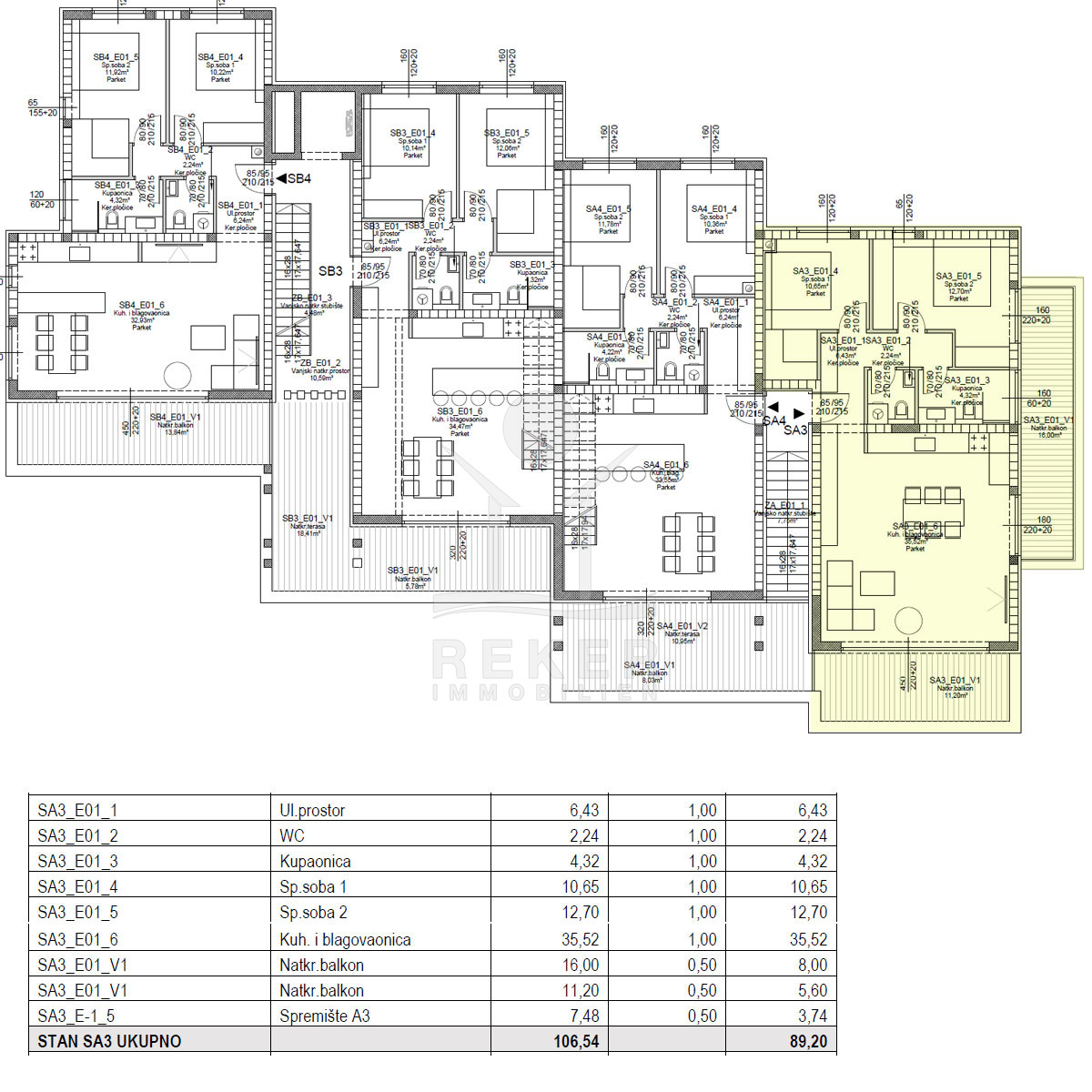 Die großzügige Wohnung bietet eine beeindruckende Raumaufteilung von 90 m² und verbindet Funktionalität mit stylischem Design. Der Eingangsbereich führt Sie in das offene Ess- und Küchenzimmer, das ideal für gesellige Abende und Kochen mit Freunden ist. Zwei Schlafzimmer bieten ausreichend Platz für Ruhe und Erholung. Das moderne Badezimmer rundet das Angebot ab und sorgt dafür, dass alle Bedürfnisse erfüllt werden. Die insgesamt 27 m² überdachten Balkone laden ein, die frische Luft zu genießen und entspannte Momente im Freien zu verbringen. Ein zusätzlicher, praktischer Abstellraum im Keller bietet weiteren Stauraum.