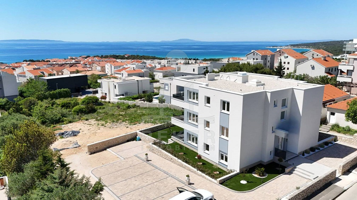 Novalja liegt auf der Insel Pag – an der Westküste, mit Blick auf die offenen Buchten der Adria. Die Stadt ist bekannt, gut erreichbar und bietet das ganze Jahr über eine gewachsene Infrastruktur. Der Standort: ruhig, überwiegend von modernen Wohnhäusern und Ferienimmobilien geprägt. Der Strand ist fußläufig erreichbar, keine 10 Minuten entfernt. Auch der nächste Supermarkt ist bequem in wenigen Minuten erreichbar.